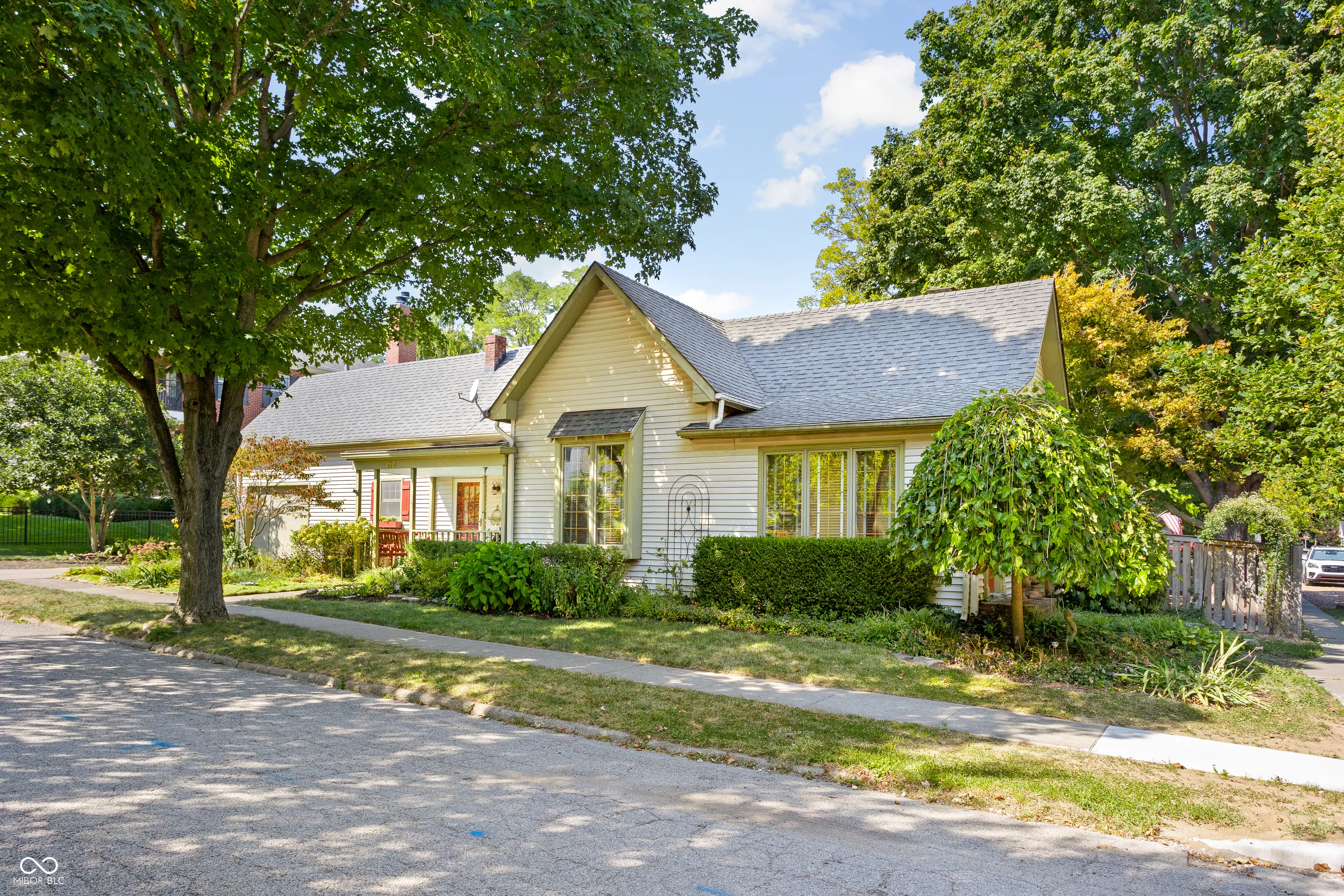 If you’ve ever dreamed of living in the picturesque village and walking to Main Street, this is your opportunity! Nestled in the heart of the Village, this charming home is just a short stroll from local shops, restaurants, the library, parks, and the scenic Rail Trail. Step inside to find warm, sunlit rooms with original hardwood floors, vintage details, and cozy spaces that radiate charm and character. The original portion of the house, dating back to 1880, showcases a spacious family room anchored by a functional brick fireplace surrounded by built-ins and stunning woodwork. This rare gem features all main-floor living with three bedrooms, including a hard-to-find primary suite with a walk-in closet and private ensuite. Another full bathroom provides privacy and convenience for guests. The updated kitchen has been thoughtfully expanded, providing an inviting gathering space for family and friends. Just off the kitchen, a charming screened porch offers the perfect spot to unwind and enjoy the outdoors. Outside, the magic continues with a secret garden oasis, beautifully landscaped and complete with a private patio and a fully fenced yard. Lovingly maintained and brimming with character, this home offers the perfect blend of historic charm and modern convenience.