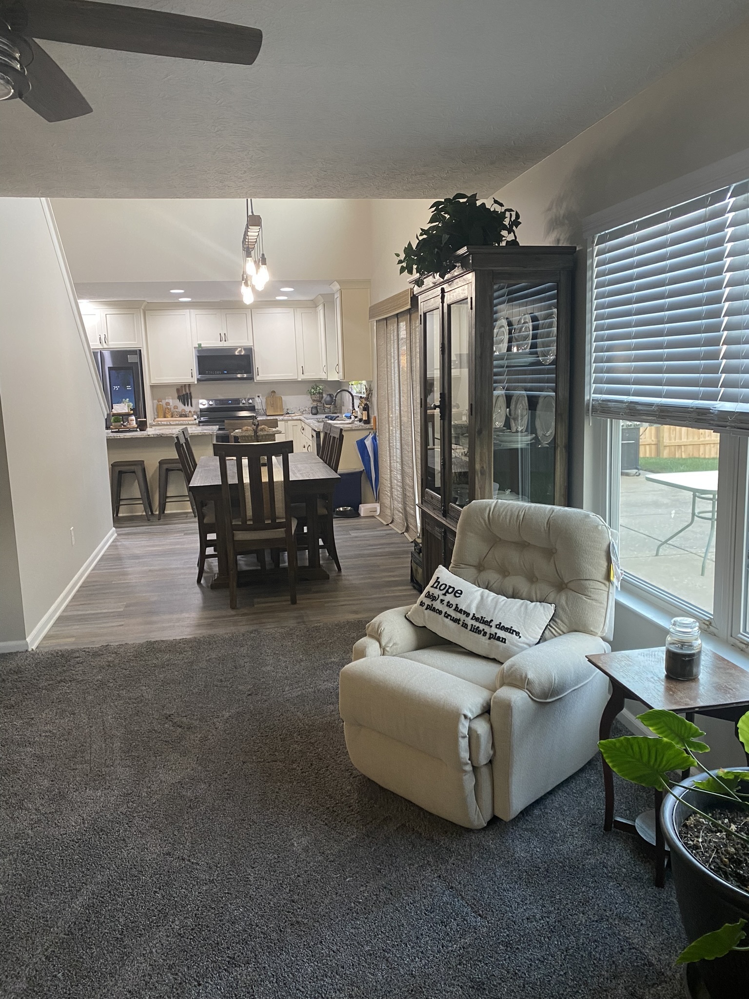 Gorgeous!!! You must see this beautifully updated home!! Including some smart appliances in kitchen refrigerator, & freezer, cooktop w built in air fryer. Check out the granite countertops, oversized island, soft close cabinets and drawers, microwave W/built in convection, newer lighting fixtures in the kitchen an, vinyl plank flooring in Kitchen, dining room, living room, laundry, 1/2 bath, master bath & full bath upstairs, carpet in loft, master bedroom and his and hers closets in master bath so much.. Exterior has newer full back yard privacy fence, mature trees, private cul de sac and 3 car gar. Freshly painted interior in most of the home. NOTE: Patio paneled blinds on sliding door are NOT included. MVP title is preparing tile work