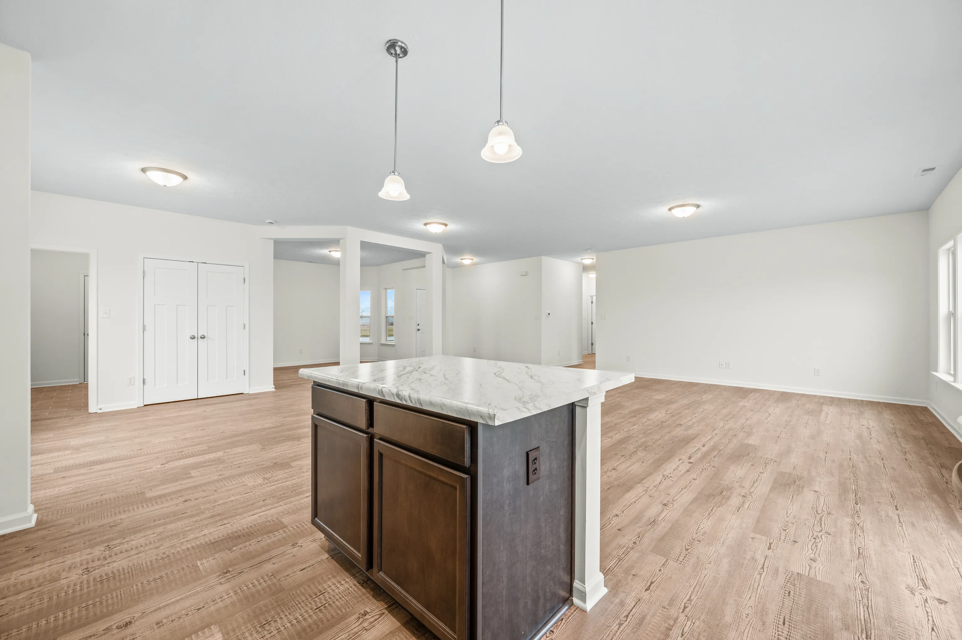 Brand NEW UNDER CONSTRUCTION by Beacon Builders. Beautiful 3 bedroom, 2 bath, open concept ranch home. 9 foot ceilings throughout. Gorgeous LVT flooring in foyer, dining room, family room, kitchen, breakfast room and hall. Kitchen features a large island w/pendant lights, beautiful cabinets with crown molding, stainless steel appliances, gas line for future gas range, and a pantry! Primary suite includes double bowl vanity, separate garden tub/shower, and walk in closet. 2-10 Builder Warranty included!