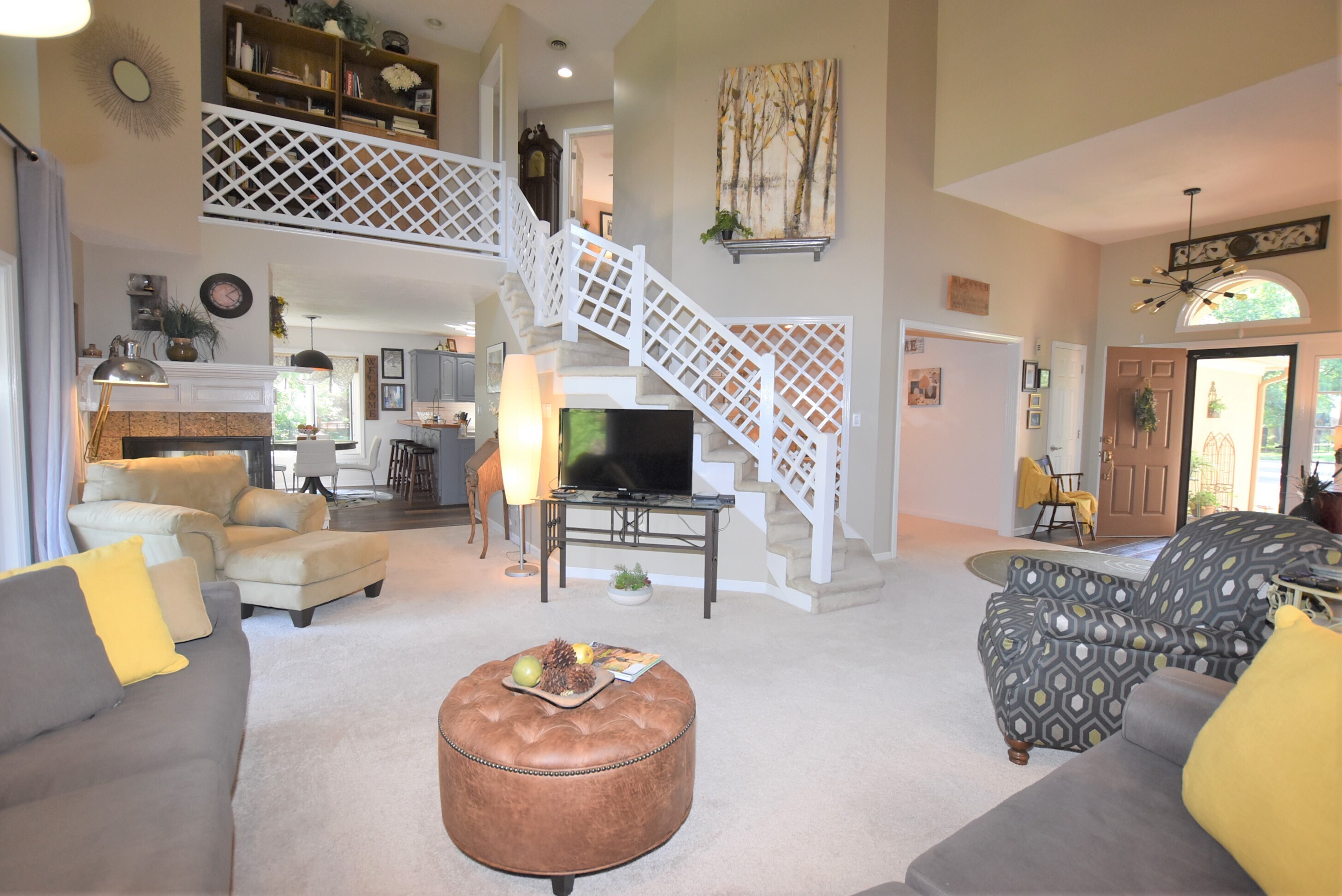 Majestic oasis inside/out you won’t want to leave! Main floor primary BDRM home located on tree-filled cul-de-sac in popular Hickory Woods just a 20 min walk to the Nickle Plate Trail, downtown Fishers amenities & Richey Woods Park. Striking architecture/ceilings, free-flow floor plan, screened porch, large deck, exterior/interior accent lighting. Updated kitchen & breakfast rm w LVP floors, granite counters, maple block bar top, cabinets pro painted, under cab lighting, ss fridge 5yr, dishwasher 2020. Large pantry houses microwave. 75% finished BSMNT! Nicely finished garage w fridge & shelving included. New A/C 2019, Water heater 2023, gutter leaf guards 2020. Newly asphalted nghbrd streets & only $130/yr HOA.