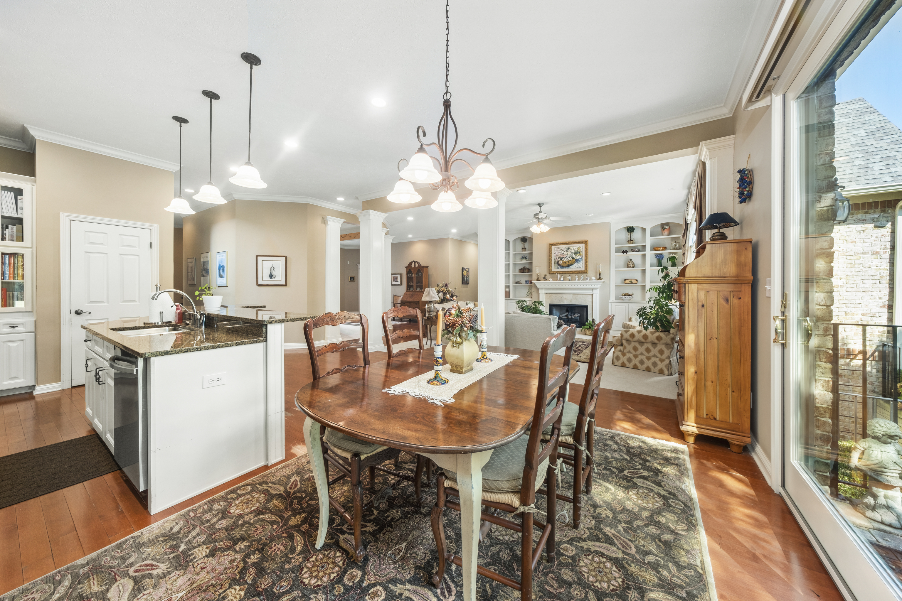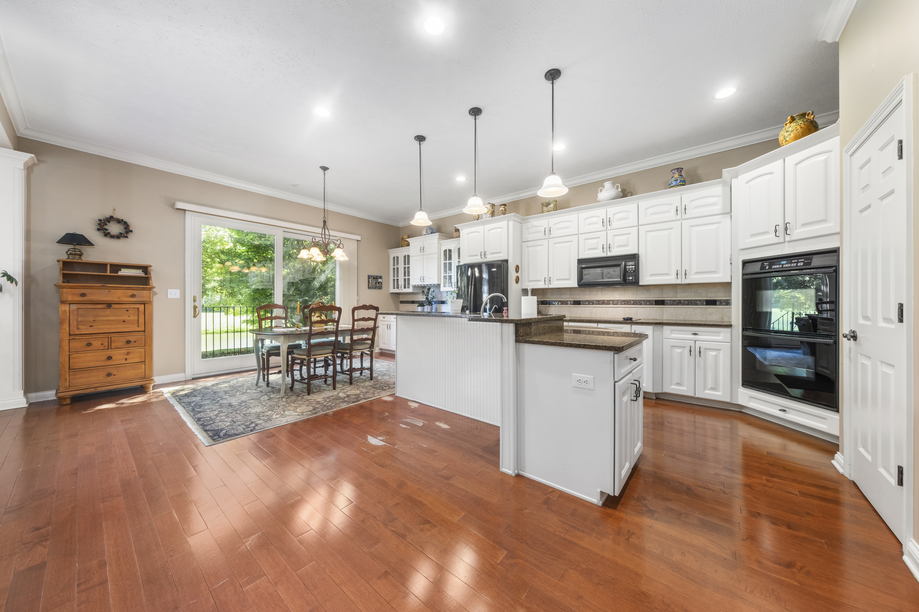 Discover luxury in Hamilton Proper’s Arbor Glen gated community with this immaculate home. Hardwood floors flow throughout the main level. The open great room boasts built-in bookshelves and a cozy fireplace. Granite countertops adorn the chef’s kitchen. A main-floor primary suite offers tranquil pond and golf course views. Two spacious bedrooms and a full bath await upstairs. The fully finished daylight lower level provides versatility with an additional bedroom and full bath. Awesome bar w/a Chicago Rail plus the rec/play and large TV area is perfect for entertaining. HOA handles lawn care, snow removal, mulching, and shrubbery care. Appliances included. Enjoy the serene pond and golf course views from your backyard.