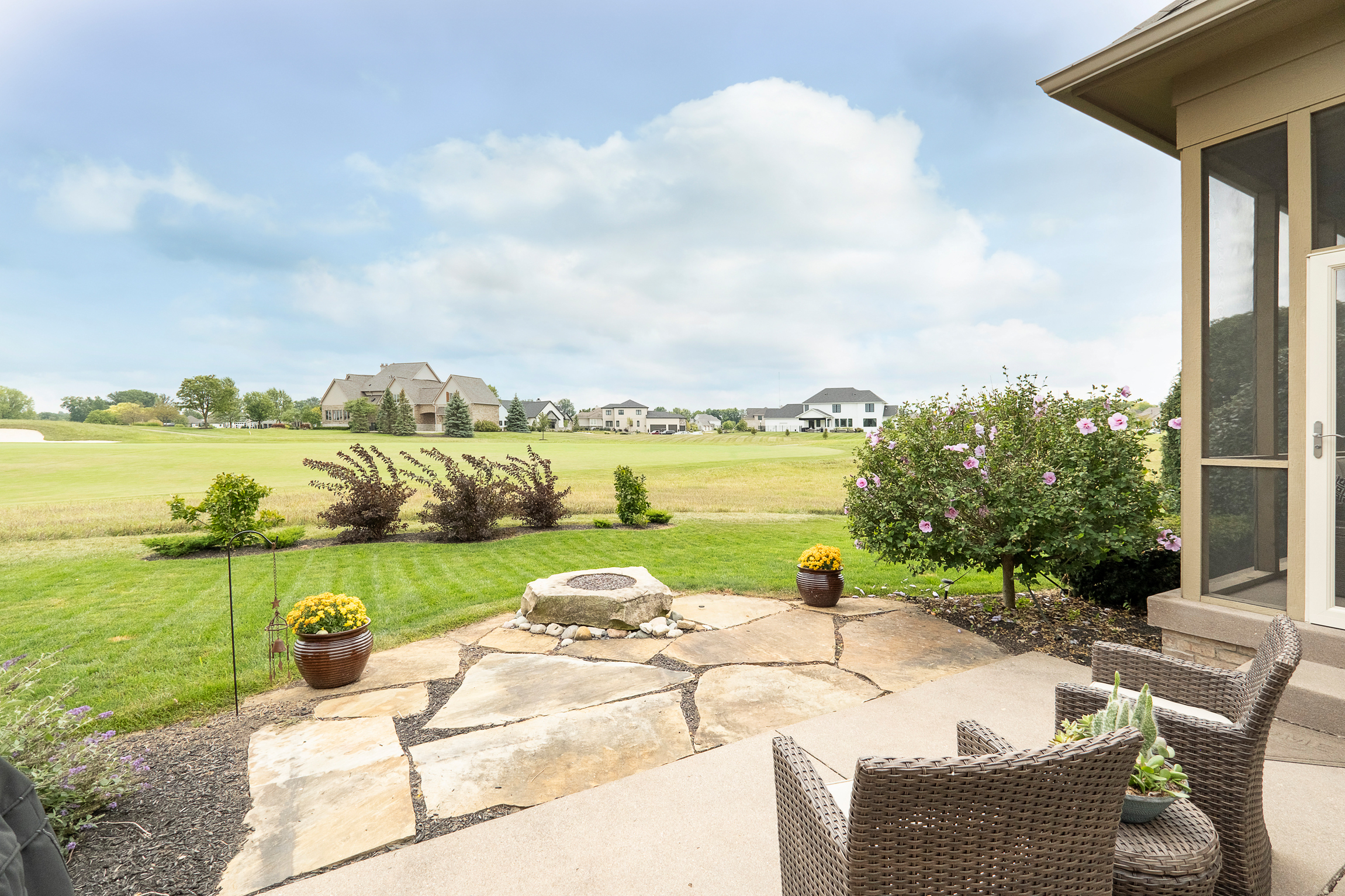 Gorgeous 3-BR/3-BA John McKenzie-built custom ranch home w/ a finished basement & a 3-car garage situated on the 15th fairway of Sagamore, a premiere Jack Nicklaus-designed golf course. Home has an open floorplan. Top features incl: 10 ft ceilings on the main level; a plethora of windows on the back side of home, offering a stunning Eastward view of the golf course; screened porch; hdwood flooring; gas fireplace in the Great Rm; gourmet Kit with gas oven/range, center island, S.S. appliances & granite countertops; spectacular owner’s suite featuring a golf course view, dbl vanities, glass-enclosed shower stall & an oversized walk-in closet; large finished basement w/ 9 ft ceiling, wet bar, bedroom, egress/daylight windows & a full bathroom.