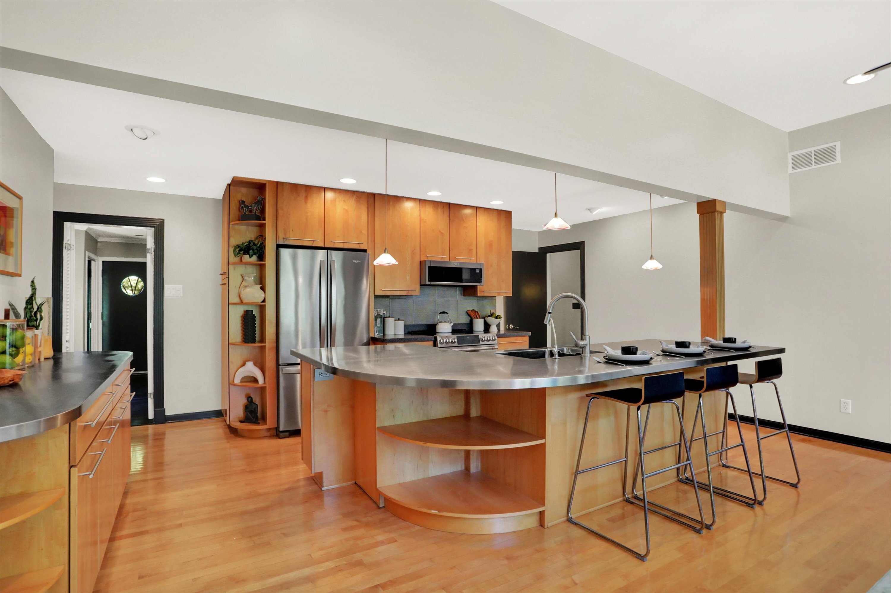 Stunning mid-century mod. home on 1 acre in Washington Twp. Beautifully landscaped front and back yard. Enter into the family room with the modern fireplace as the focal point, and sun filled kitchen/dining room combo, with all glass sliding doors opening to the huge back garden with stone patio leading to the huge back yard. The spacious master bedroom has a vaulted ceiling, plus cork flooring, and large ensuite bathroom. The 2nd bedroom plus office allows for a great work from home space, nursery, etc. The basement has another finished room plus storage, making a great play space, workout room, or additional bedroom. Don’t miss the space above the huge garage, ready to finish to add even more room and equity to this amazing home.
