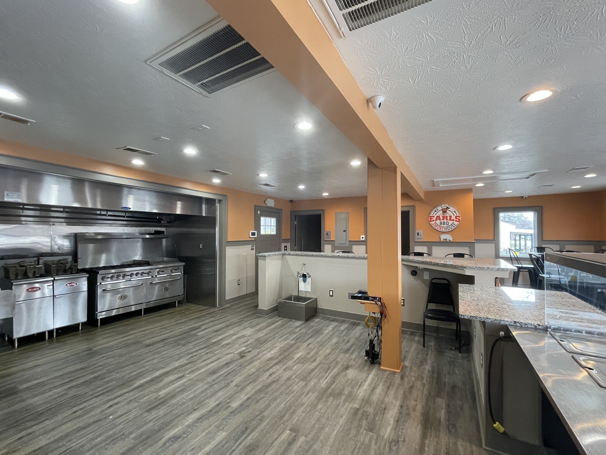 Turn-Key Restaurant with many updates throughout including Paint, Flooring, Lighting, and Restaurant Equipment. Hood, Grill, Coolers, Fryers, Sinks, Dessert Case, and Buffet Servers other equipment. Additional fenced in area for Rear Patio Dining. Basement area great for storage. 2 Private Restrooms.