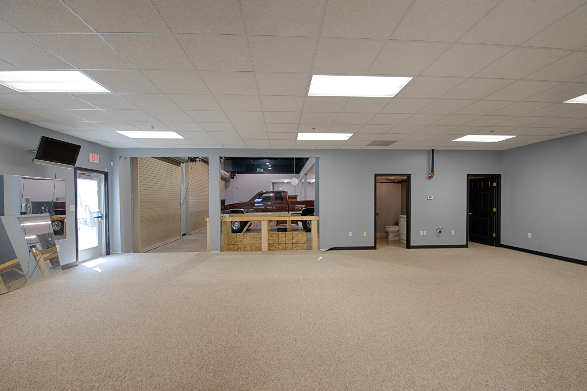 Commercially zoned B building with 3 garage bays, a total of 3 half bathrooms and an upper loft area . Blank slate for your next commercial need!