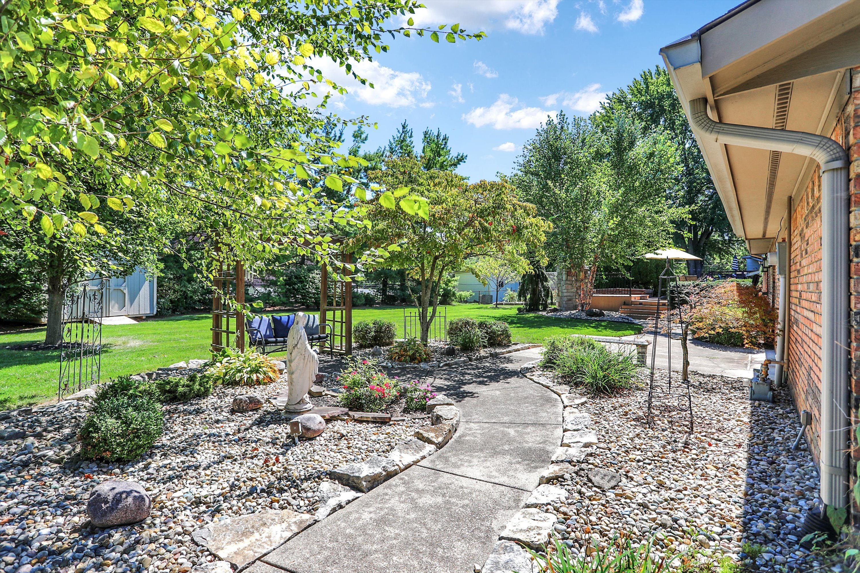 WOW! This gorgeous fully renovated home features 4 bedrooms and 3 full baths with so much space! Relax in the living room looking out the large bay window or in the family room by the cozy fireplace. The eat in kitchen includes custom cabinets, granite counter tops, a center island, and bench seating. The Andersen windows throughout make it light and airy. The private backyard boasts a Trex deck with hot tub, outdoor fireplace. large concrete patio, and storage barn all surrounded by mature trees and beautiful landscaping. The driveway has been widened for 3 cars width and has a basketball goal. New roof/gutters in 2018 & water softener/water heater in 2022. Located in West Hill Valley close to schools, shopping, & restaurants.