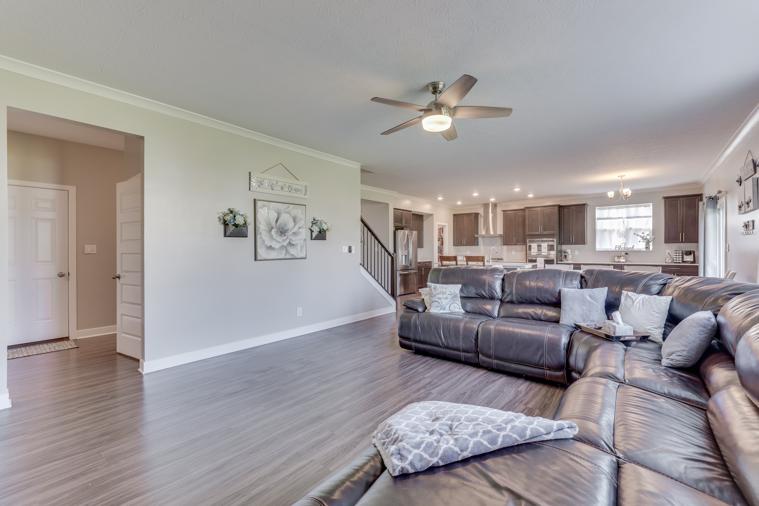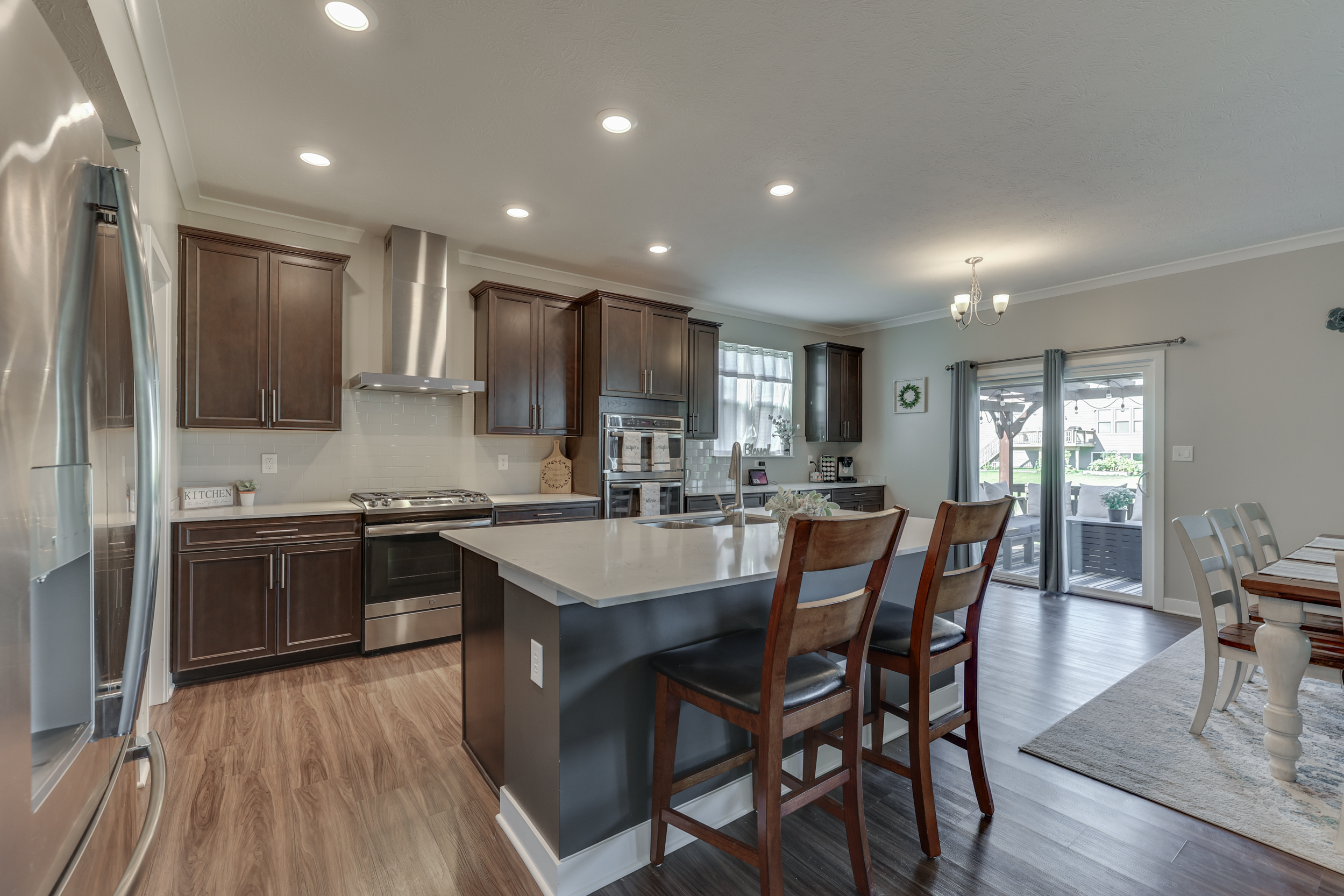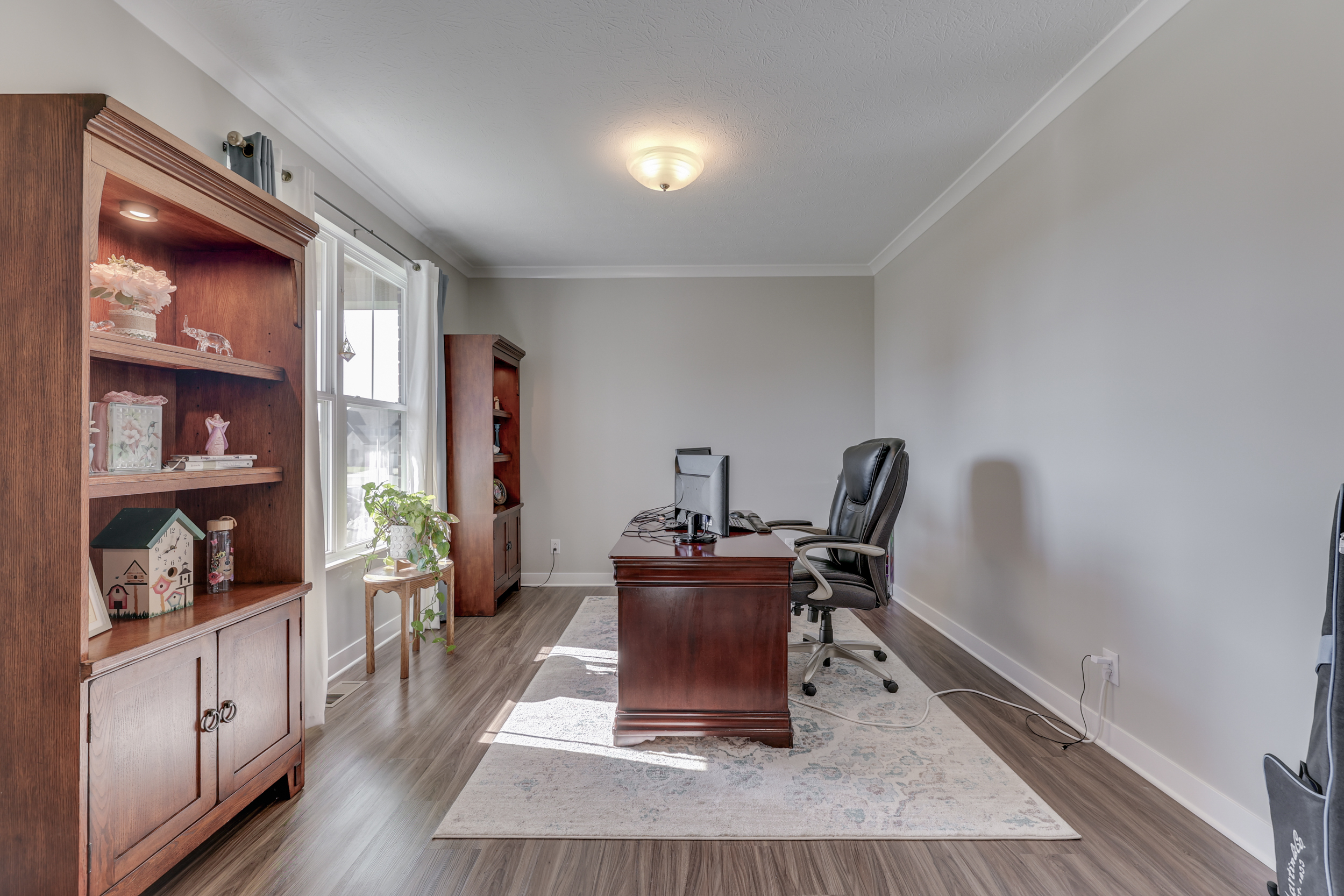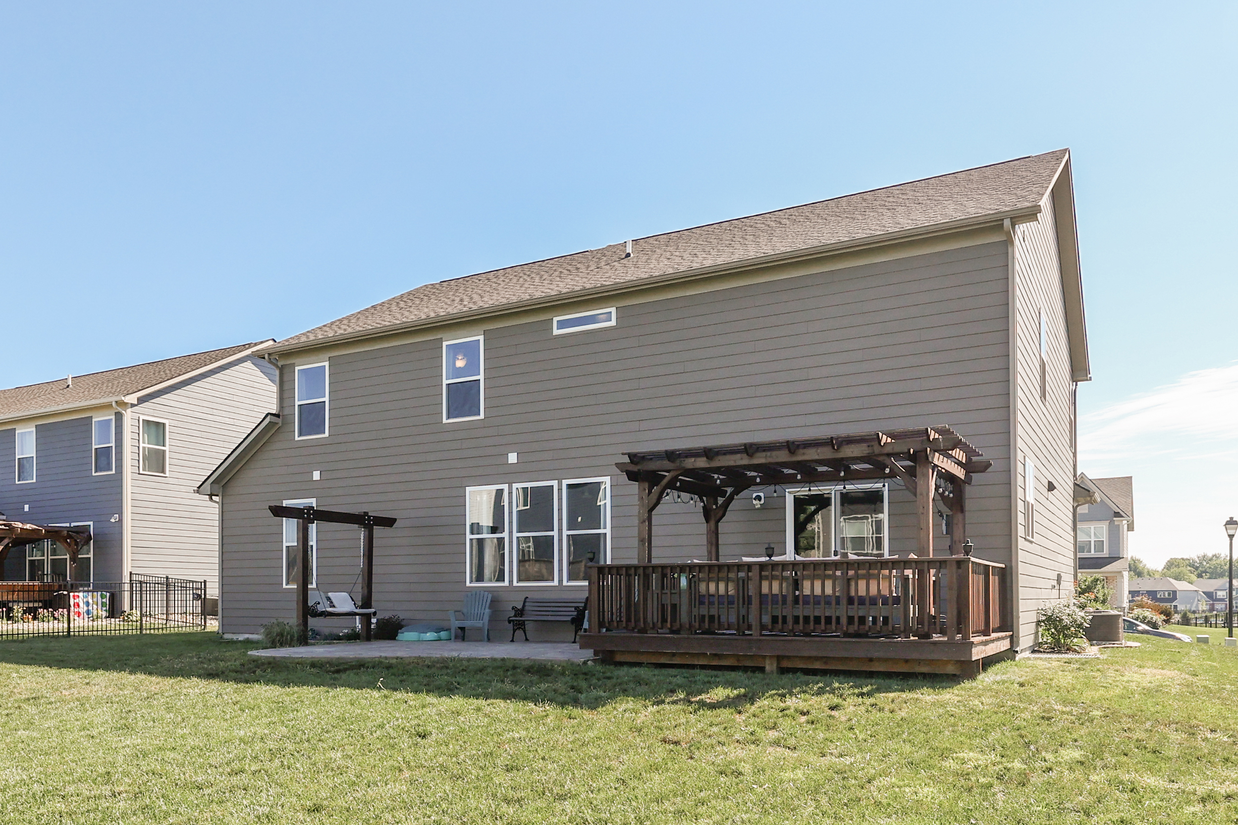 Move In Ready ~MORNINGSIDE~ Fresh Paint- Like-New Smart-Home Brick 2-Story- 5 BED/2.5 BATH w/BASEMENT & Large Loft*4515 sqft* MAIN: LVP Floors; Perfect HOME OFFICE; Open GREAT RM; Upgrade/Extended Gourmet Eat-In KITCHEN: Breakfast Area+Walk-In Pantry+Oversized Center Island, Brkfst Bar+Tile Backsplash+Quartz Counters; Main-Level GUEST ROOM; UP: LOFT: 13×13; MASTER: Suite, Dbl Sinks w/Elevated Vanity, Giant Tile Walk-In Shower; Big Walk-In Clos; Addt’l 3 BEDS: WalkIn Closets; LAUNDRY; Dbl Sinks-2nd Bath; BSMT: Ready to Finish- Bonus Rm + Exercise Rm & Storage Rm + Plumbed for Full Bath; Backyard w/Custom Stamp-Concrete Patio + Wood Deck & Pergola! 3-Car Finished Garage; Near KEPHART PARK; Steps from Morningside Pool & Downtown Bargersville