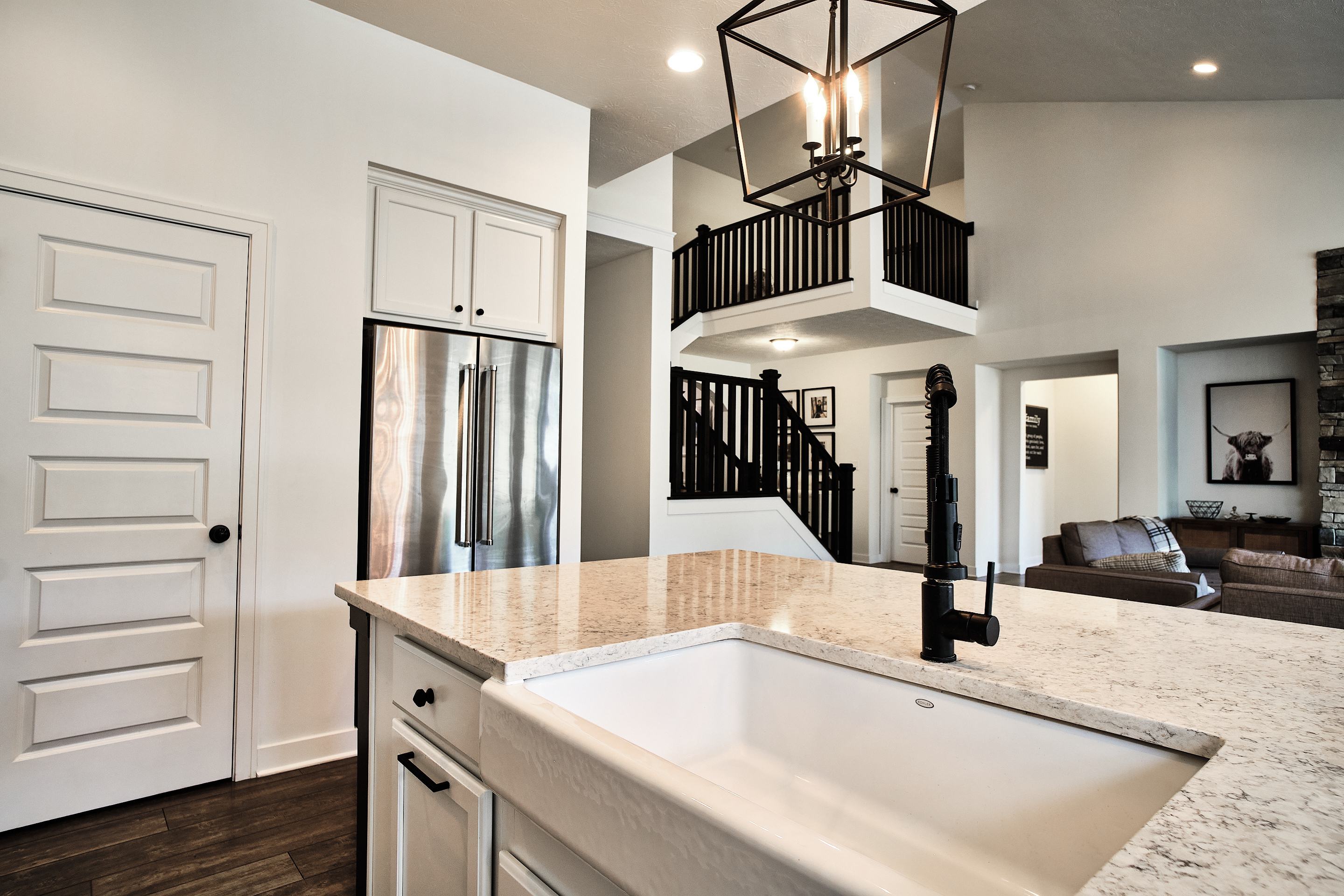 Stunning ranch with full basement AND loft in Noblesville that is sure to impress! Home features beautiful details-Entry with custom molding, Gourmet kitchen w/ SS appliances, quartz countertops, & huge center island, stone fireplace, and laminate flooring throughout. Three beds & two full baths on main PLUS addtl bedroom, loft, and full bath upstairs! Laundry room w/built ins. Partially finished basement has wet bar & family room and offers endless possibilities and so much storage! Enjoy the view from the covered back patio on one of the best lots in neighorhood backing up to the Sagamore golf course! Home also has finished 3 car garage & handicap accessible doors. Close to interstate/shopping/dining. Low maint lawn care option available.