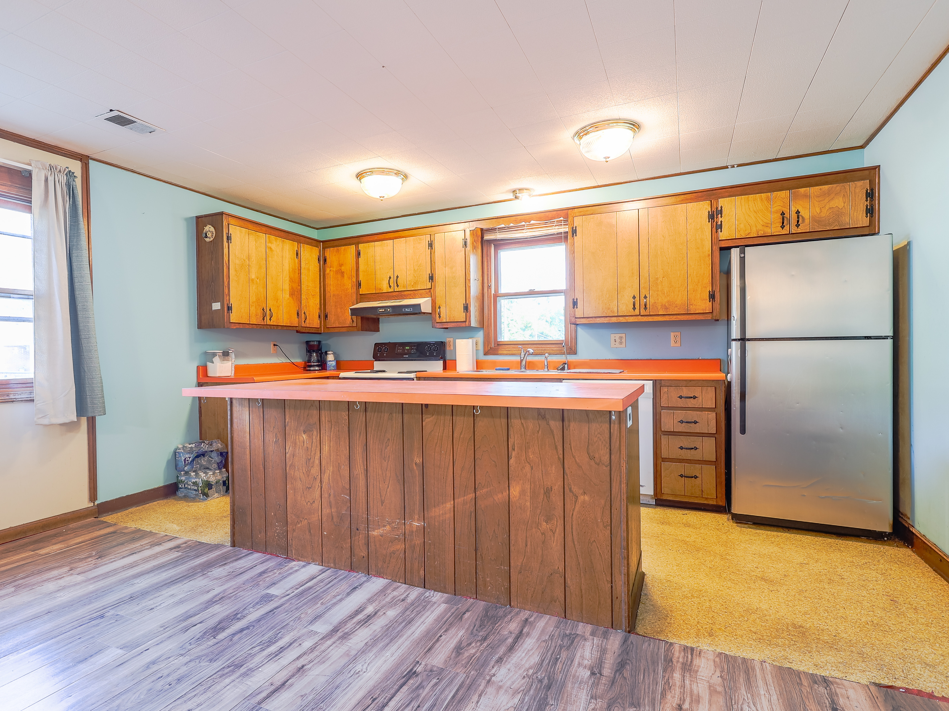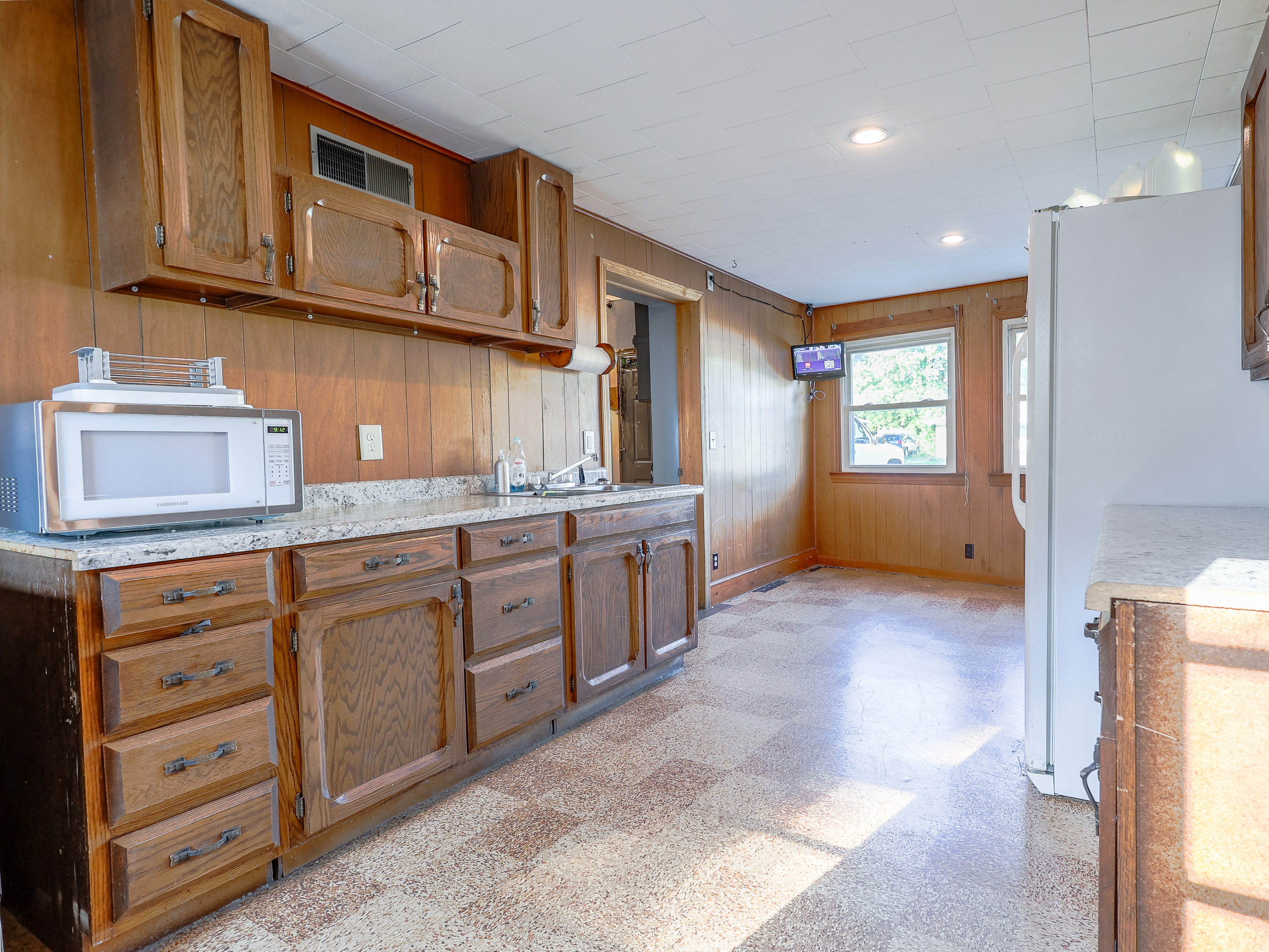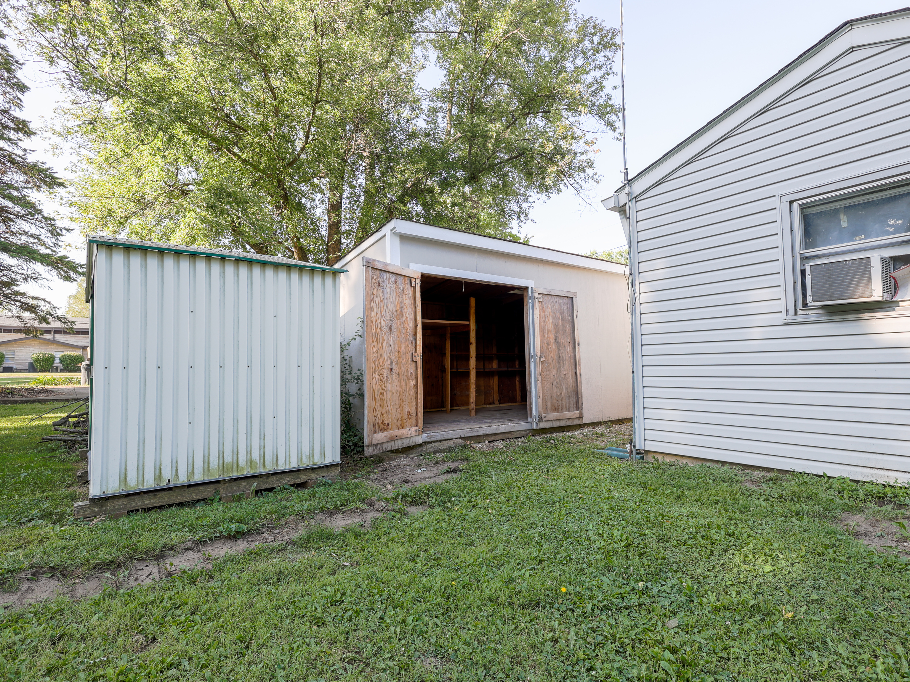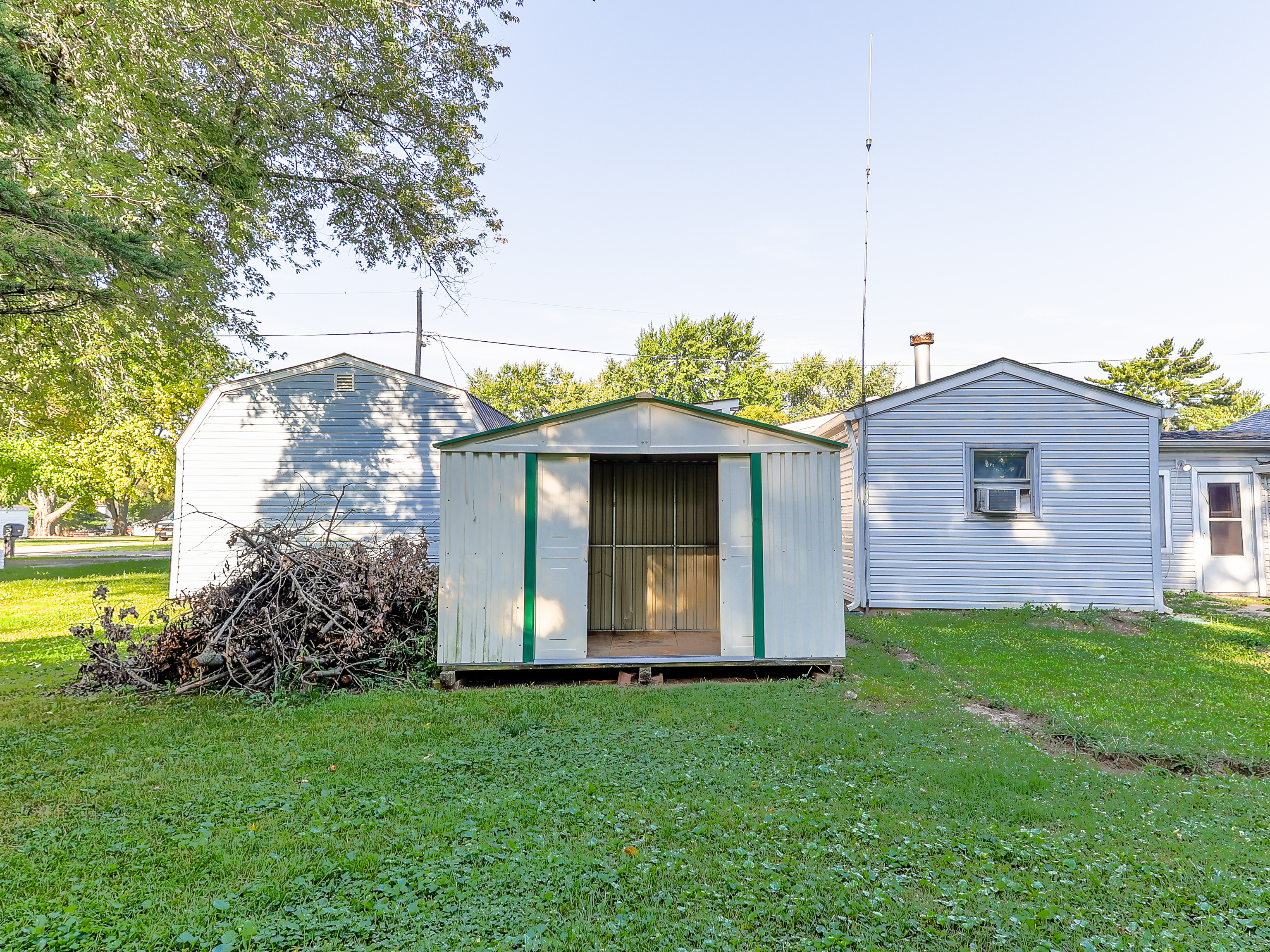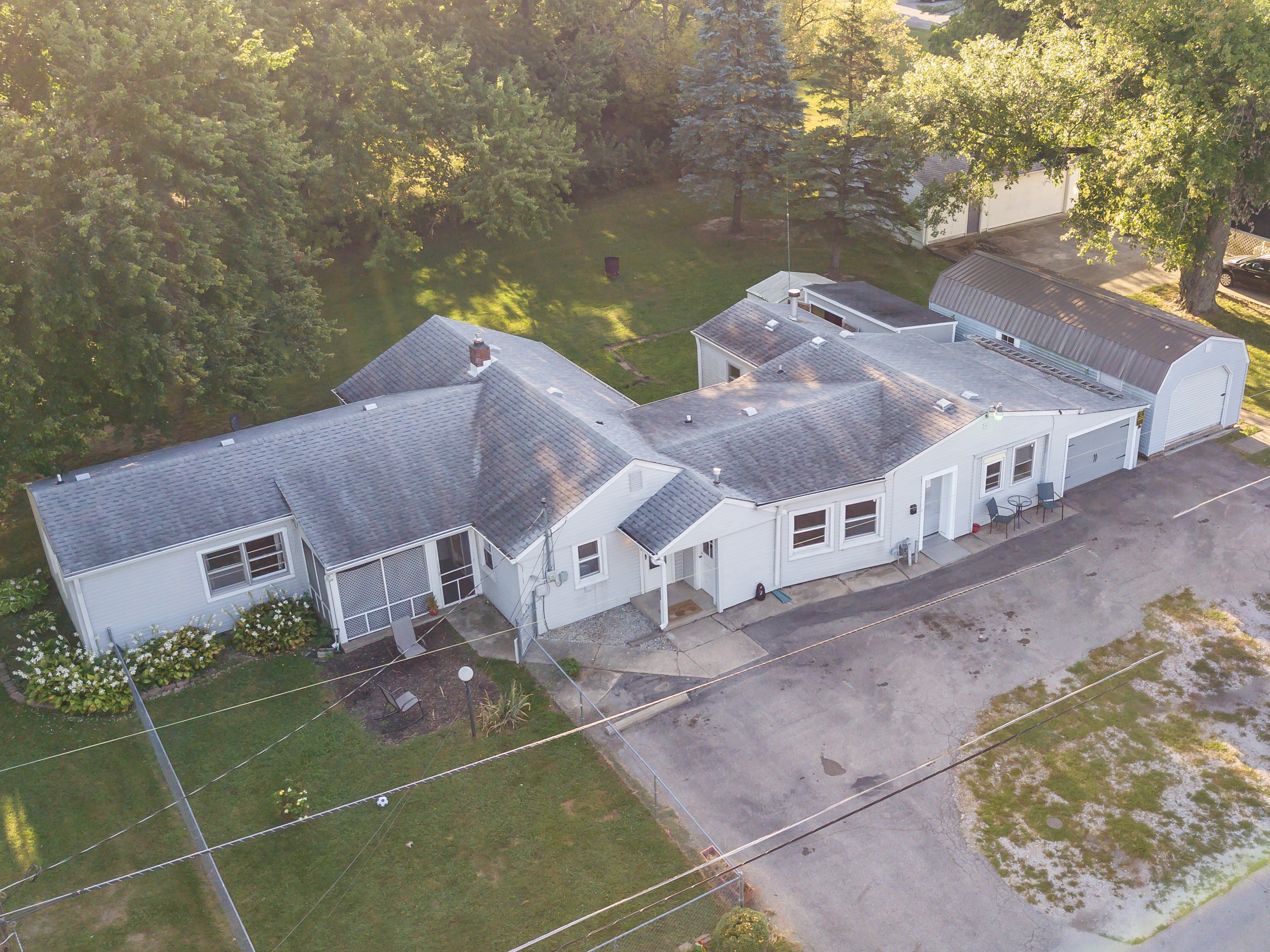 This 2-bed / 1-bath ranch home is an investor’s dream. The home is a corner lot sitting on just over a half-acre. The kitchen has lots of cabinets with a center island. Large living room. A full-size bath with a stand-up shower. The front yard is partially fenced in. Multiple large sheds provide lots of storage space. The laundry room inside the house. Central air. Two furnaces. The asphalt drive is large enough to fit 5 cars. The garage was converted into a living quarter with a full-size bathroom with a stand-up shower. It was set up with living area and bedroom and has its own kitchen area. It also has its own entrance. This home sits in a quaint neighborhood and would make a great home.