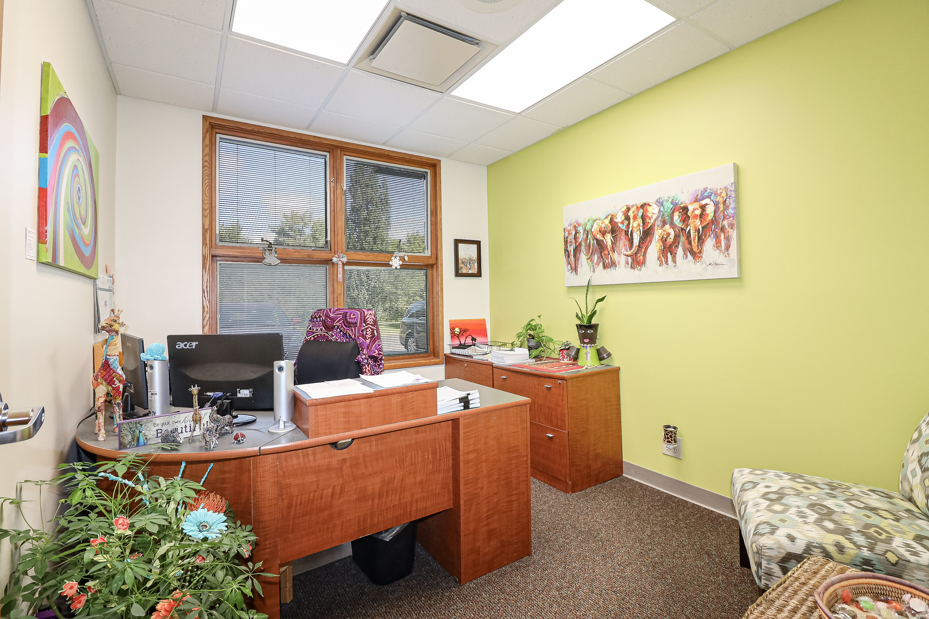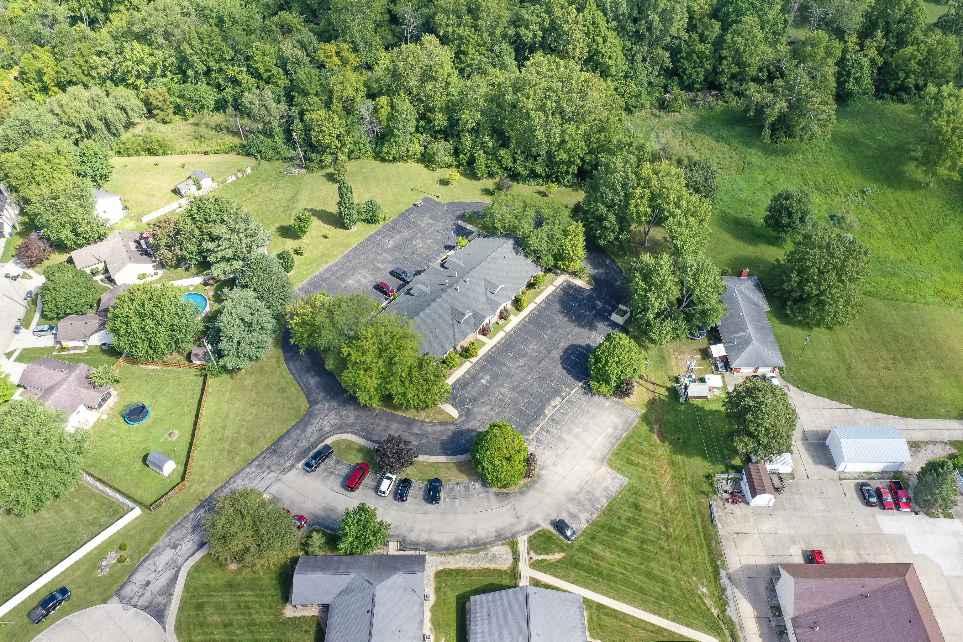 Check out this flexible office building that is in excellent condition. 7,002 sf with 14 private offices, 3 large open work spaces, kitchens/breakrooms, 4 Restrooms and a 5th with a shower. Could be returned to its 4-plex original use (with 4 separate entrances), a 2-unit office use, or continue as a single tenant office space. Vaulted ceilings at the entrance & large conference room with a view. Two high efficiency HVAC units (north end/south end), new in 2019. Each quadrant controlled independently. Entire building is wired with CAT-6 ethernet cable, flows to IT closet. Comcast wired to IT closet also. 4 HD day/night security cameras with recording and remote app. Roof new in 2016. Survey, 4.044 Acres, w/ woods & creek.