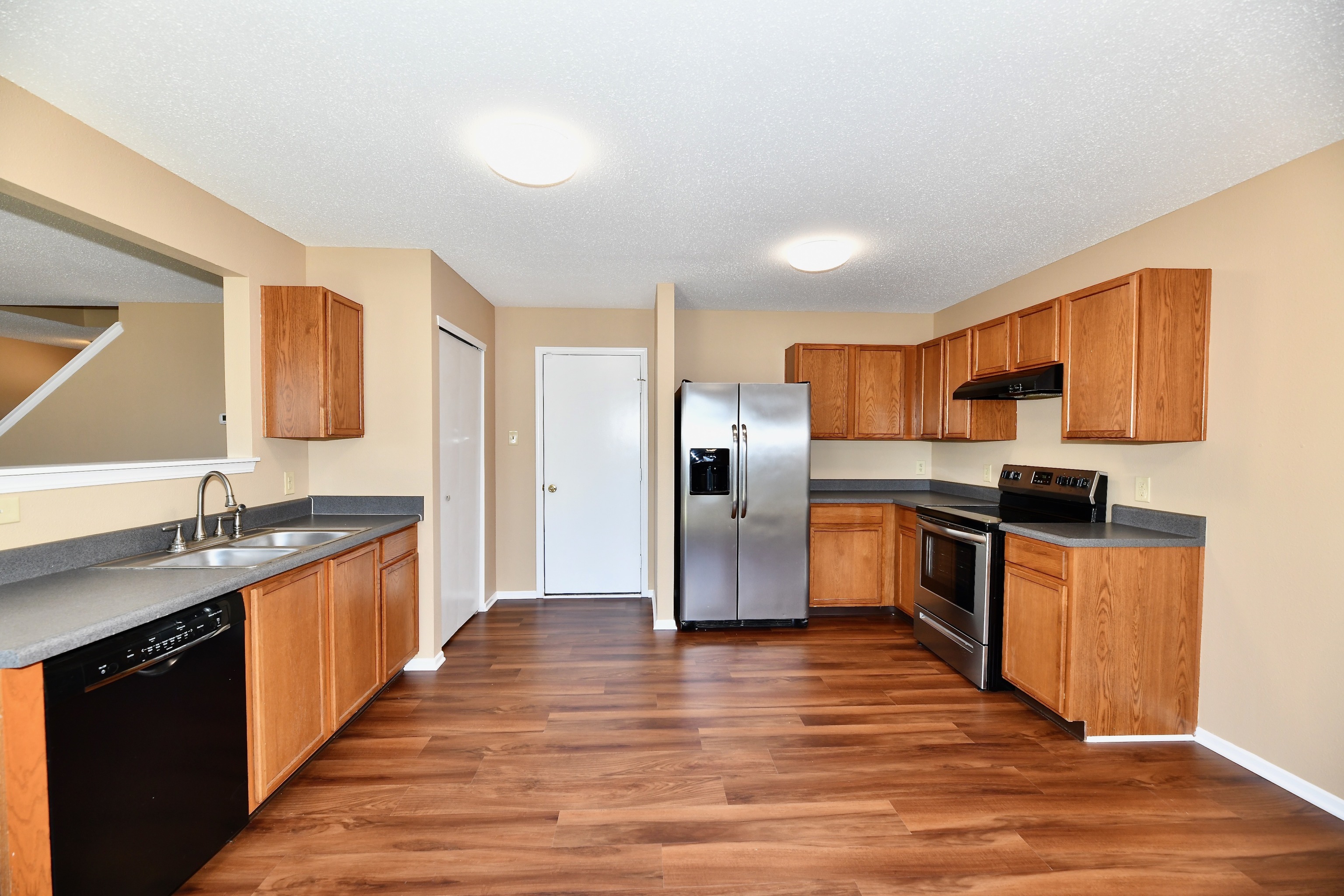 Newly updated 3 bedroom 2 1//2 bath home. New carpet upstairs and plank downstairs. Fresh paint throughout. Large primary bedroom with garden tub and walk in closet. Covered front porch and deck off the kitchen. Fully fenced in backyard.