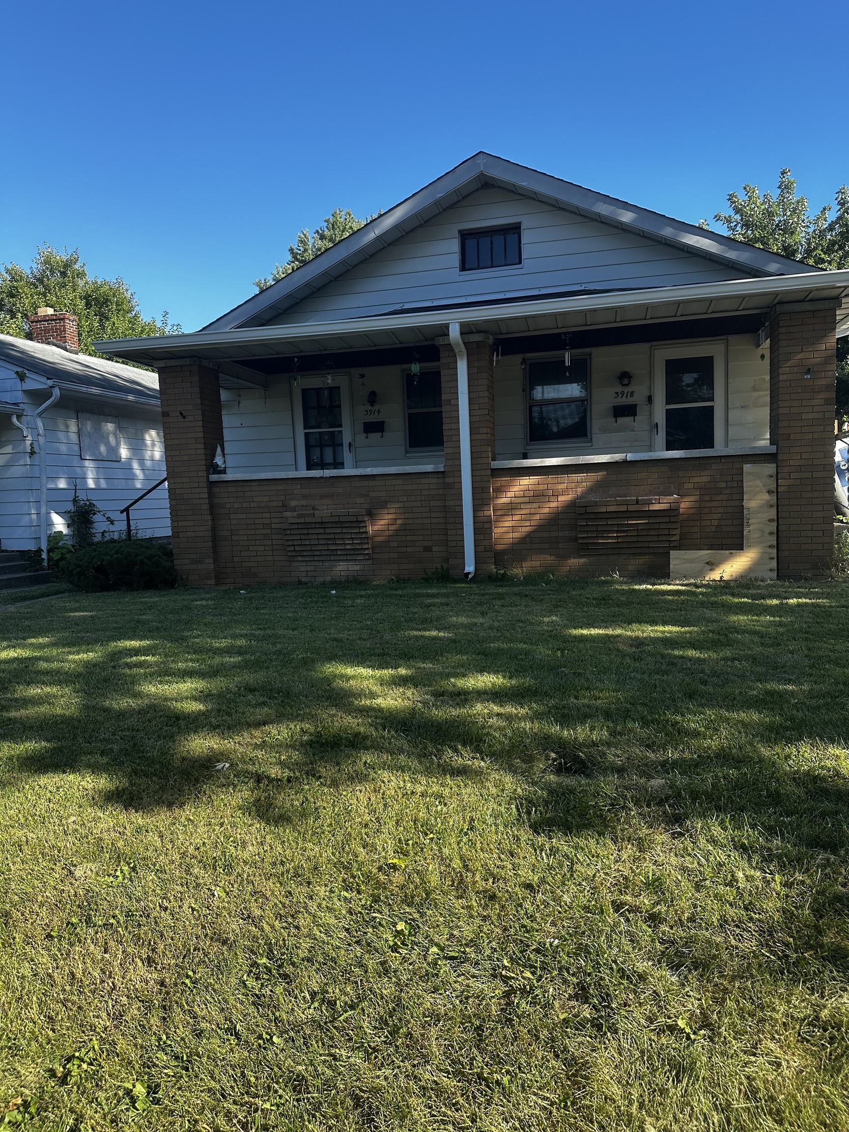 Great income property! New updated bath August 2023 on 3918 side. Newer gutters and interior paint. 1.5 car garage, brick front porch.