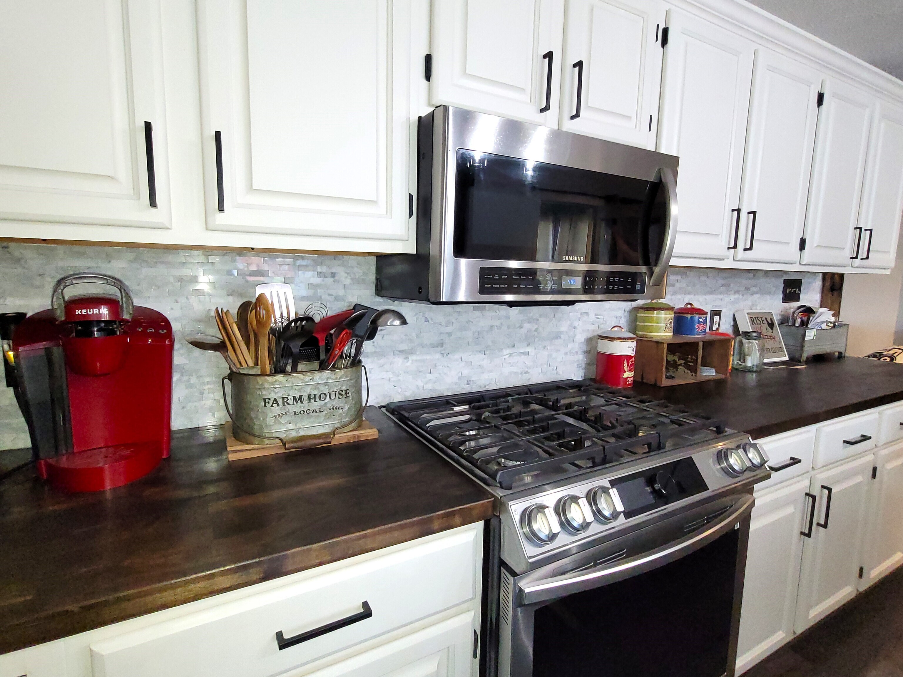 3 BD 2 BA home w/.30 AC lot! Home w/upgrades including light fixtures, all flooring, baths & appliances. Living rm has vaulted ceiling w/gas log fireplace flanked in shiplap. Beamed doorways & hall ceiling set off the farmhouse vibe! The kitchen has a dining area plus breakfast nook, fridge w/TV in door & new quartz countertops/sink/faucet just installed. Enjoy your favorite beverage in the sun rm or hang out on the deck under the gazebo. There are 2 bd rms & 1 bath on the main level. Upper primary bd rm & ensuite bath, plus tons of storage & closet space. Bonus rm upstairs is now being used as a guest bd rm but could be office/craft/toy rm. Why wait to build? Newer roof, gutters, Anderson windows, Home warranty included! Close to schools.