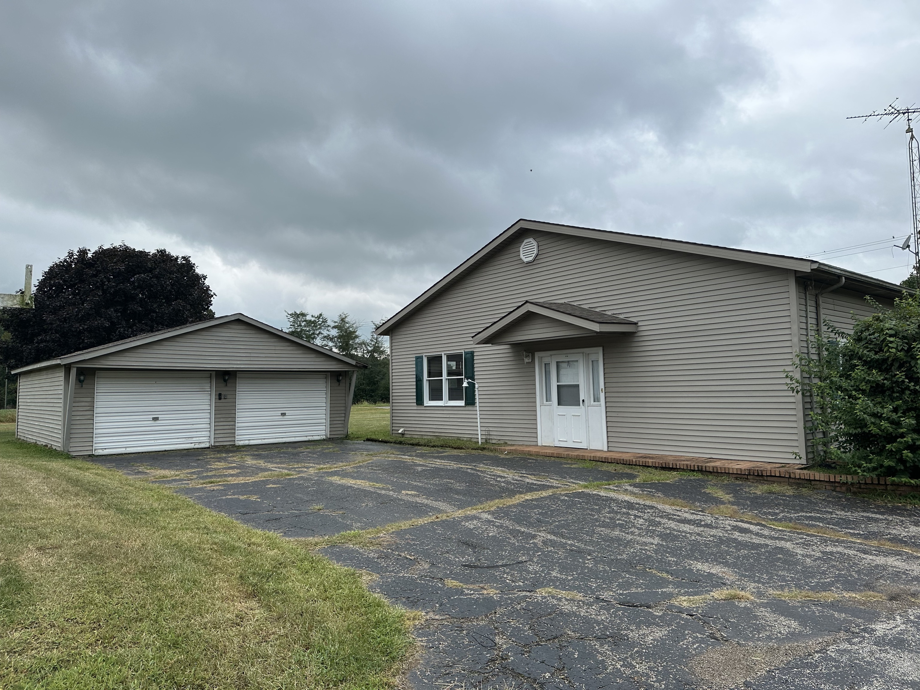 This spacious 2 bedroom 1 bath home sits on 7+/- acres! This home offers an ear in kitchen, large living room, family room, office and partial basement. Outside you will find a 2 car detached garage, a large pole barn and 2 storage sheds.