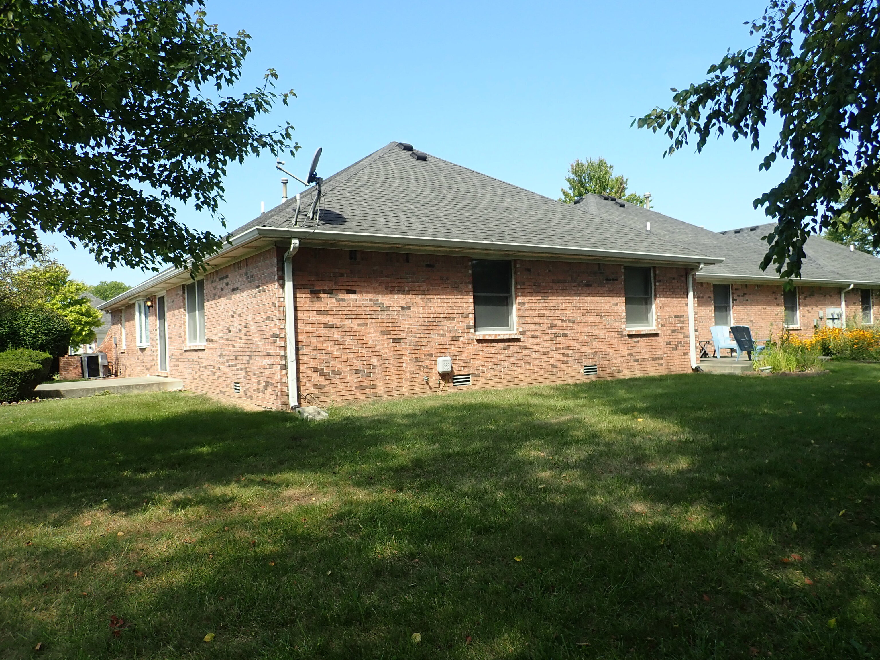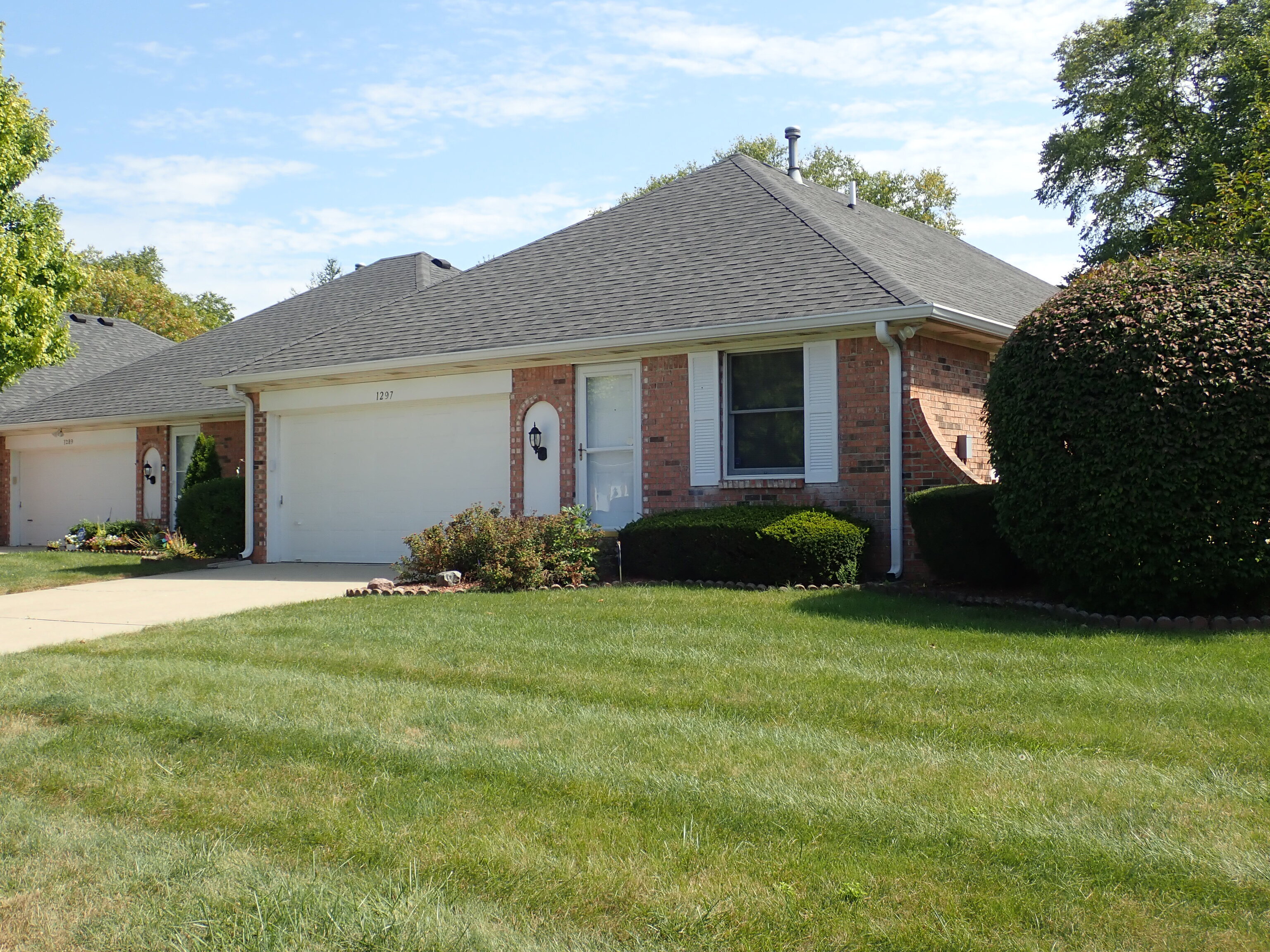 3 Bedroom/2 Bath all brick ranch style condo that is an end unit. Living Room/Dining Area combo. Large Kitchen with Breakfast Area and atrium door that opens onto 10′ X 12′ Patio. Large Master Bedroom suite with walk in closet and Master Bath with step in shower and linen closet. Bedrooms #2 and #3 also have walk in closets. Laundry Room with washer and dryer included, and a double pantry closet. Lots of storage in this home. Attached two car Garage is finished and has a garage door opener with remote key pad, a gas furnace with central air conditioning, a gas water heater, and a pull down attic stairway for attic storage. Home has a security alarm system.
