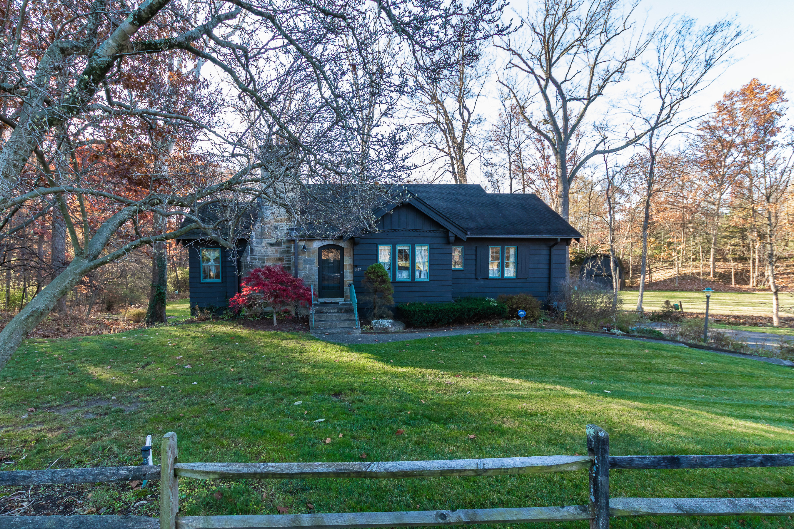 Here is the handsome craftsman cottage with extensive perennial garden you have noticed. Situated on a lovely wooded 1.6 acre landscaped lot with meadow and creek. Featured in Indianapolis Monthly “Fifty most beautiful homes”. Home overlooks Highland CC golf course. Built 1935. Said to be copied from Wee Bobby Burns cottage in Scotland. 1.6 acre lot has mature trees, spring fed koi pond and storage barn.