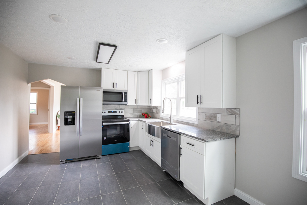 Discover this delightful 3-bed, 2-bath home in North Vernon! With 1,276 square feet to claim as your own, this residence offers the perfect balance of comfort and modern amenities. The kitchen showcases a farmhouse sink, dove tail soft close drawers and cabinets, granite countertops and all new stainless steel appliances. Treat yourself to a spa-like experience in the bathrooms with tile showers. The engineered hardwood and tile floors add a touch of sophistication. Updates include new windows, doors, roof, interior paint, and light fixtures Take advantage of this amazing opportunity!