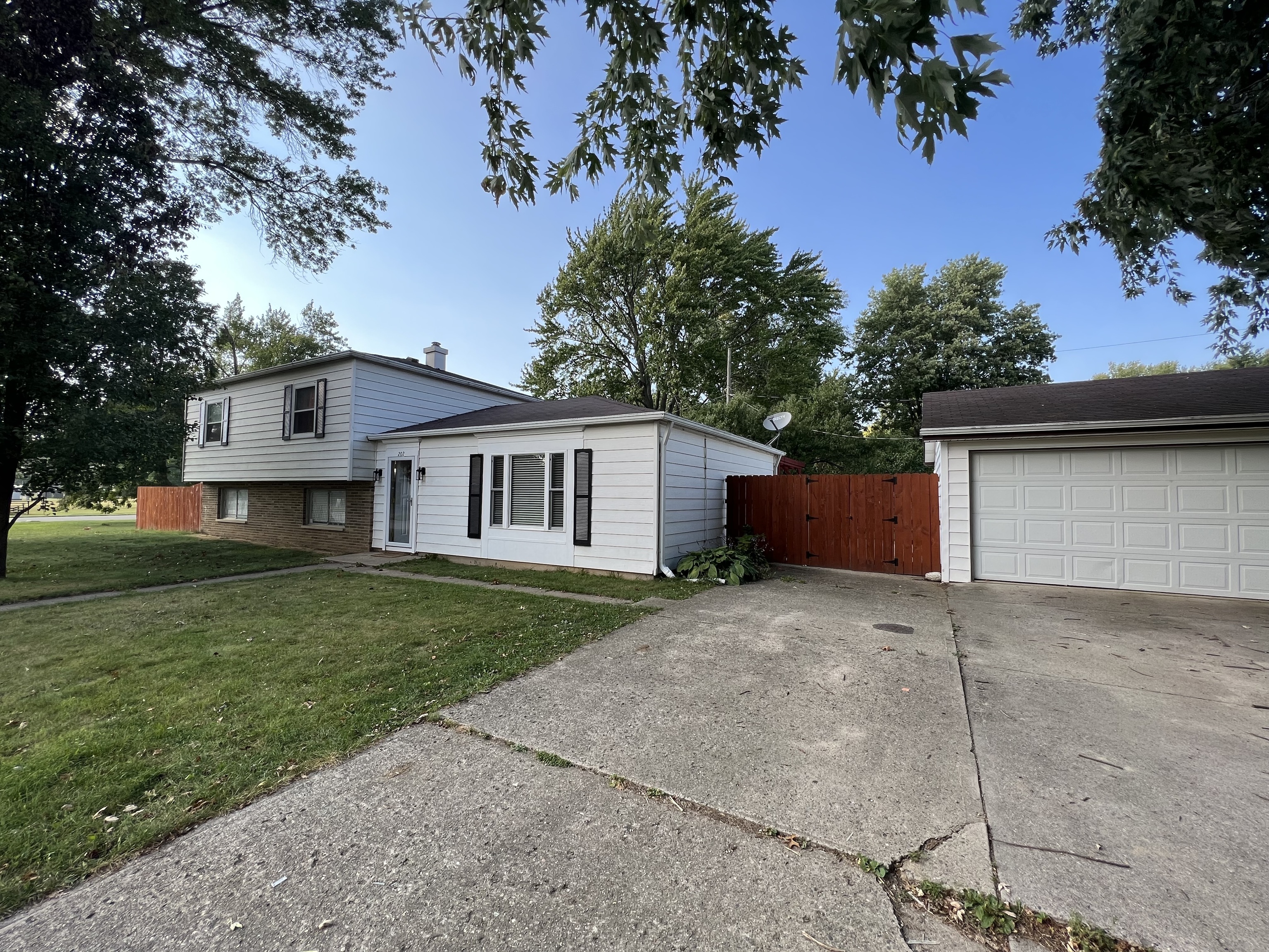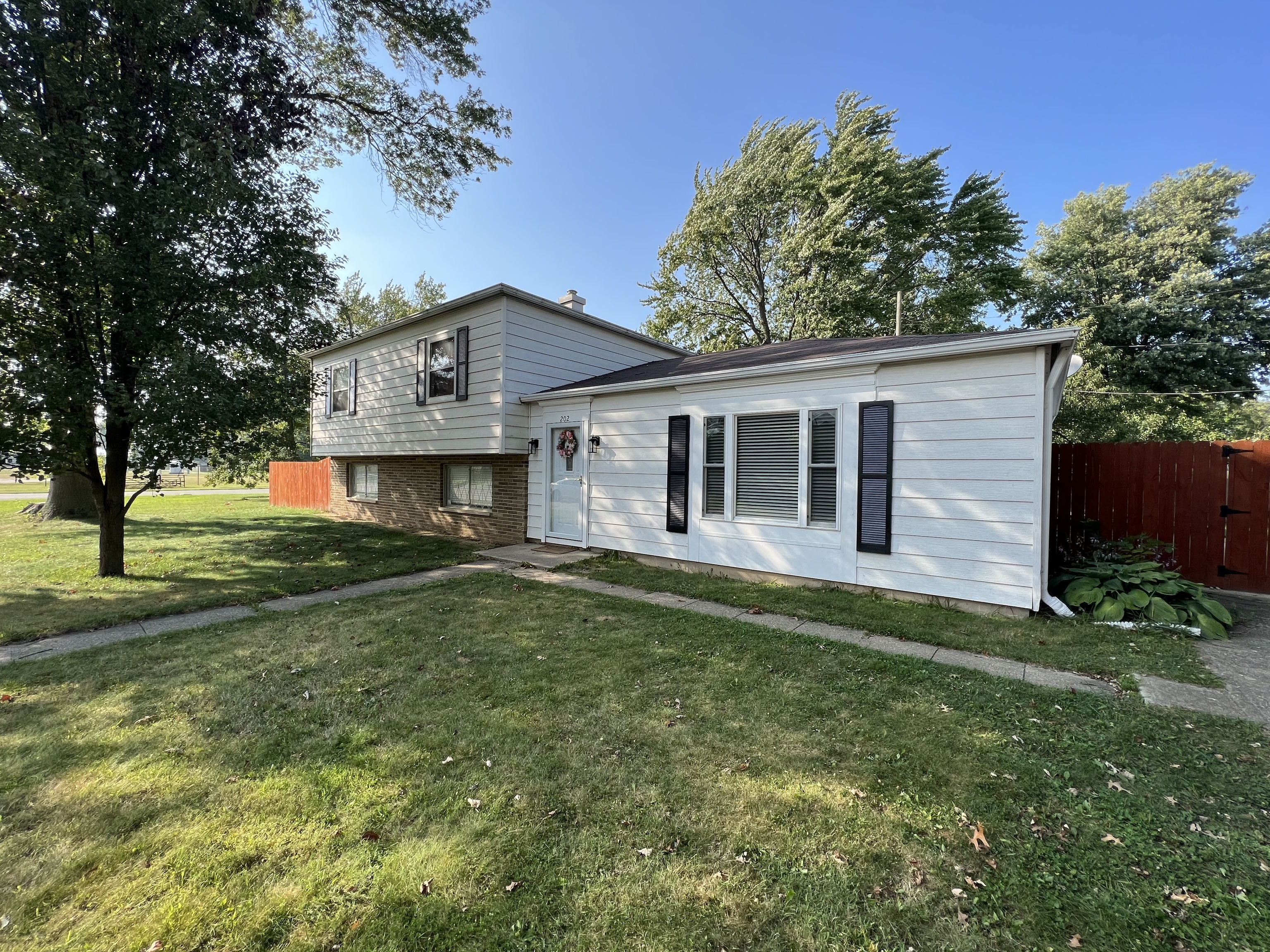 Welcome to small-town living. This corner lot home has 4 bedrooms and 2.5 baths with lots of square footage. There is a finished family room in the basement along with a 1/2 bath and laundry. The main level has a living room, dining room, and spacious kitchen. The upper level has 4 bedrooms and 2 full baths. The large yard with mature trees has a privacy fence in the back with a pergola. There is also a nice 2 car detached garage. Don’t miss your chance to own this beautiful home.
