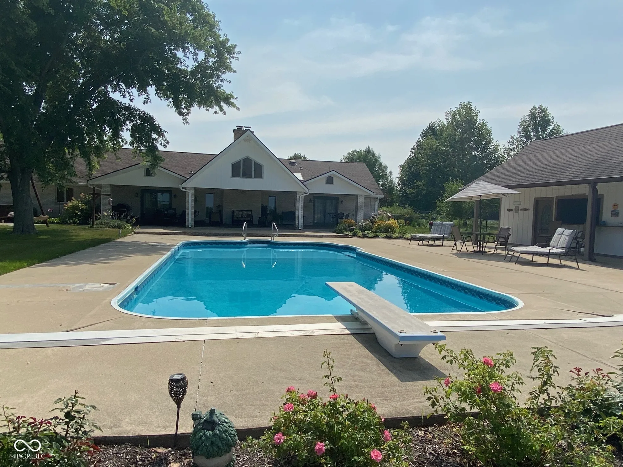 Wonderful property on 11.24 acres, with a tree lined driveway. Close to Pendleton High School and Middle School. Spacious home with full finished basement. 20×40 Inground pool with pool house with a kitchen area, bathroom and mechanical room. Fully fenced back yard. Detached two car garage has great storage upstairs over the garage. Attached behind the garage are 3 rooms, which could be used for an office, and has heat and phone lines. Large barn with lots of cabinets in the back rooms for a workshop. Also, there is a stairway going up to the overhead storage. It has a lean-to for tractor or large mowers. There is an extra building at the back of the property which holds a wagon and straw. The backyard is a wonderful oasis for family gatherings and parties. A wonderful large covered patio to enjoy your peaceful and quiet backyard while you’re watching family enjoying the inground pool. A large kitchen with breakfast area that looks out to the beautiful back yard. Quartz counter tops and double oven for cooking those holiday meals. The formal dining room has French Doors going into the kitchen and into the large Living Room. It is the perfect size for a special dinner party with friends and family. The original parcel was 5 acres but there is an additional 6.24 acres that is cash rented and planted in soy beans in 2025. The roofs on all buildings were replaced 9 years ago and a new compressor for the air conditioner and carpet in the recreation room in the basement were replaced 2 years ago. This home has been a very special place for the seller to enjoy their families’ milestones and holidays together.