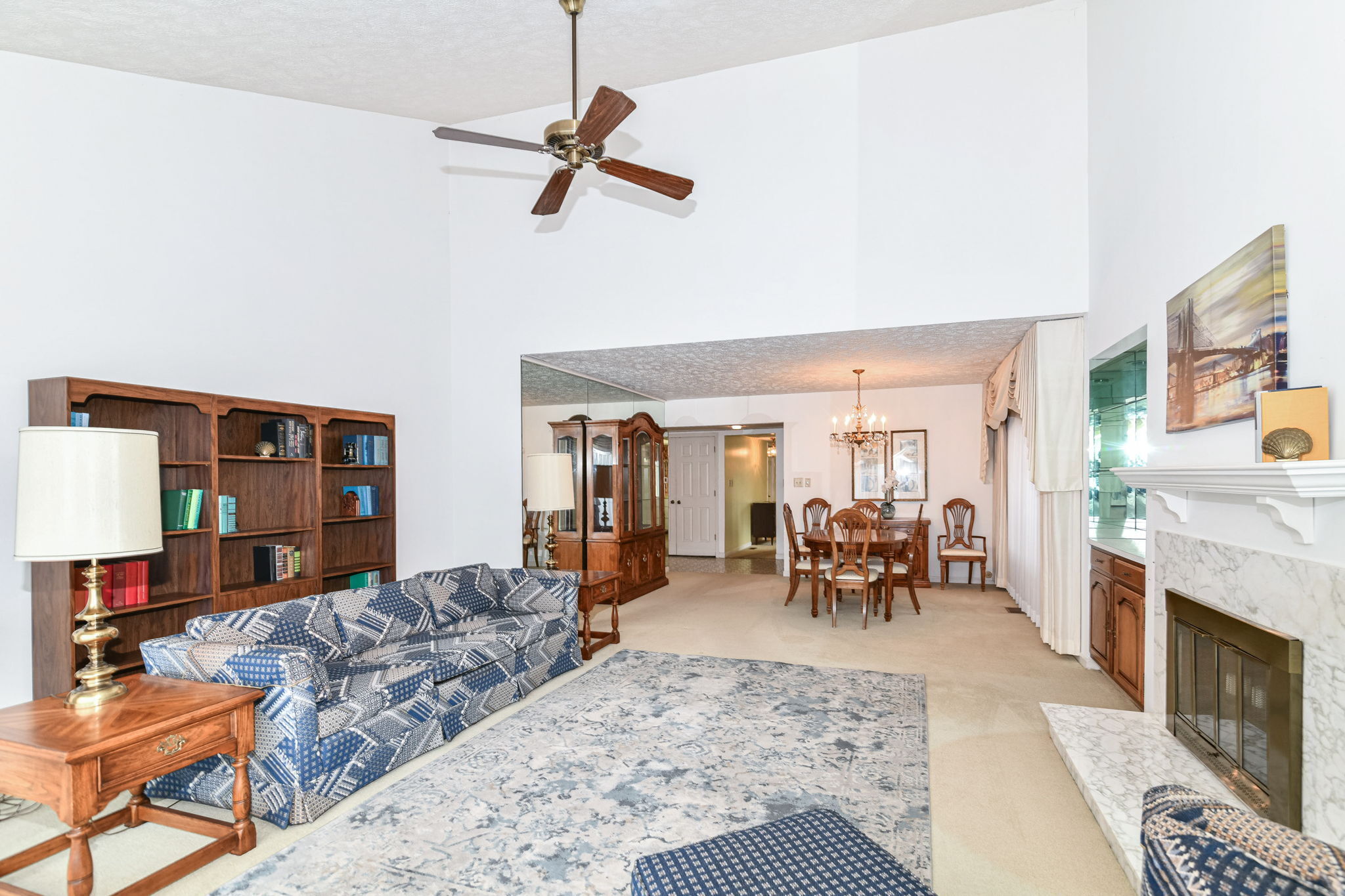 Incredible opportunity to own a spacious one level condo with coveted 2 car garage on Prestwick Golf Course in Avon. This condo features a spacious living & dining room with soaring ceiling, fireplace and bar, plus access to deck. Spacious kitchen & nook. Two separate primary bedrooms, each with access to patios. Lovely atrium in center of home. All appliances included. Home appears to have been meticulously maintained, but is being sold AS IS.