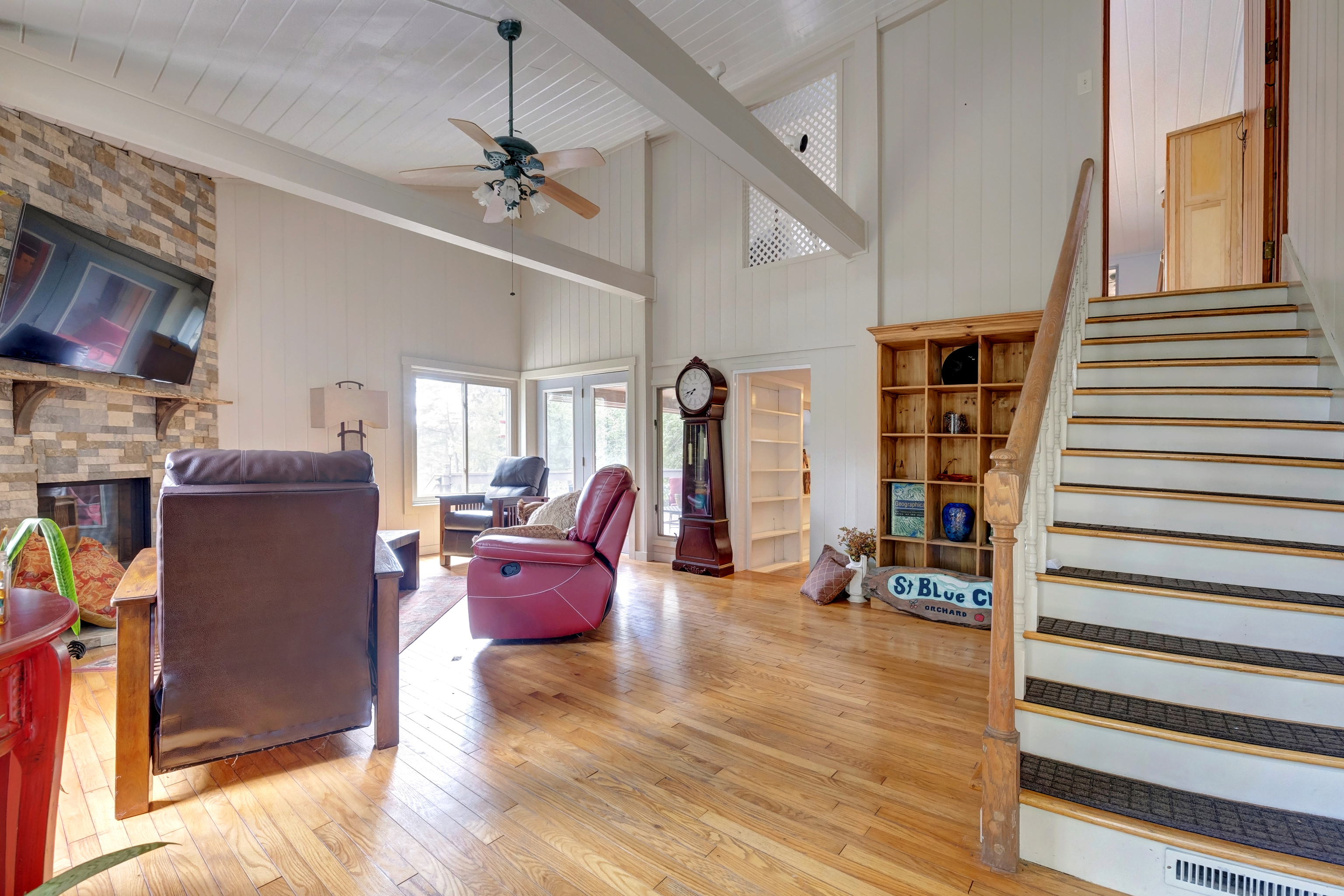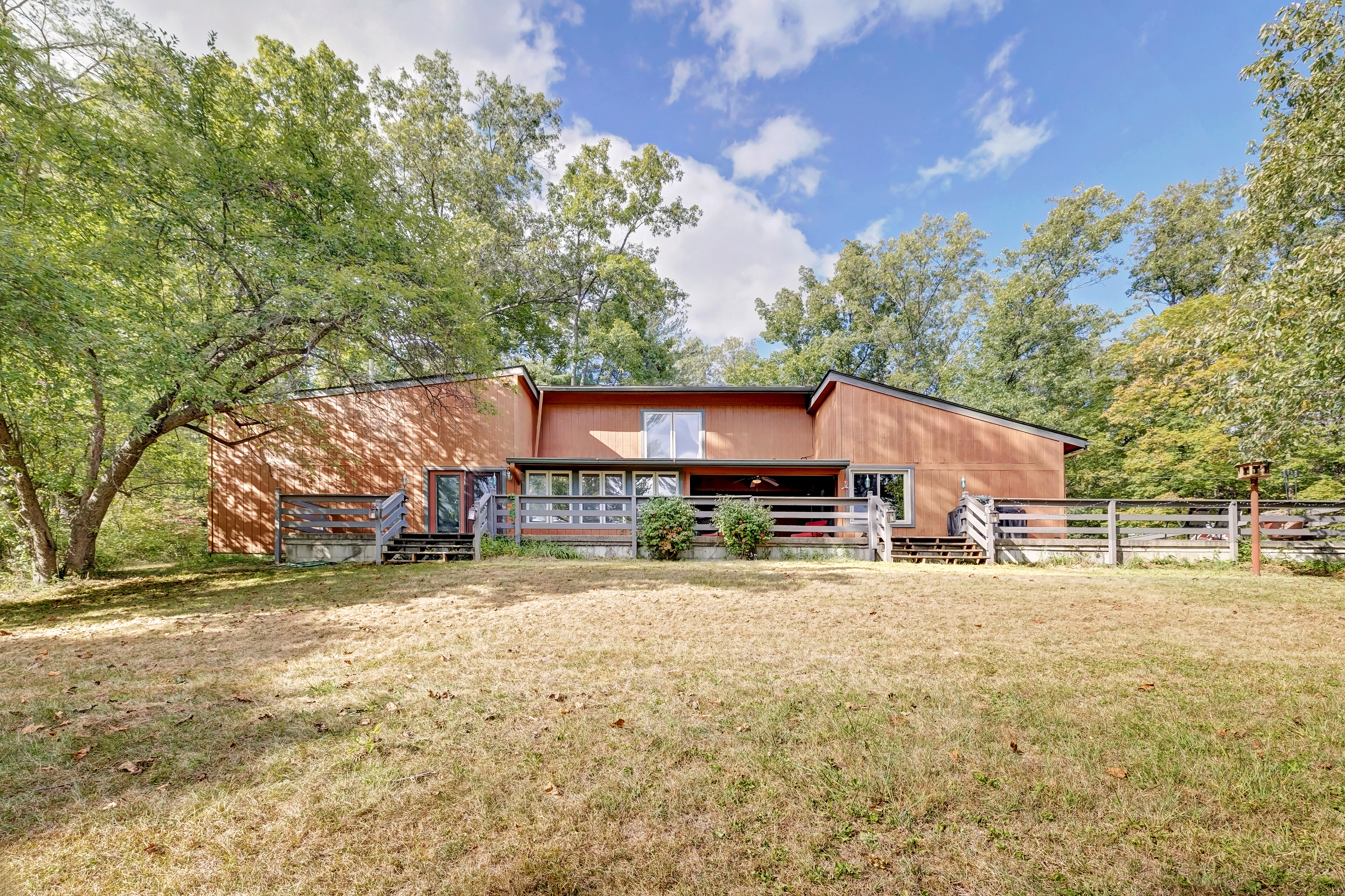 This beautiful home was built by Onya La Tour, a renowned Brown County artist. Sitting at the peak of a 1+ acre meadow, adjacent to Brown County State Park, this expansive home is very quiet, and yet just 1 mile from the quaint town of Nashville. The home features 2013 square feet of gorgeous living space, boasting 2 guest bedrooms, a spacious main suite, music room, 2 full baths, living room with brand new gas fireplace, and an independently heated two-car garage. Sitting on the porch, you can easily admire the rolling hills of Nashville, and yet in just two minutes, access SR 46. Complimenting this spectacular home is a completely remodeled kitchen with soft closing hickory cabinets, and brand new Samsung appliances.