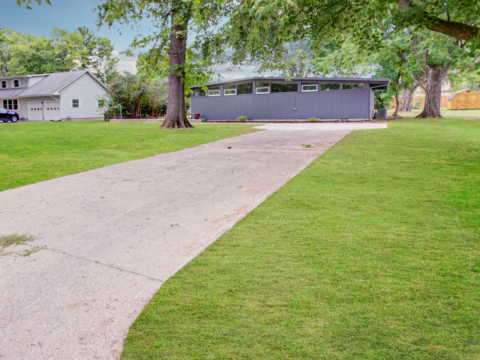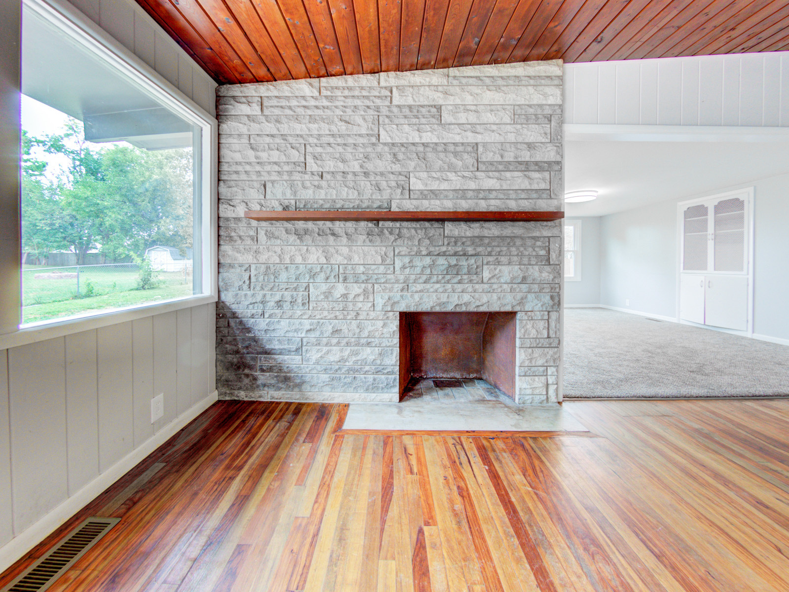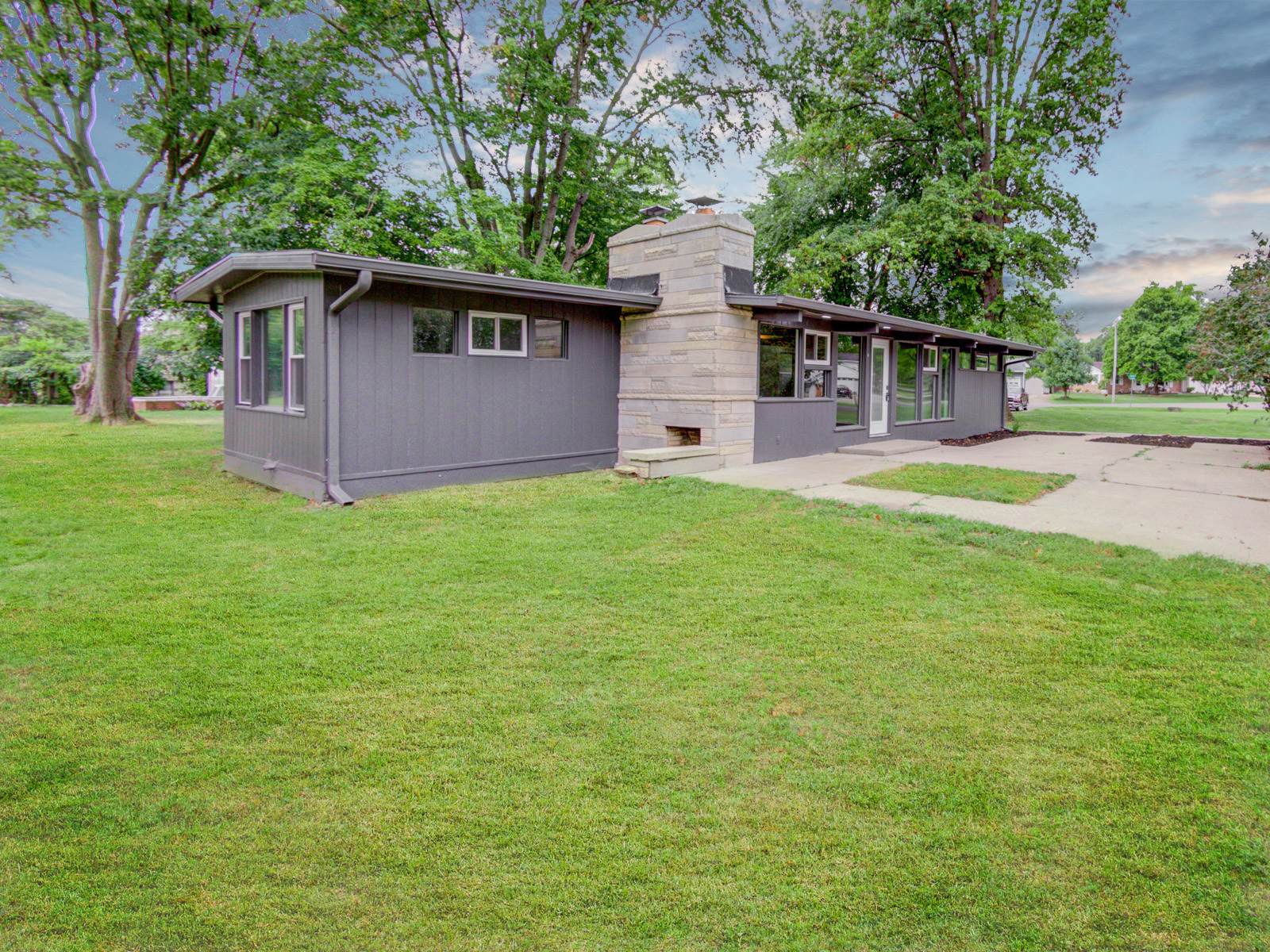 Unique home. Mid Century 4 bed 2 bath home in great neighborhood. Lot of original character with modern updates as well. As you walk into your home you will notice the large living room with hardwood floors and stone fireplace along with a wall of windows. Off the living room is a family room. The kitchen has been updated with new cabinets, granite counters, and stainless steel appliances. Large laundry/utility room off the kitchen as well. Not only is there 4 bedrooms, but you also have a large lot which is partially fenced. Some updates include: paint, flooring, kitchen, baths, roof, furnace, and much more.