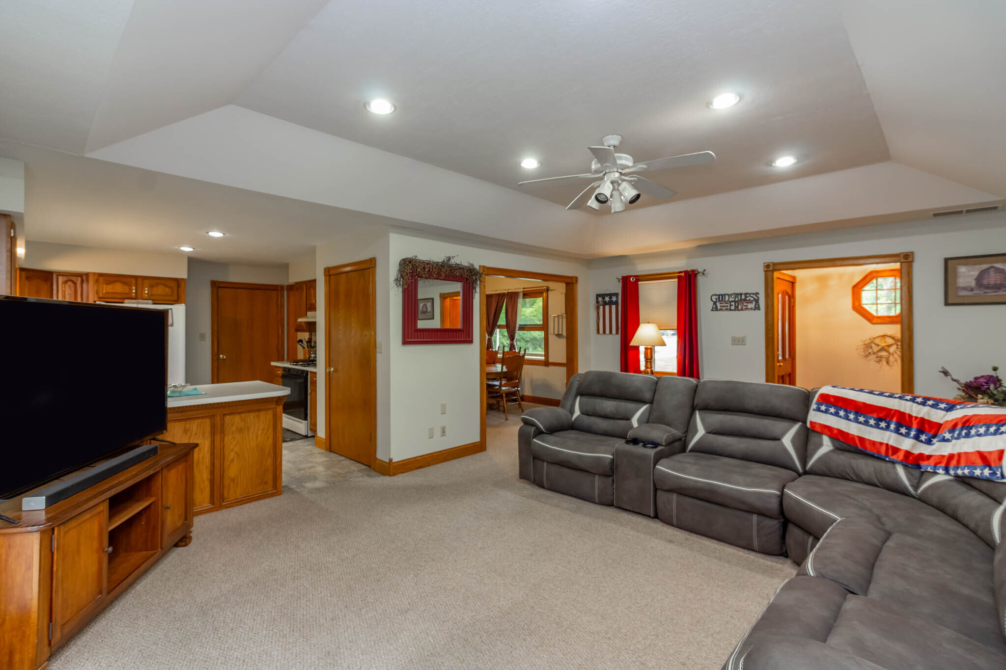 Opportunity is knocking in Prince’s Lakes. This ranch home offer 1,288 sqft 2 bedrooms and 2 full bathrooms. Large great room with recessed lighting is open to the kitchen and dining room. Kitchen is galley style with large pantry, ample counter top space, all appliances staying and a reverse osmosis system! Formal dining room could be converted into third bedroom if desired. Primary bedroom offers dual closets and private full bathroom. Second bedroom also offers dual closets! Large wood deck behind home offers space to unwind and watch the abundant wildlife. Finished garage is heated. Mini barn for bonus storage. Just over 2 acres of land. Come take a look.