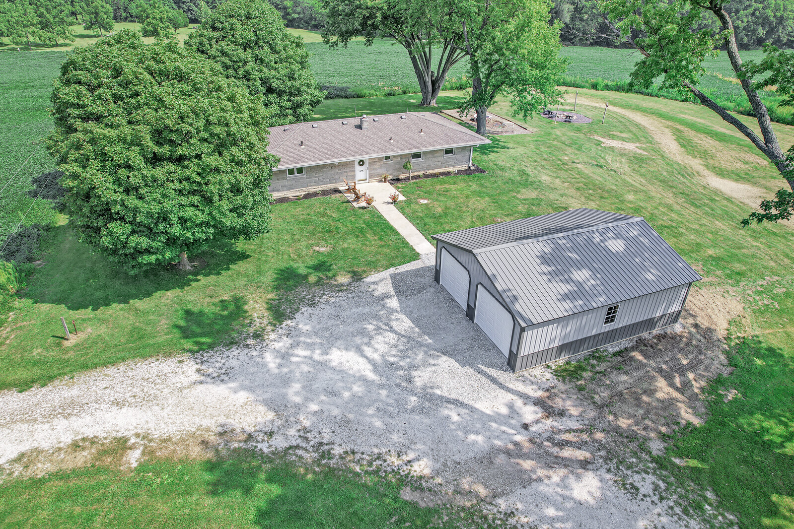 Drive down the private driveway to explore 8 acres of wildlife and country living! This newly updated Bedford stone ranch features 3 bed, 1.5 baths and a full unfinished basement. Kitchen upgrades include: new kitchen cabinets, counter tops, backsplash, recessed lighting, SS appliances and paint. Hardwood floors throughout the entire home and recently updated bathrooms with new toilets and vanities. Make sure you check out the recently constructed 2 car garage! Enjoy shade from the large walnut trees that surround or sit around the fire-pit at night watching those Indiana sunsets! Are you ready to make this house your home?
