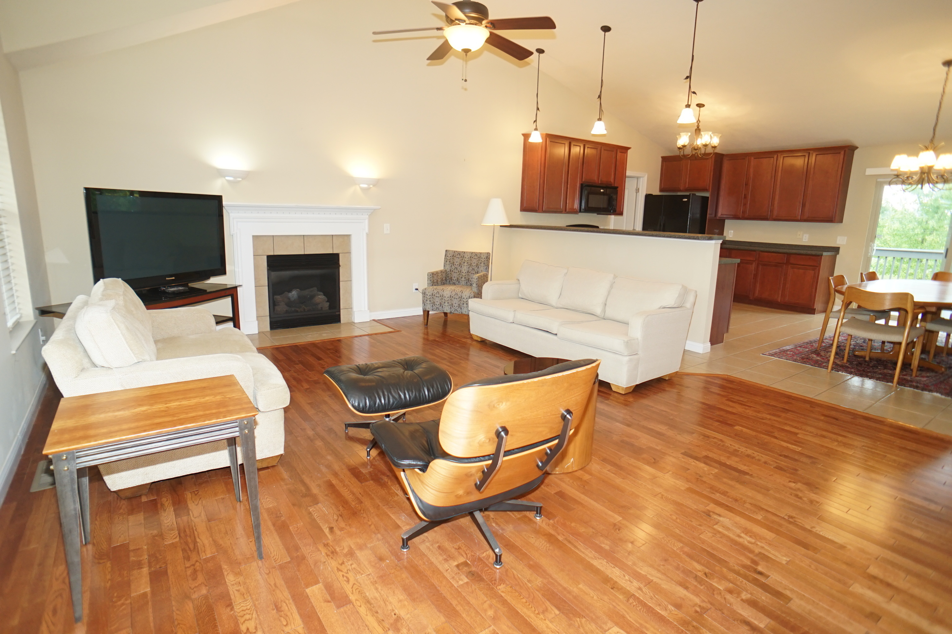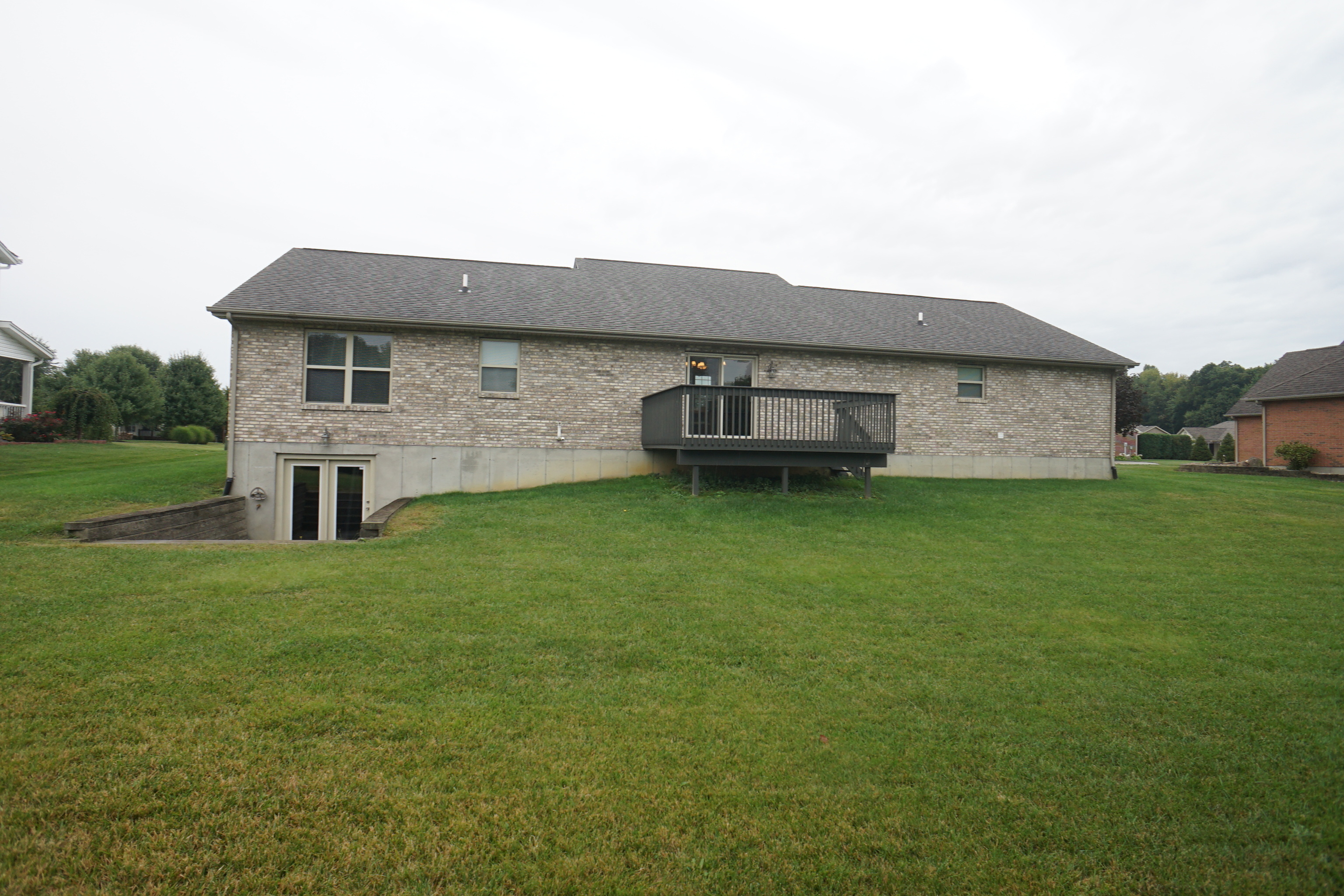 Lovely all brick ranch home with walkout basement in very nice neighborhood. Enter into a large family room with hardwood floors, vaulted ceiling and gas fireplace. Family room has open concept with kitchen and dining area. Kitchen has tile floors and dining area also has a breakfast bar. Laundry on first floor with half bath and tile floor. 12×14 Trek deck off kitchen area. Full basement plumbed for bathroom and is a walkout.