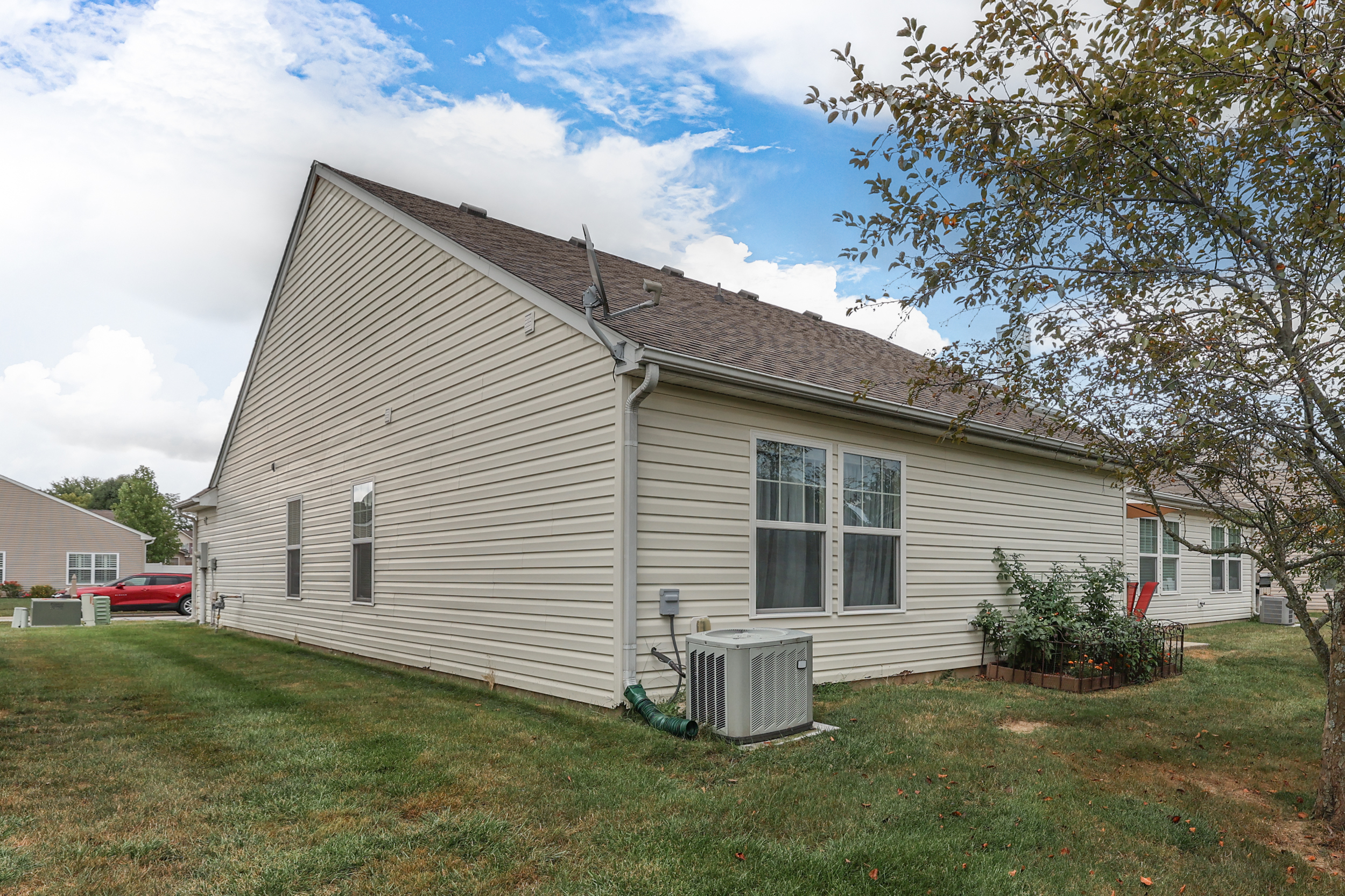 STONE VILLAGE/CONDO STYLE RANCH – 3 BEDROOM + 2 FULL BATH* 1435 sqft. – *Excellent Location Stones Crossing* Features: Large Open Great Room w/Cathedral Ceilings; Eat-In KITCHEN w/Breakfast Room & Pantry + Lots of Cabinet Space + New Elec. Range/Oven & Microhood ’20; MASTER: Vaulted Ceilings, Walk-In Closet, Large Vanity, Garden Tub; 2 Additional Great-Size BEDROOMS- Split Floorplan; LAUNDRY; 2nd Full Bath w/Walk-In Shower; Backyard w/a Large Concrete Patio to Enjoy + 2 Oversized Garden Beds & Mature Trees; Maintenance-Free Lifestyle w/HOA covering Lawncare; Quiet Street in Great Neighborhood – Close to Everything! hoa does not cover building exterior