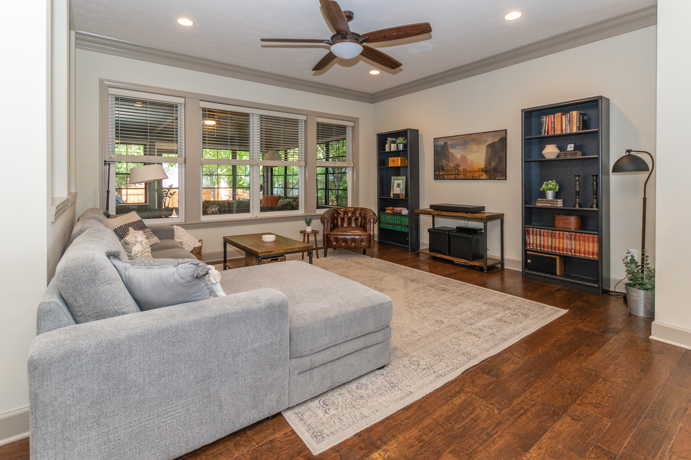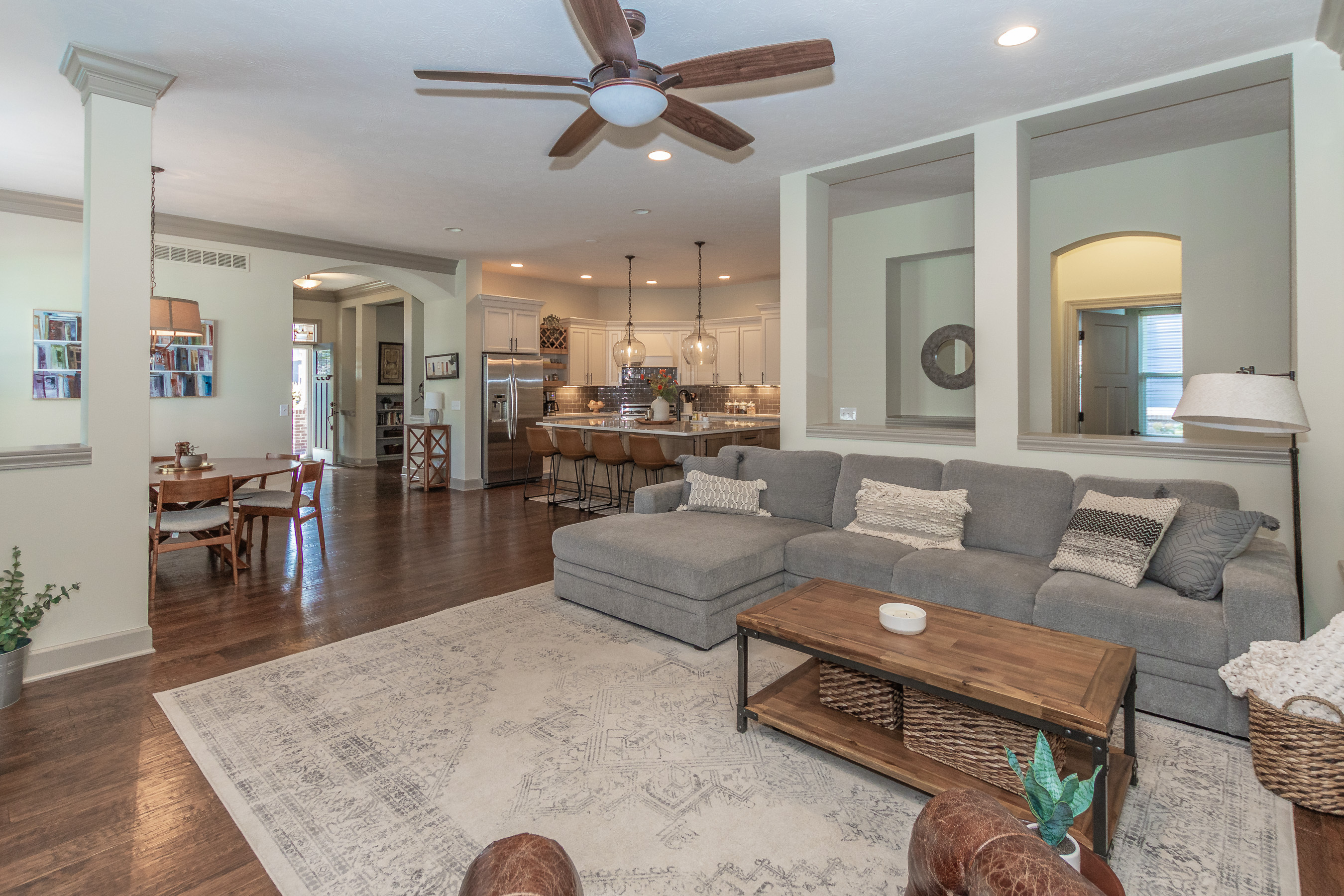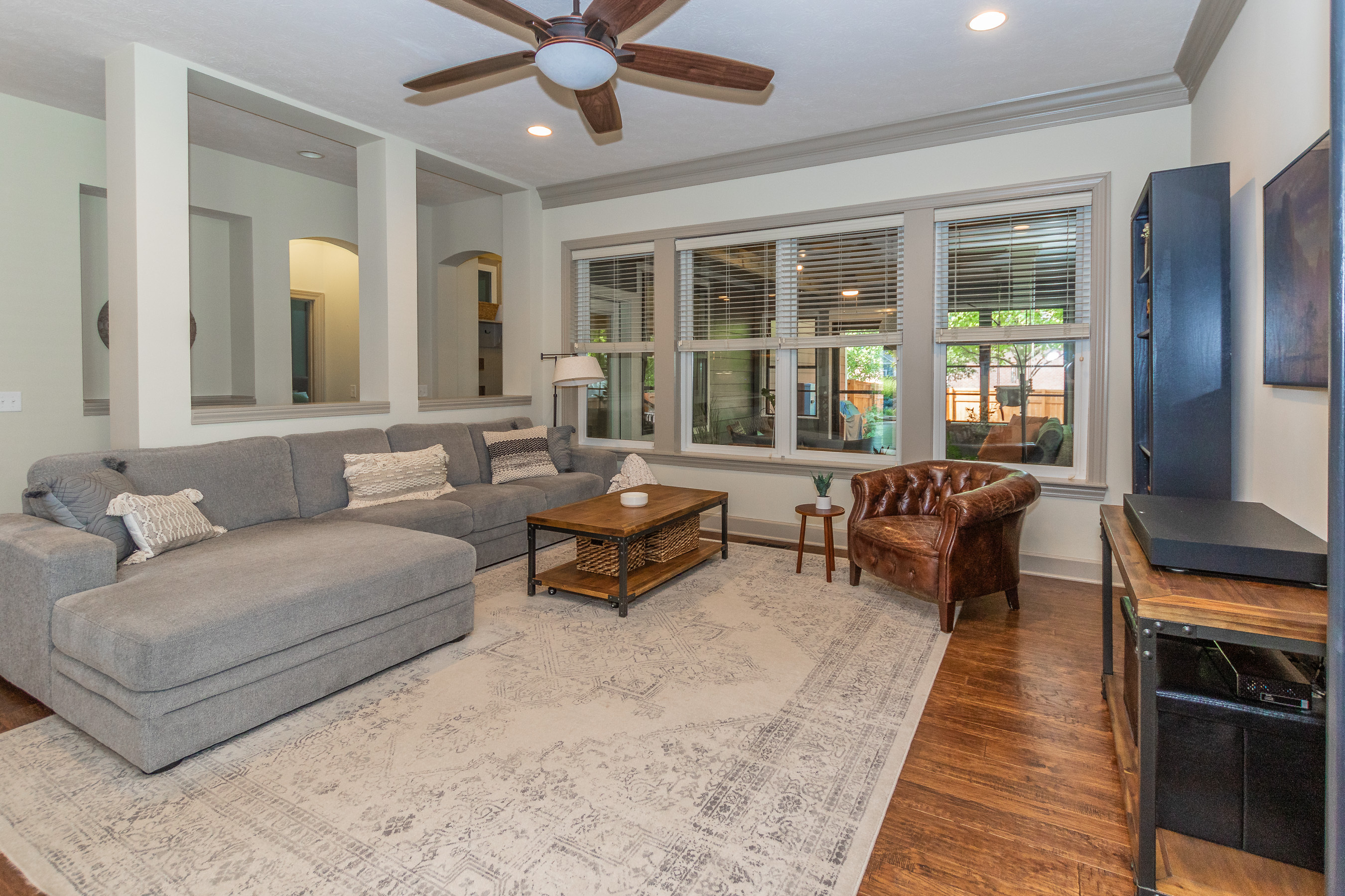 Walk to downtown Carmel, the Monon Trail, CHS & festivals from this stunning David Weekley home in the Arts & Design District! Its prime location puts you in the center of it all while enjoying life on a quiet street w/ fenced front and backyards & 2 car garage w/ epoxy floors. Relax on the front porch or enjoy privacy in the beautiful screened in back porch. The well thought out design offers a main floor master & ensuite bath, huge shower and W/I closet! The gorgeous main level features a separate den/office, plus a large modern kitchen & open floor plan ideal for entertaining. The basement is made for movie night w/ a wet bar, separate BR & full bath. The upper level boasts 2BR and a large loft. The home is Energy Star certified.
