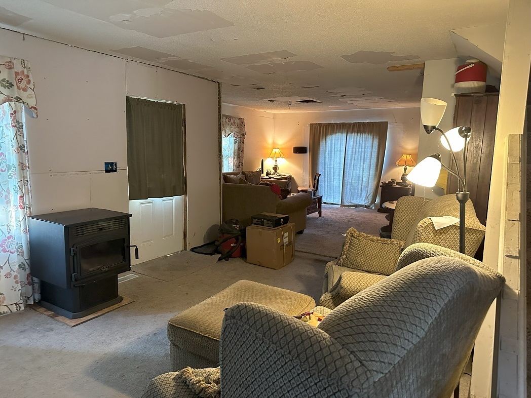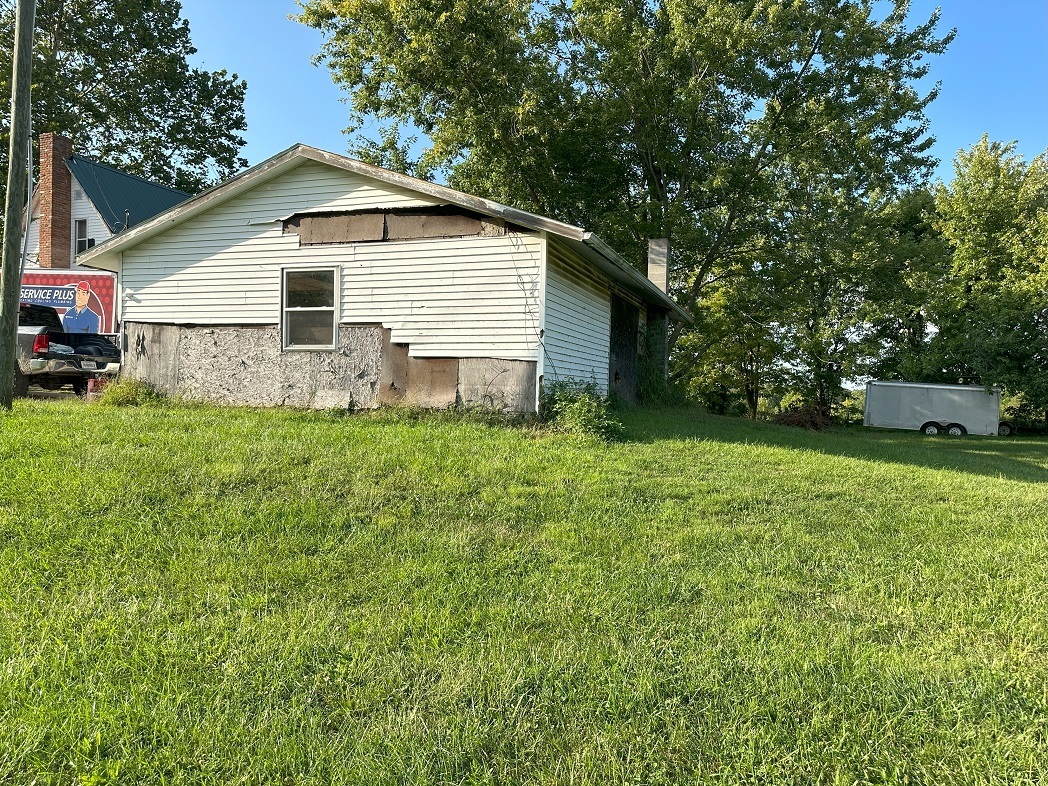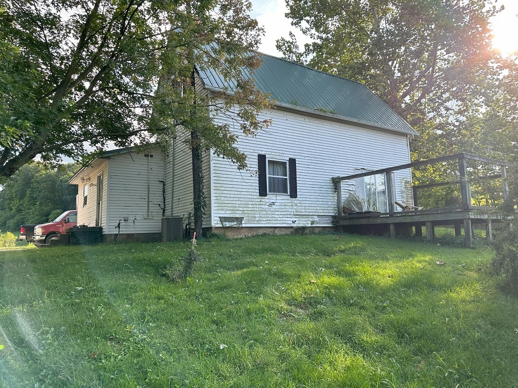 ALMOST 30 ACRES OF WOODS AND OPEN PASTURE AREA WITH VIEW OF POND LISTED AT APPRAISED VALUE OF LAND ONLY NOT INCLUDING THE HOME WHICH IS IN NEED OF COSMETICS BUT IS VERY MUCH LIVABLE AND HAS A LOT OF POTENTIAL. Home needs exterior siding and floor coverings on interior, but the stone wall with the wood stove insert in the large great room is magnificent. Home has a bedroom on the main level but upstairs there is a family area along with 2 more bedrooms. This is the farmhouse you have been waiting on with possibility of more bedrooms. Windows have been replaced in last few years and roof has been replaced within the last 10 years. Home is being sold as is. Older barn is need of repair but 3 car detached garage is good for projects.