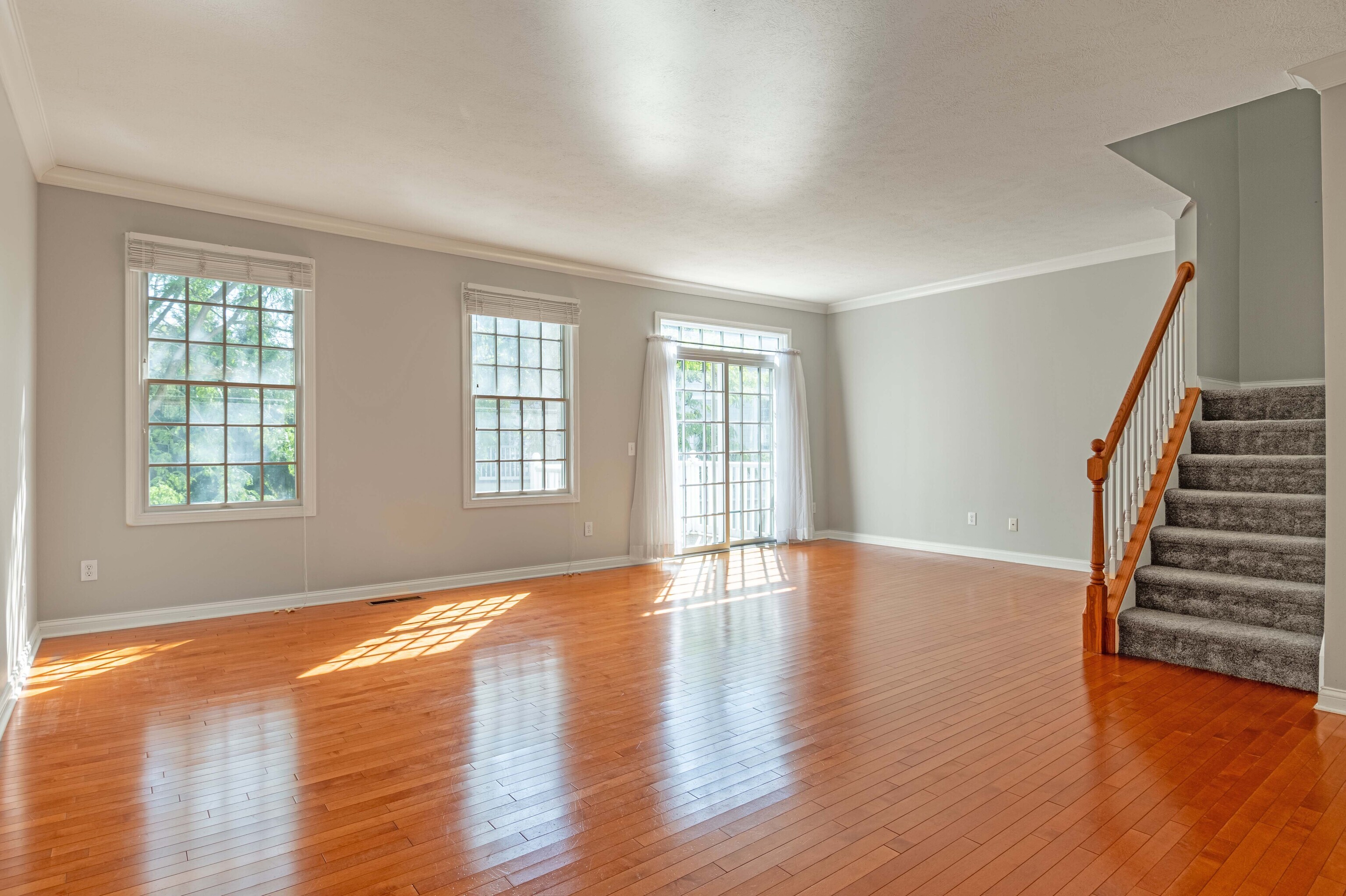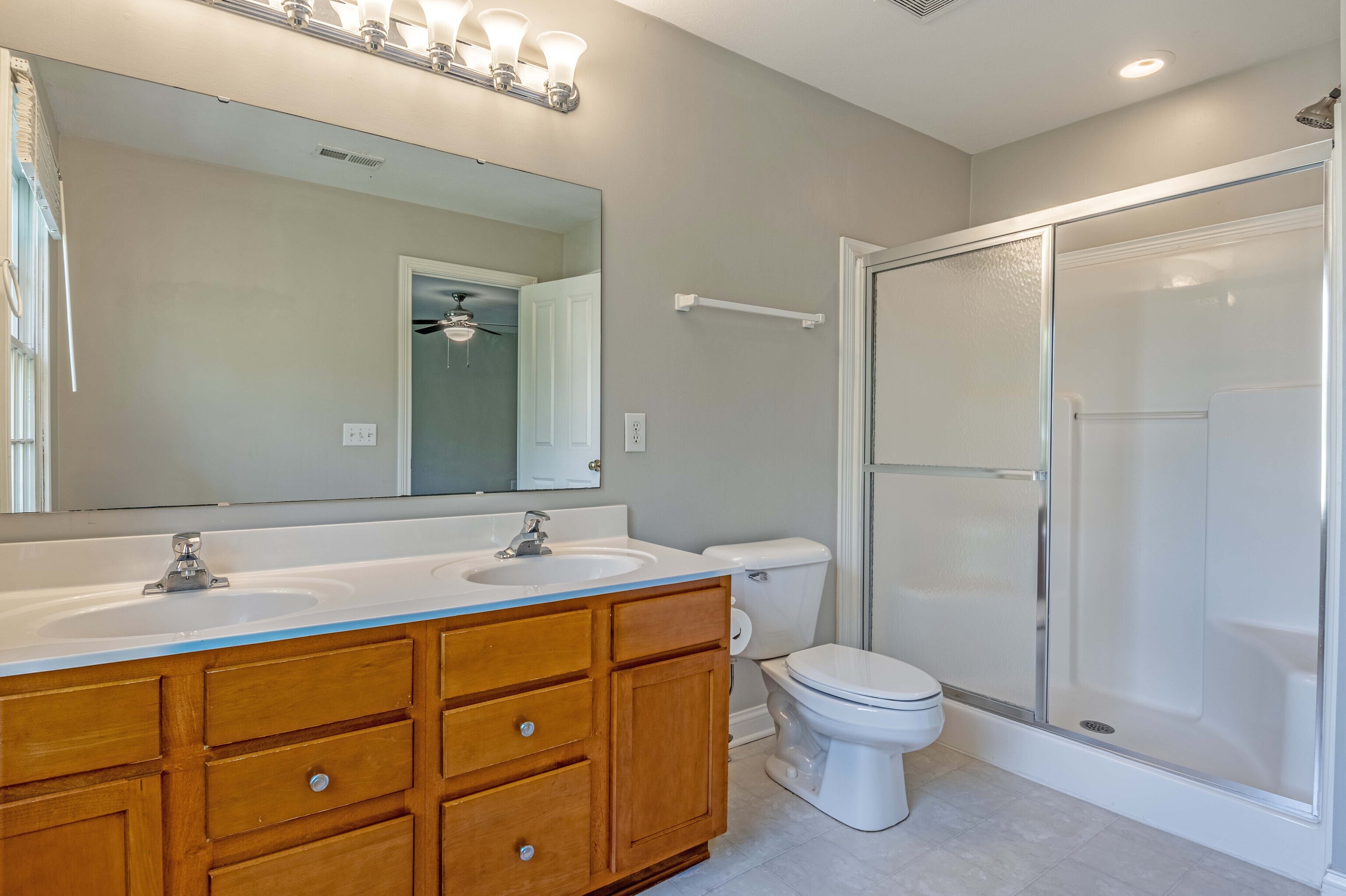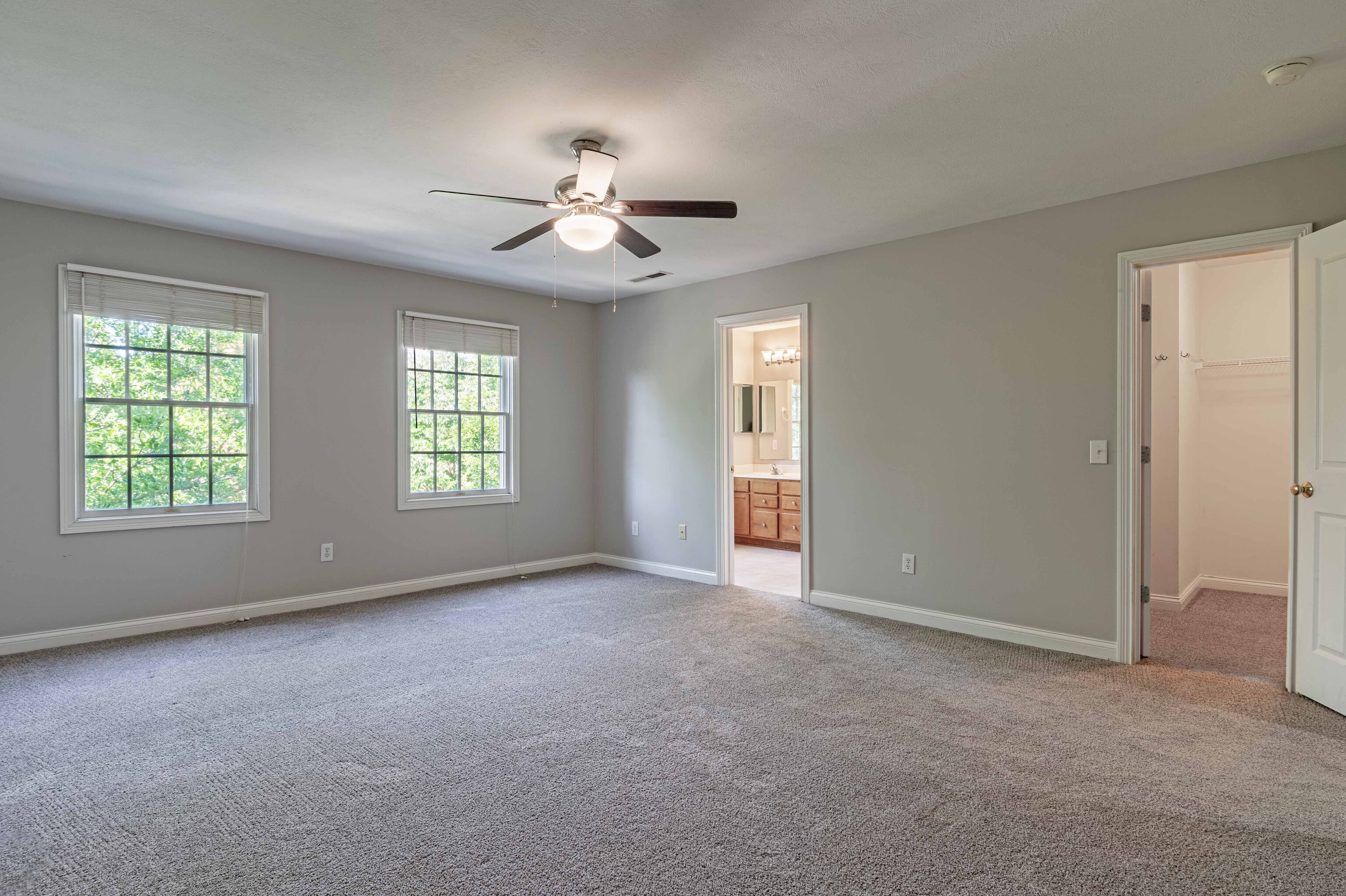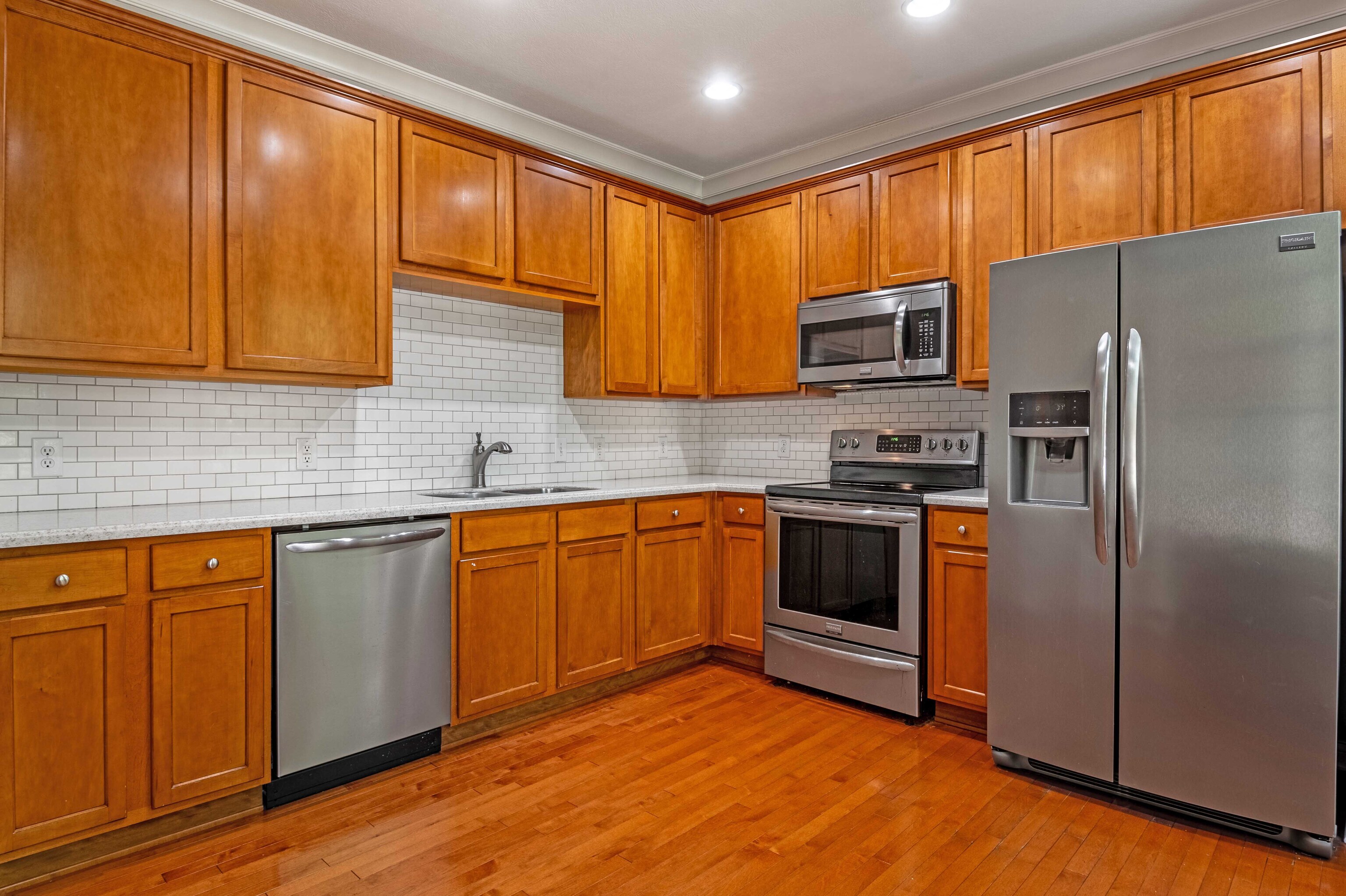 3 Spacious Bedroom / 3.5 Baths (each bedroom with own bath) … 2 master bedrooms on upper floor. Main Floor hardwoods with open area for dining table or perhaps office area. Kitchen has stainless appliances and plenty of cabinetry/ counter space. Over-sized, two car garage and walking distance to restaurants, parks, amenities and Village Center.