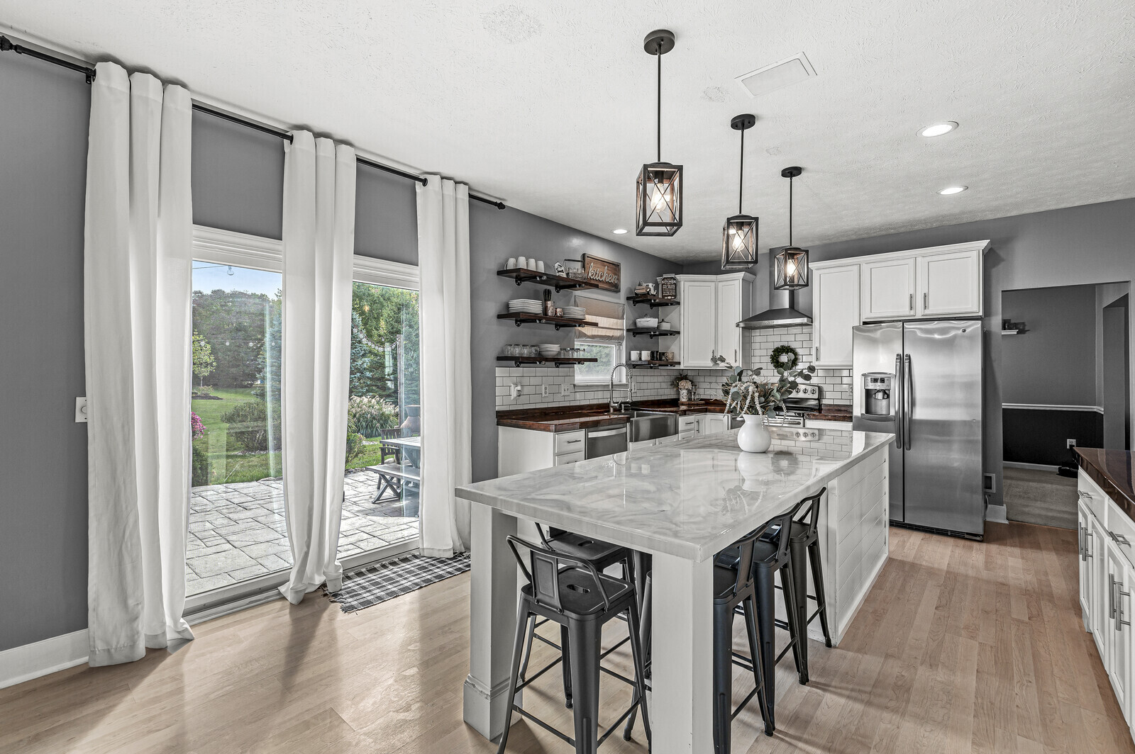 Welcome Home to this Warm Inviting Fishers home on a Cul-de-Sac in popular Sawgrass a few blocks from Ironwood GC. 5 Bedrooms, 3 1/2 Baths. The heart of this home is the Updated Kitchen: Subway Tile Backsplash, plenty of Countertop/Cabinet space, SS Appliances & Hood Fan. Generous Island for seating 5+. It’s an ideal space for both everyday meals and gathering with family or friends. Family Room w/ fireplace adds to the inviting ambiance. Several Flex Spaces: Traditional Dining Rm/Living Rm; Office or Play Rm. 5th Bedroom upstairs could be a bedroom and/or playroom. Full Bath in the finished basement. Two-story Foyer with Updated White Cable & X Railing. Backyard features a stamped concrete patio. Nicely landscaped. 3 Car Garage.
