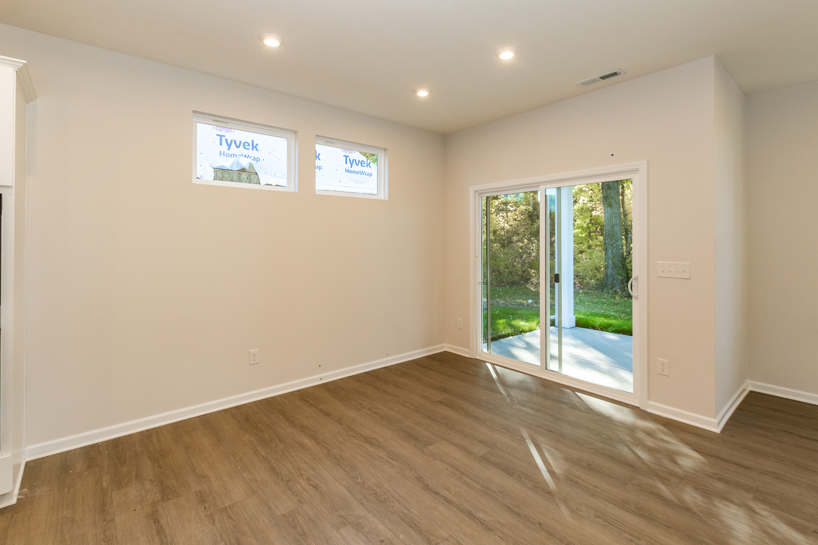 The low-maintenance 1 story Geneva floorplan features 2 bedrooms and 2 baths. The spacious family room has a show piece fireplace! The open plan living space is highlighted by a gourmet kitchen with quartz countertops, large kitchen island, and a lot of spacious cabinets. The open floorplan also has beautiful Luxury Vinyl Plank flooring! The charming exterior features brick and James Hardie. This home has a large covered porch with a peaceful tree line lot beautiful tree line lot! Too many extras to mention in this beautiful home!