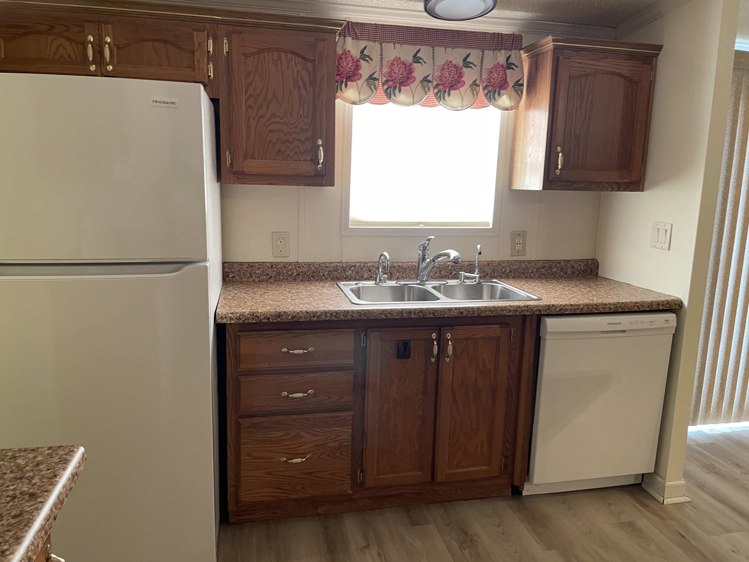 Well maintained, move in ready, freshly painted, 3 bed/2 bath home in quiet cul de sac, .21 acre lot in Stardust. Electric stove, new refrigerator, new dishwasher, reverse osmosis water filtration system, instant hot water faucet, all appliances stay. New 200 amp electric box. New flooring in kitchen, laundry, & dining room. Ring camera system. Levolor blinds, insulated 2 car garage, with drywall and peg boards, 10×12 shed with electric and motion sensors, back deck with retractable awning. 5 yr old roof with transferable 30 year warranty. Pet and smoking free. Manufactured home on permanent foundation with retired title. Property includes access to basketball courts, swimming pool, 5 fishing ponds, community center & over 52 acres of common ground area. Room sizes are approximate.