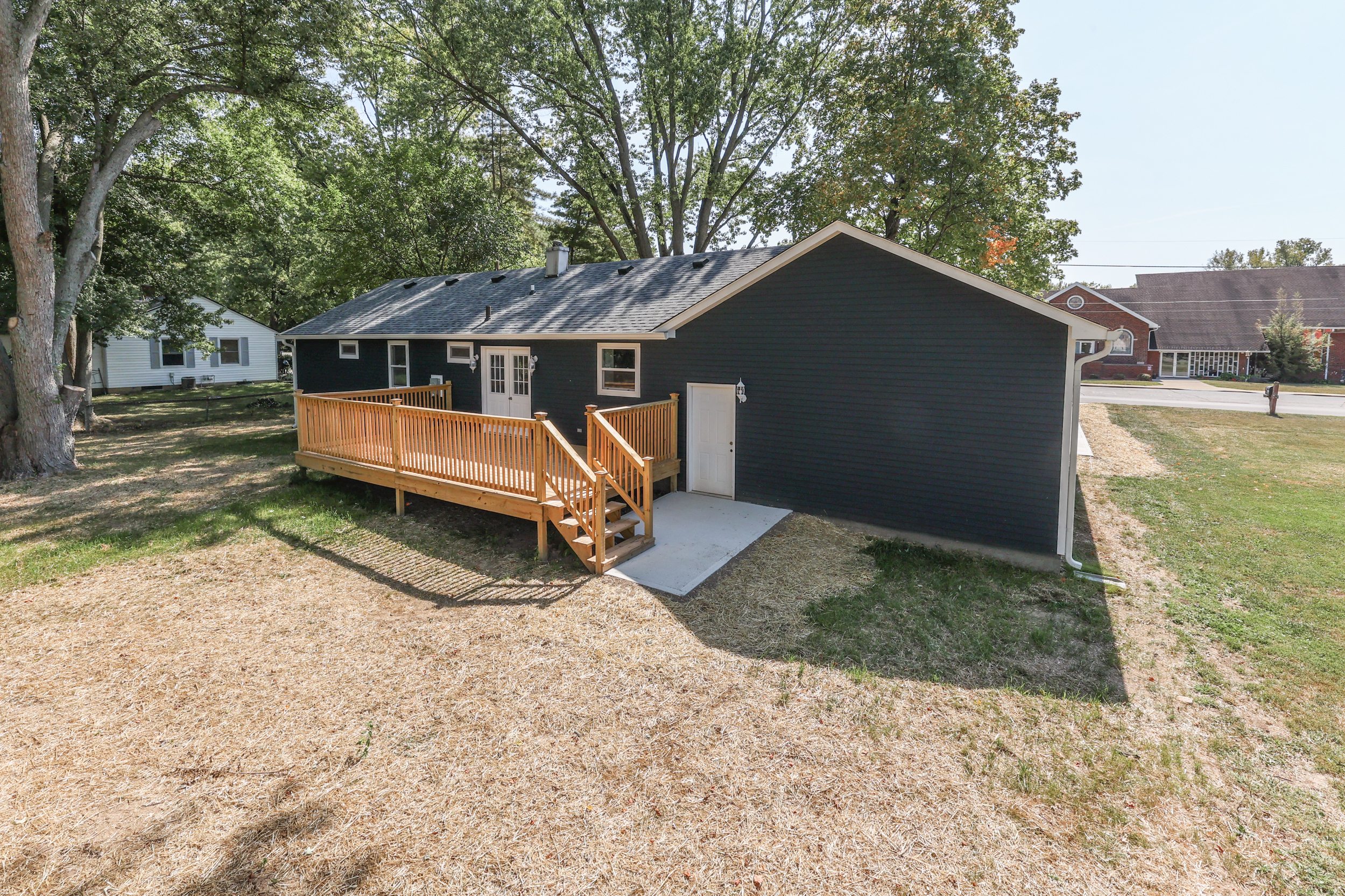 CENTER GROVE Remodeled Ranch & Basement~ Oversized Finished 2 Car Garage~ New Hardi Plank Siding & New Dimensional Roof & New Jeld-Wen Windows & Luxury Vinyl Plank & 24×12 New Wood Deck & New Concrete Driveway/Walk & Patio; Quiet Street & Large Lot; MAIN: YOU’LL love KITCHEN: GRANITE Counters/Center Isle/New 42″ Shaker Cabs & Blt-Ins /New SS Appls, MASTER Suite & NEW Master Bathroom; FAMRm: Can Lights; SUN ROOM: Tile Floor; BASEMENT: Bonus Area, Storage, Utility Room; LAUNDRY; ALSO: New drywall, Lights, Ceiling Fans, Paint, Floor, Baths, Plumbing/Electric, Rubbed Oil Bronze Hardware, Woodwork, Exterior Doors, Interior Doors, French Doors to Deck; NEW AC; Updated Gas Furnace & Water Htr; No HOA; Low Taxes; Enormous Yard – Back to Fenceline