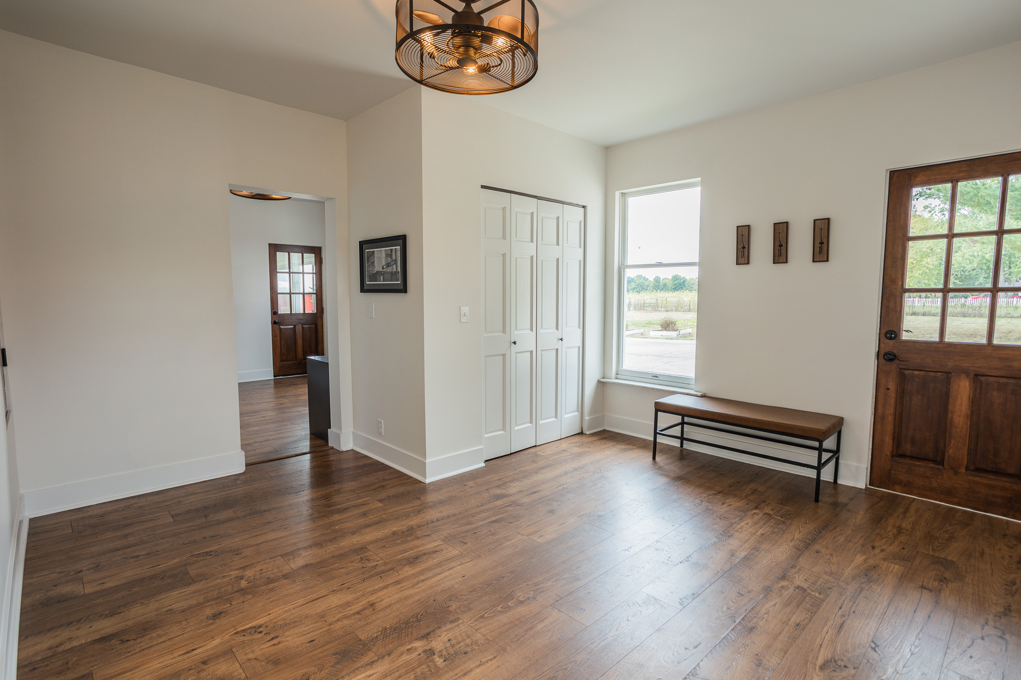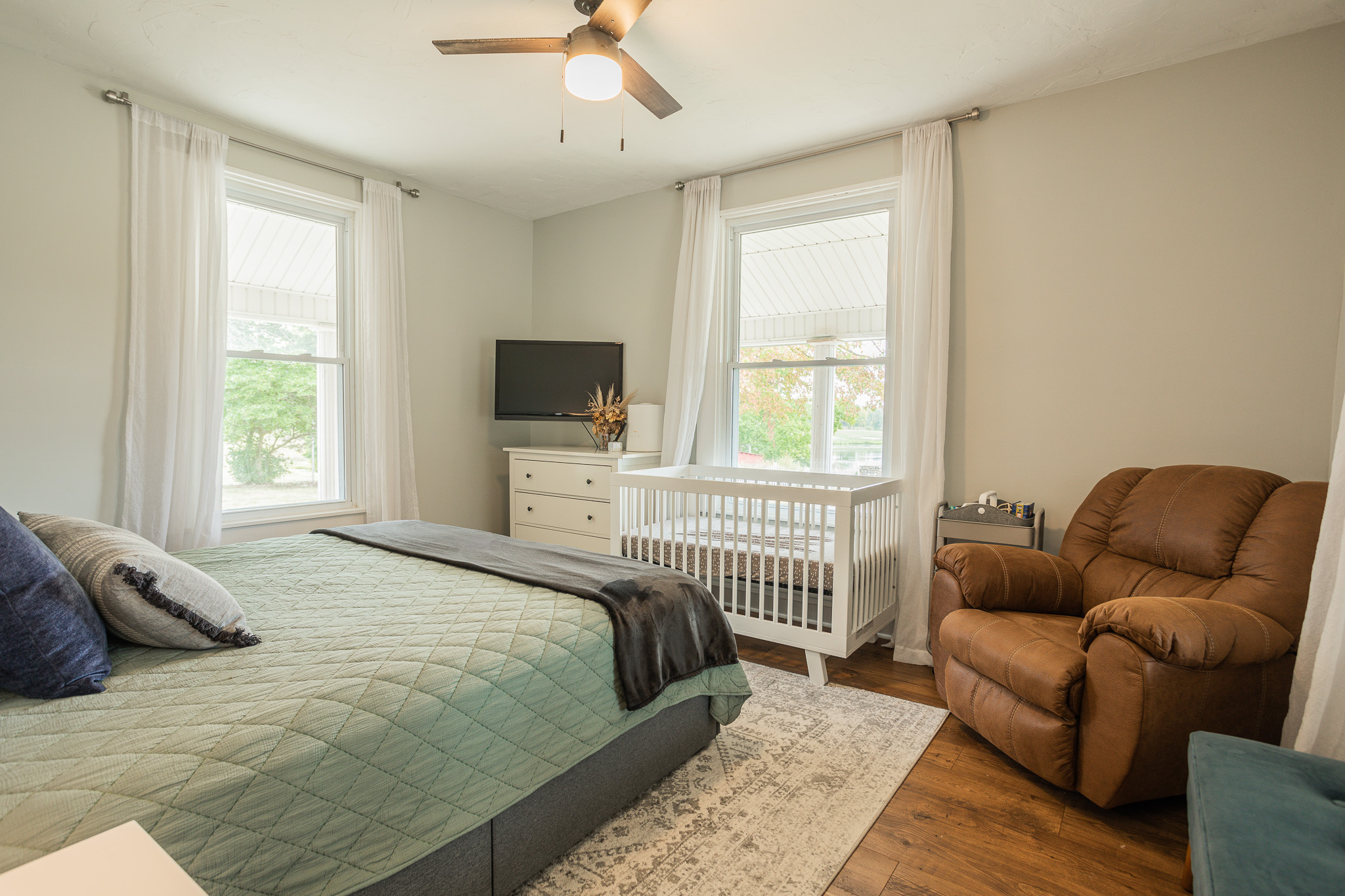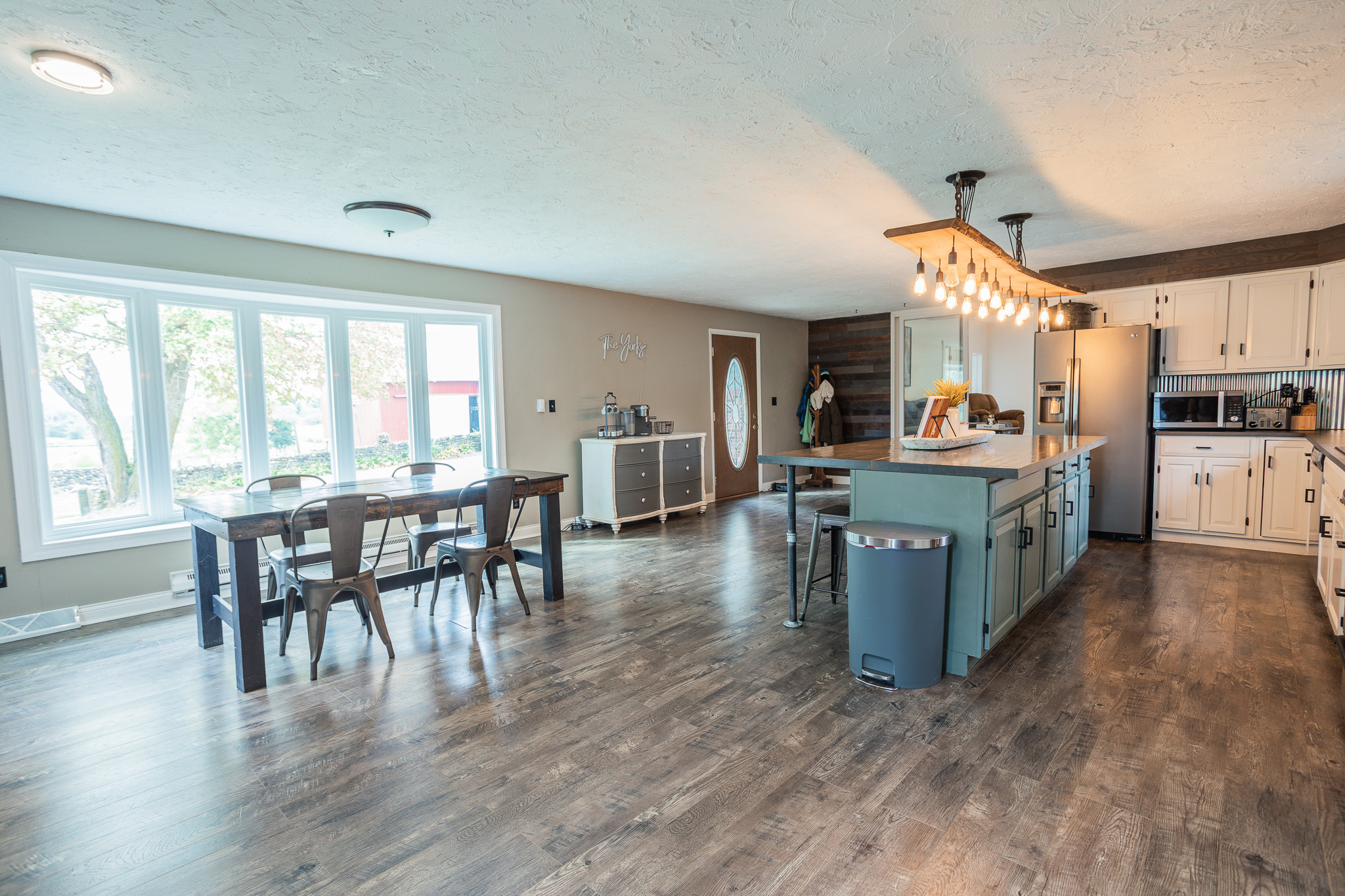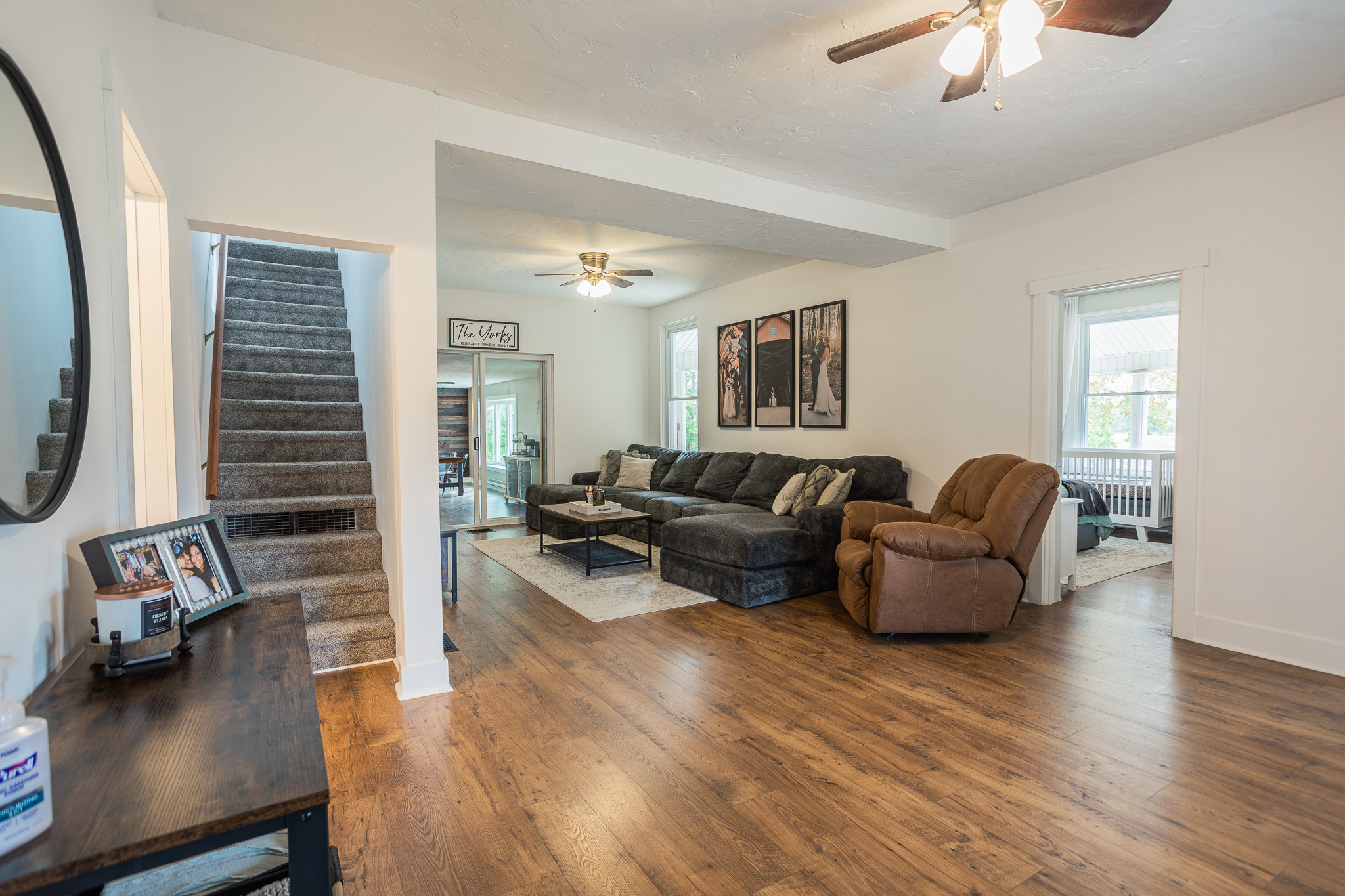 This sprawling, updated farmhouse with gorgeous views on 3.34 acres is a must see! The heart of the home is kitchen/dining/family room with fireplace attached to a large living room. The laundry/mudroom is conveniently located at second entry door off the paved driveway. There are 2 bedrooms downstairs and 2 bedrooms upstairs with a bonus room. Updates throughout include carpet, paint, flooring, drywall, trim and more. You will fall in love with the views from the wraparound front porch and enclosed sunroom! The property boasts 1 acre of lawn with plenty of garden space and a 30 x 54 pole building with concrete floor and electric. The additional 2+ acres is currently planted in corn. Amazing, peaceful countryside living awaits!