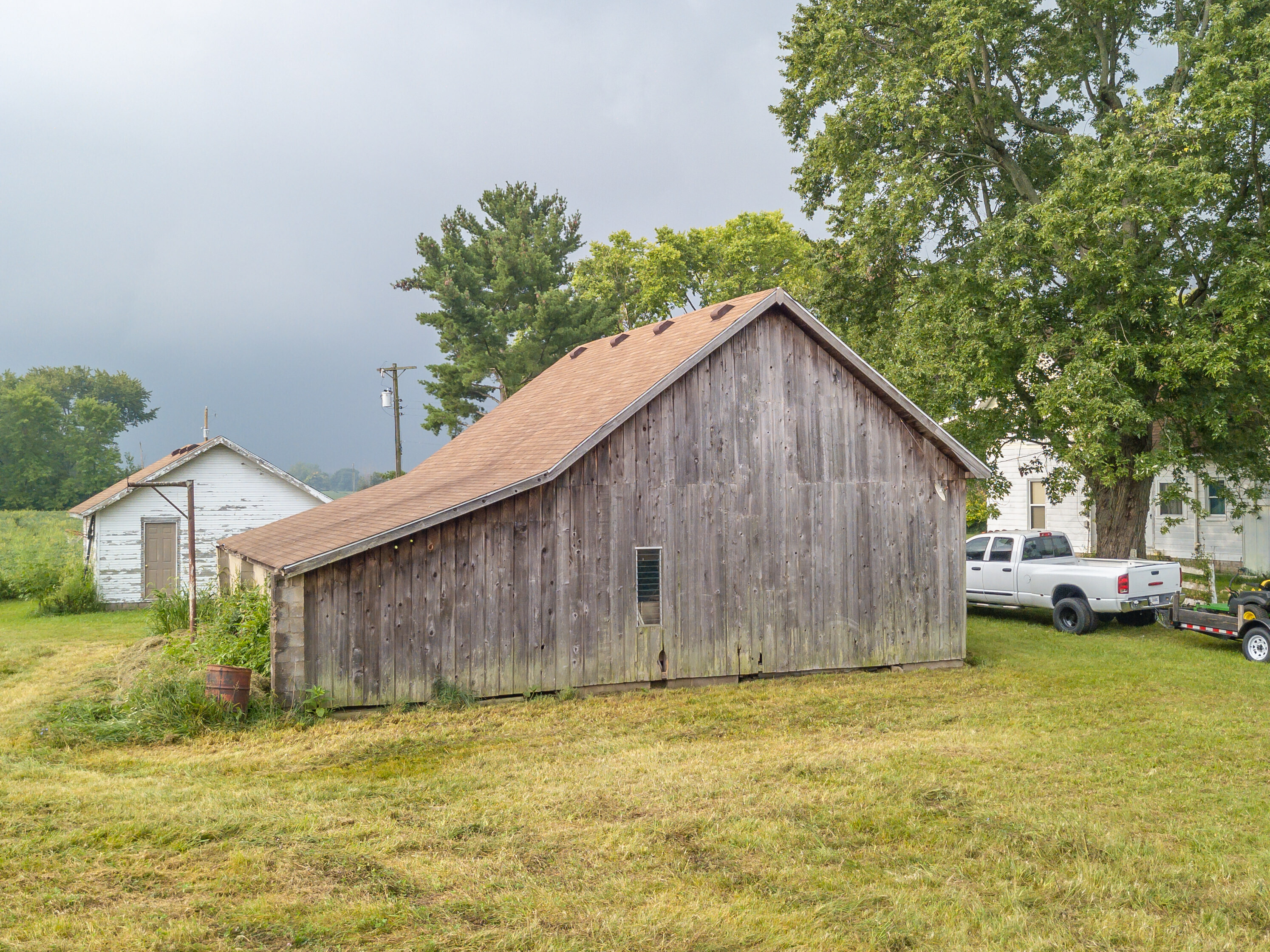 PRIVATE 12+ ACRE PROPERTY IN NEW PALESTINE! Property includes 2,000 square feet with 3 spacious bedrooms, 4 separate land parcels, 1 large27x23 cedar barn with loft, 1 storage barn with dirt/wood floor, detached 2 car garage and small storage building! All 3 smaller residential lots are accessible from Sunset Dr. Home conveniently sits on its own lot and was built in 1938 and includes a covered front porch, dining room or potential 4th bedroom on the main level, 3 bedrooms upstairs, eat in kitchen and large family room and living room! Fiber optics available. Easy access to I-74, I-70 and I-465. Parcel 1-10.15 AC, Parcel 2-0.72 AC, Parcel 3-0.82 AC w/home, Parcel 4-0.59 AC.