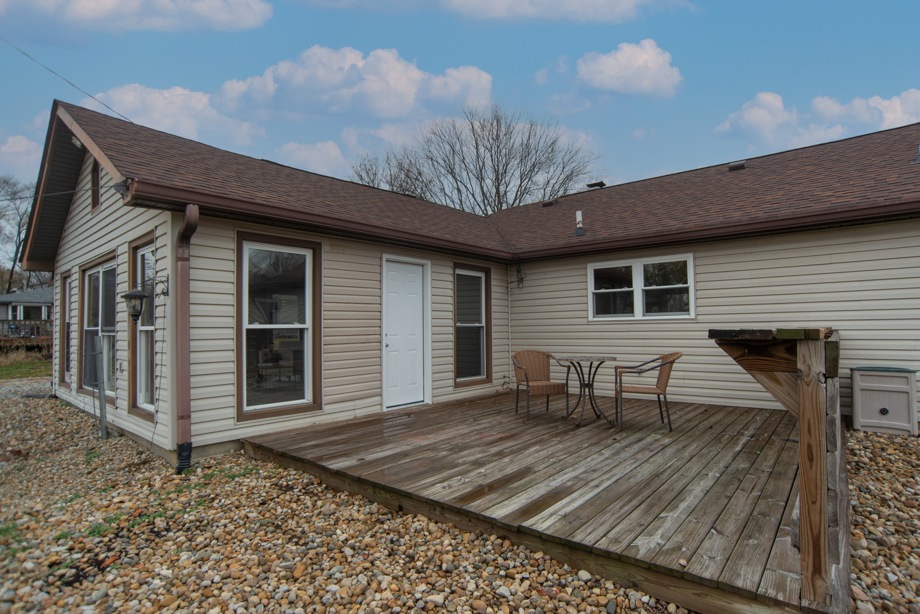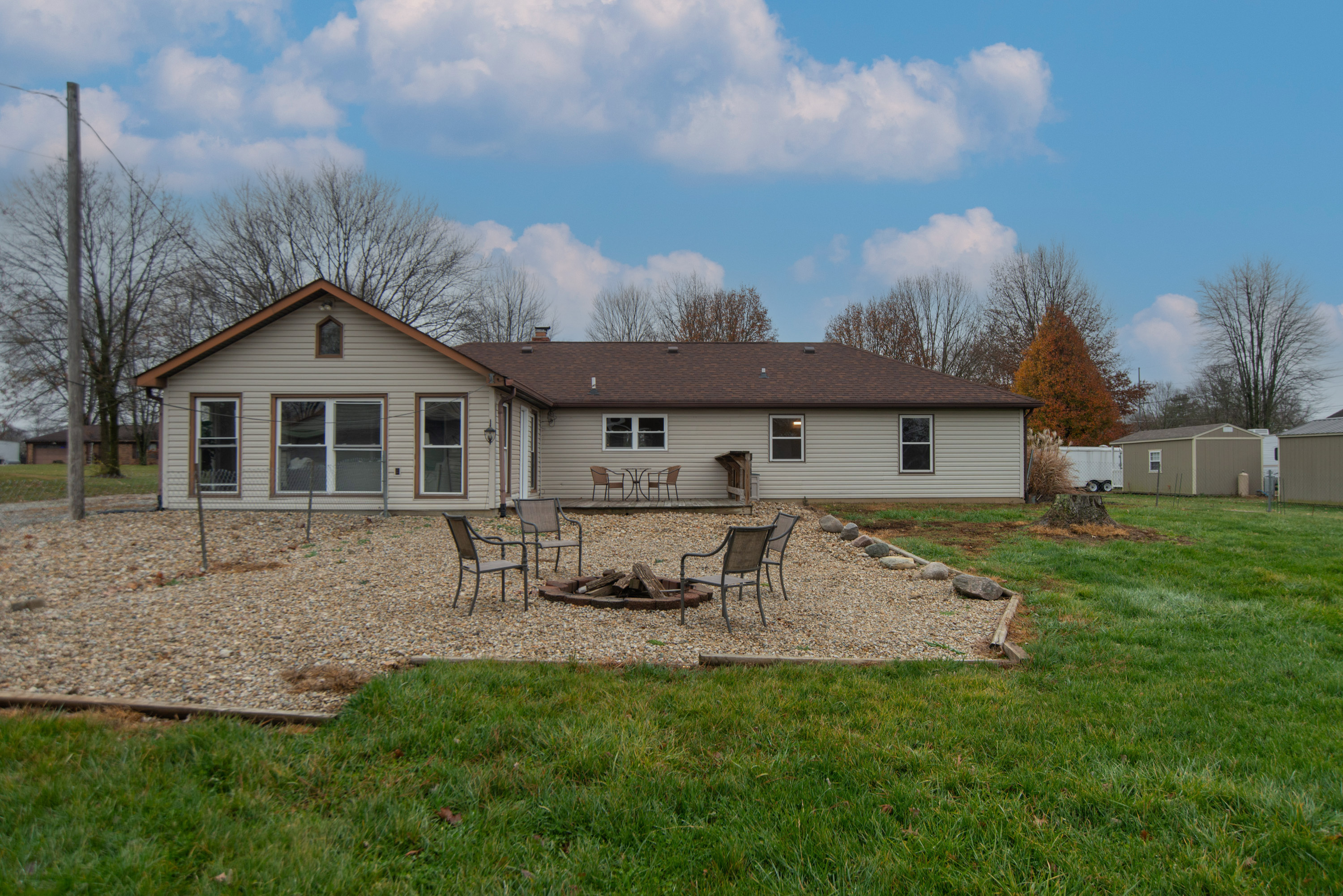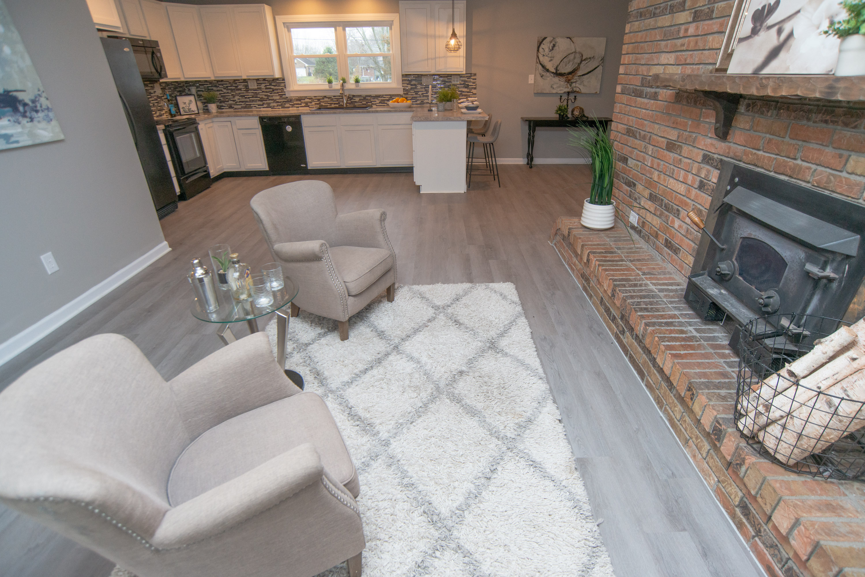 If you have been searching for quiet country living, look no further! This 3 bed, 2 bath, brick ranch home is situated on a half acre lot. Features include a beautifully updated and remodeled interior, an open and inviting kitchen, lovely bathroom finishes, focal point fireplace, and 3-season room with amazing natural light. Must see in person to appreciate those gorgeous vaulted ceilings with beams. Home has a large attached garage that has separate meter for electric, as well as a detached garage in back of home. Out back there is a fenced back yard a large deck space. Enjoy your little slice of peace and quiet, but still near the interstate for easy access.