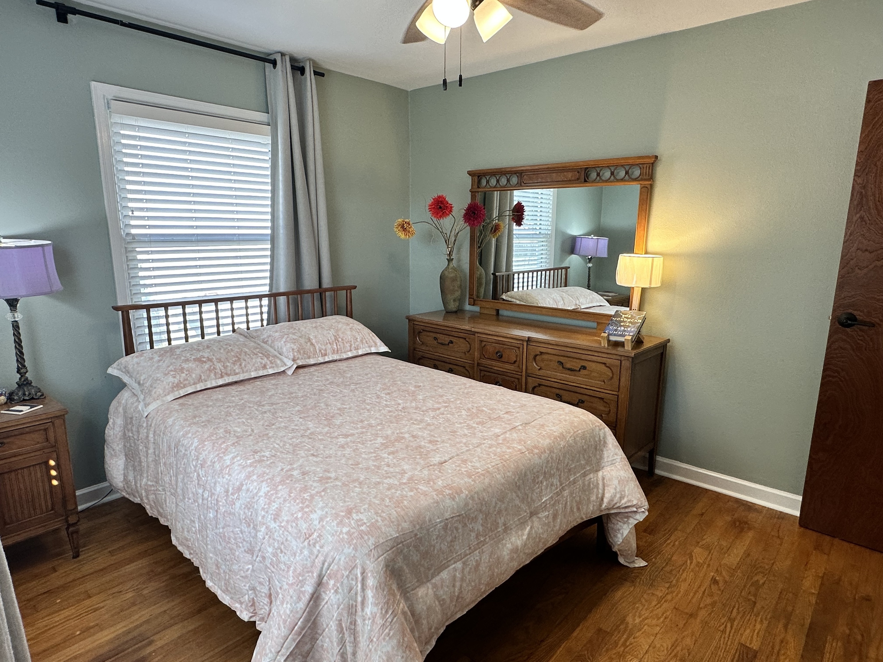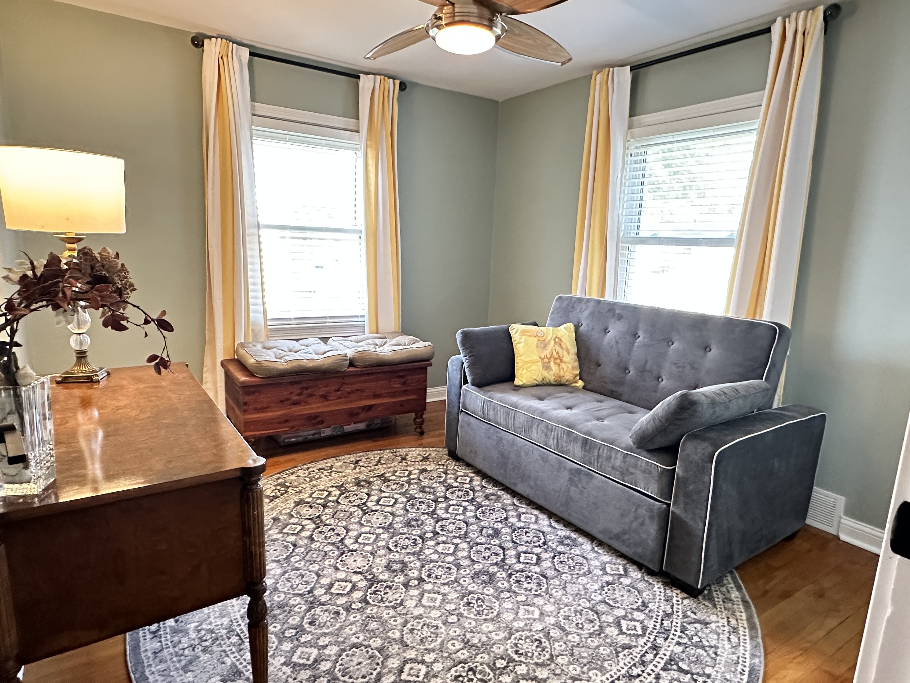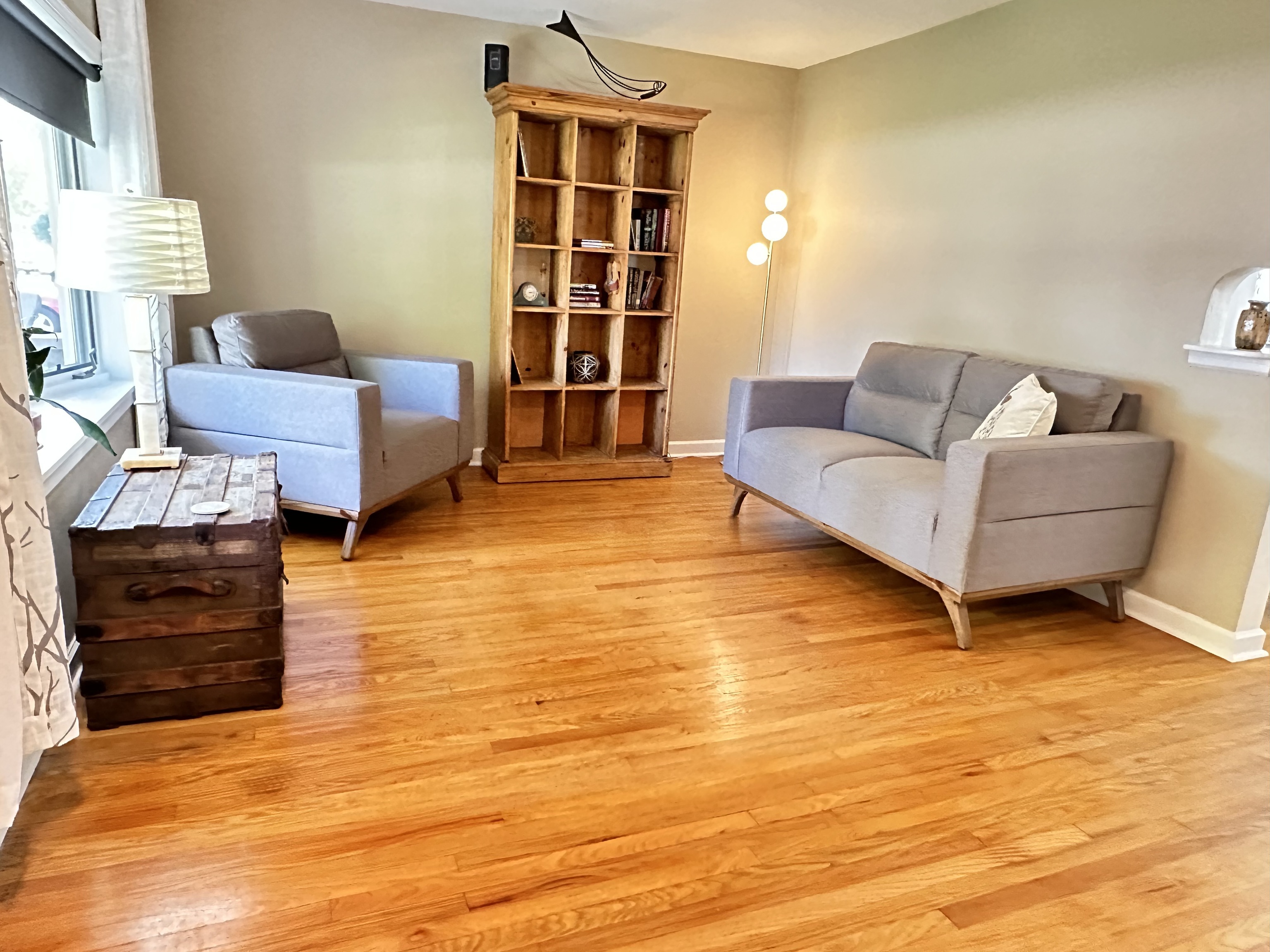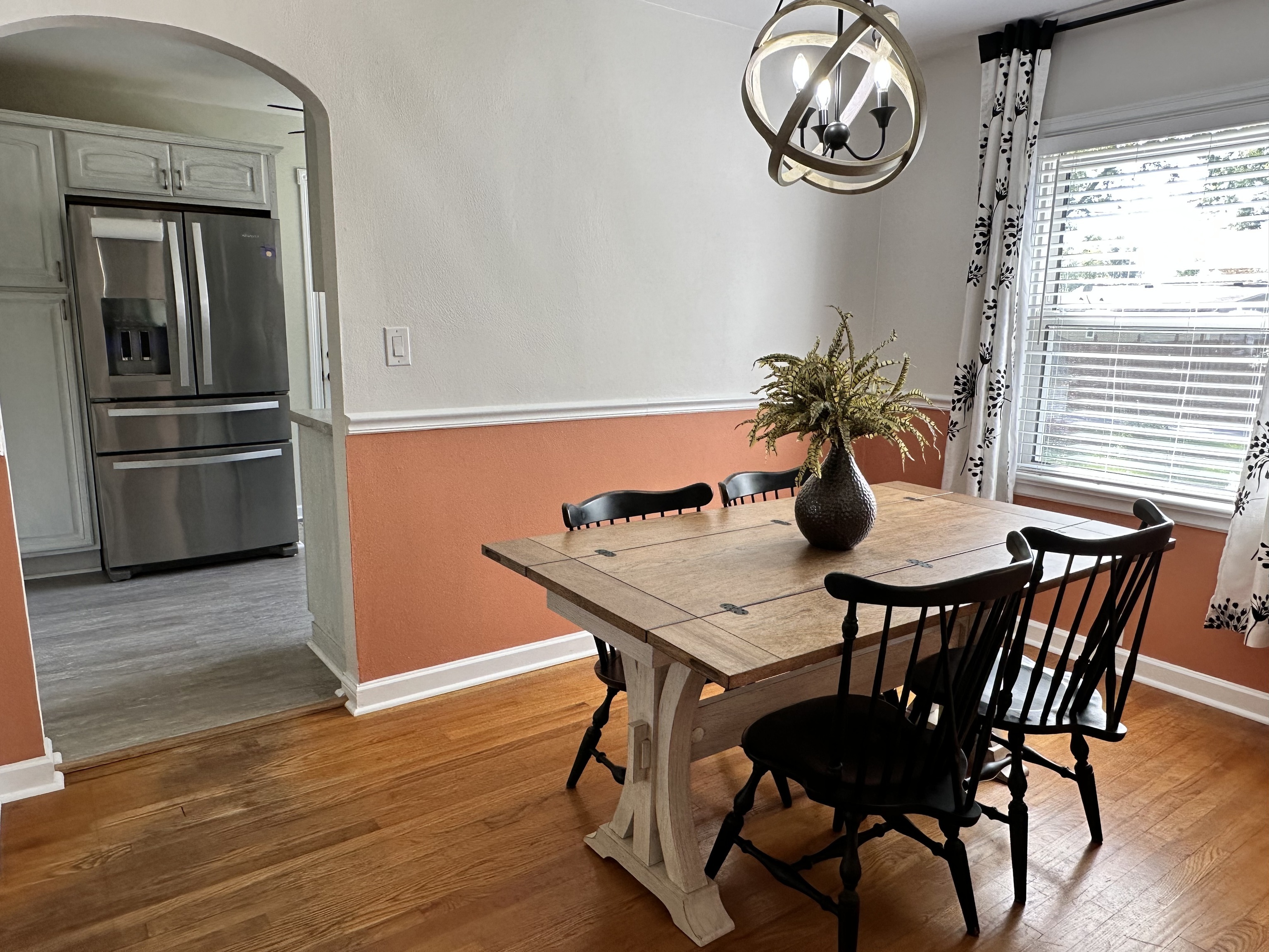 Don’t let the square footage scare you away from this adorable home! It’s got all you need! Family room & both nice sized bedrooms boast original hardwood floors, while the kitchen has easy to maintain vinyl plank flooring. The kitchen has lots of cupboards and counterspace and includes the stainless steel appliances. The large front picture window in the family room has a custom blind offering privacy while still letting in some light. Newer lighting fixtures & ceiling fans, and an awesome hidden ceiling fan in the hall light just outside the updated bathroom. Relax on your covered back patio overlooking the large backyard. Added insulation, freshly painted, 4 year old roof. Nestled in a quiet location in Plainfield, with no HOA.