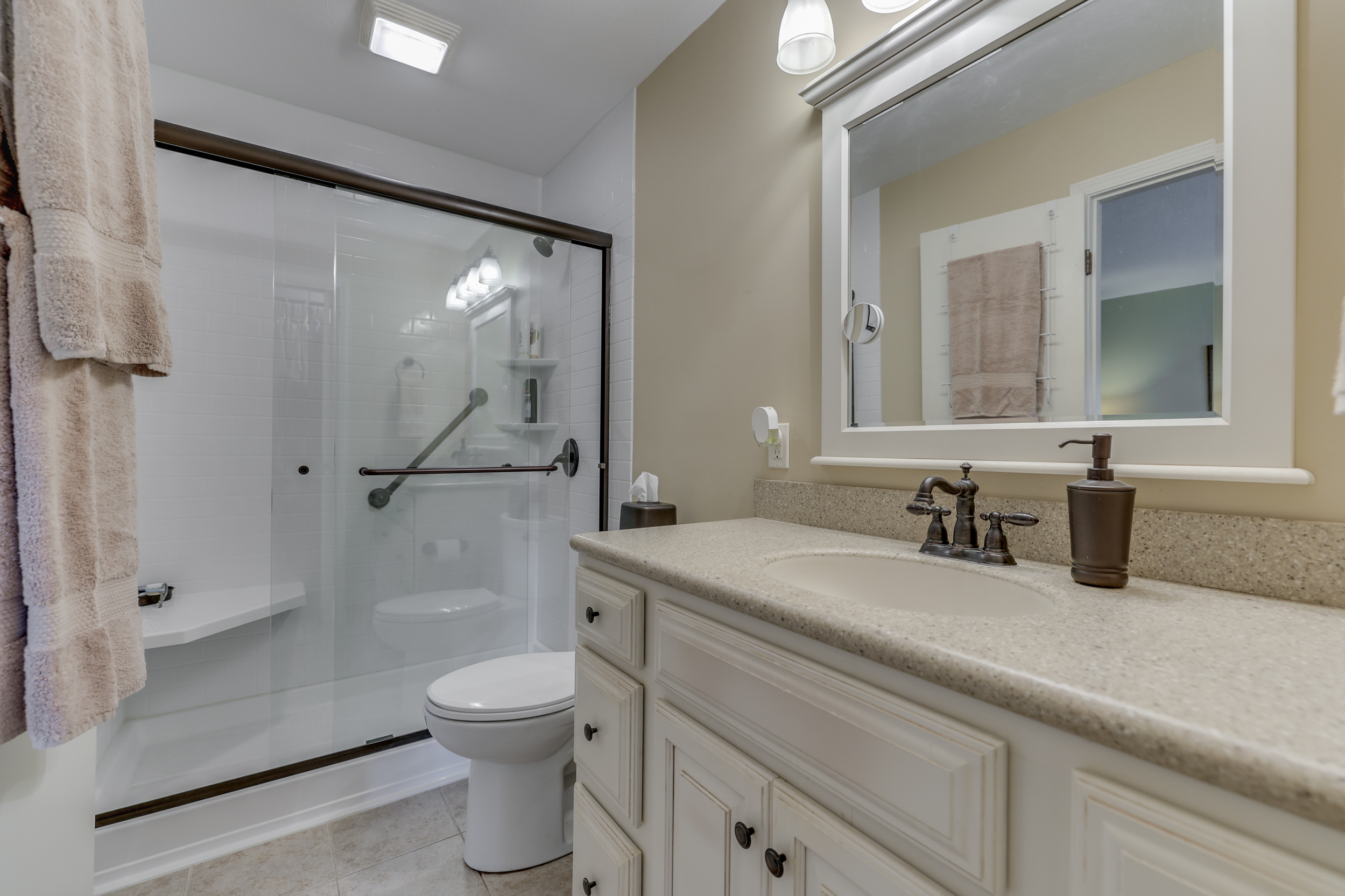 *Carefree* 3646sqft – 3 BED + 2.5 BATH – BRICK RANCH w/BASEMENT* Updated KITCHEN: SS Appls+Brkfst Bar+Custom Cabinet+MosaicTile Backsplash+Quartz Counters; LIVING RM & DINING RM; FAMILY RM: Fireplace; Updated LNDRY: Custom Cabs; MASTER: Walk-In Subway Tile Shower & W/I Closet; +2 BEDROOMS: Gorgeous Original HW Floors; Daylight Window BASEMENT: REC RM + BONUS RM + HOME OFFICE + HEARTH RM w/WoodBurning Stove; & Utility/Storage Rm; Awesome BACKYARD: Large Tiered Wood Deck & Pergola; ShadowBox Privacy Fence & Arborvitae Trees; “She” Shed (MiniBarn); 2-Car Finished GARAGE: NEW Epoxy Floor; New R/O Sys; SumpPump + BatteryBackup; New Furnace/AC ’18; Upgrade Roof ’16; HOA Includes POOL/Clubhouse+Tennis! MUST SEE~Pride in Ownership~Stunning.