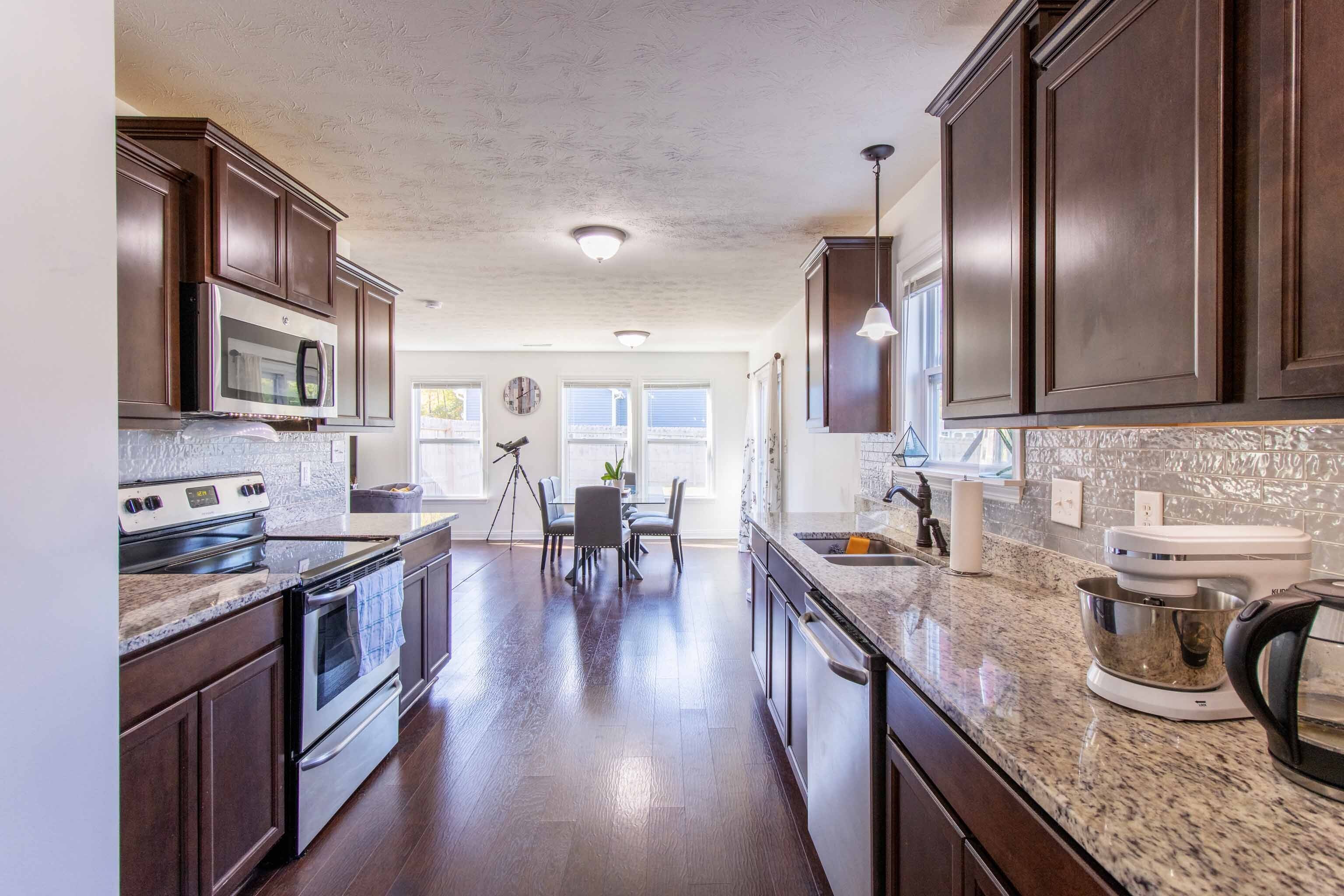 This two-story 3 bed/2.5 bath home offers a spacious and comfortable living experience. Main level features an open floor plan design flooded with natural light, creating a bright and welcoming atmosphere perfect for gatherings and relaxation. The kitchen has elegant granite countertops, stainless steel appliances, stylish backsplash with clean line cabinetry. Upstairs, in addition to the ample bedrooms, you’ll find a versatile loft area offering even more entertainment space. The absence of carpet throughout the home adds a modern touch, making it easy to maintain. The backyard is a standout feature, as it’s not only fenced for privacy but also offers a fantastic outdoor space for activities and tranquility.