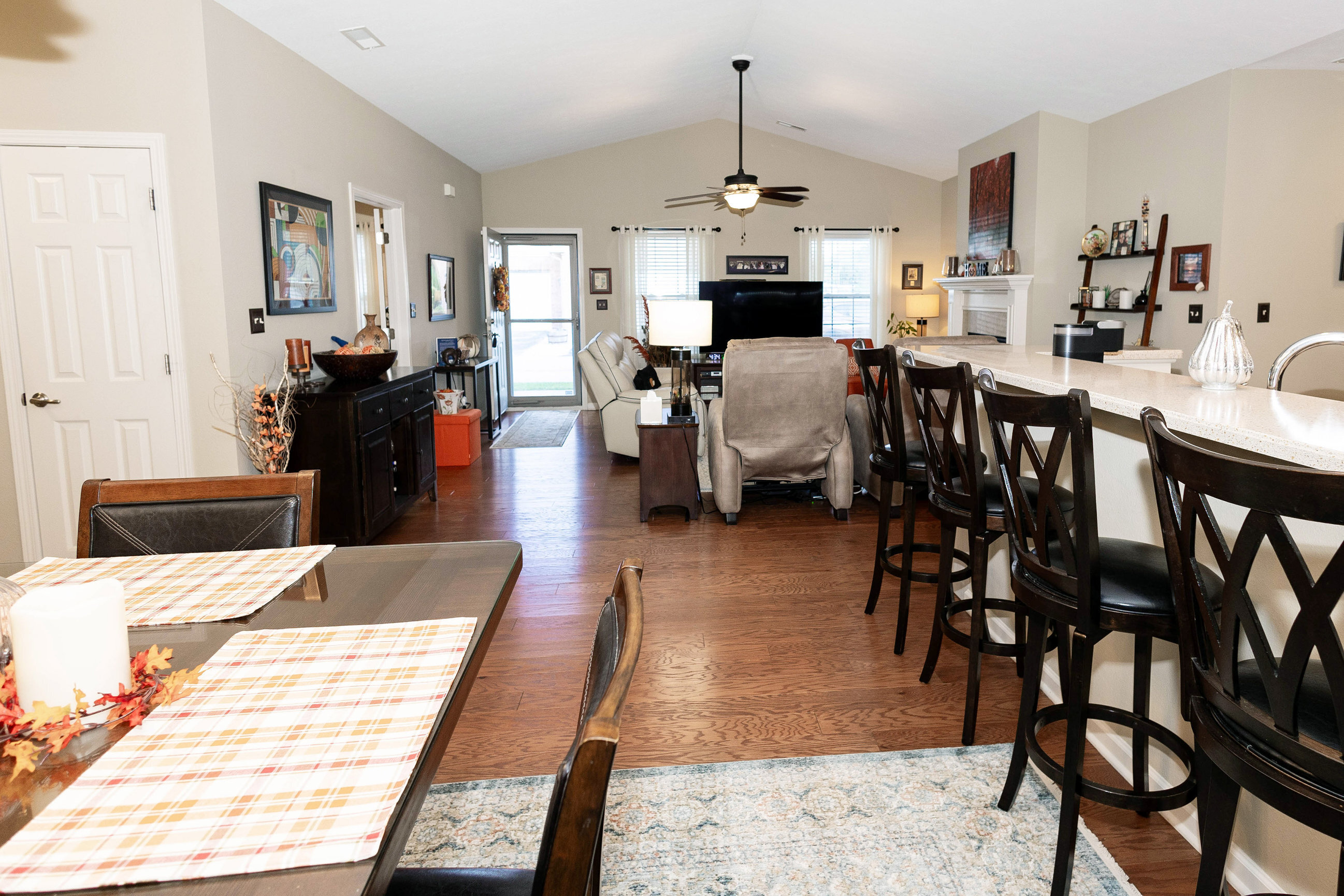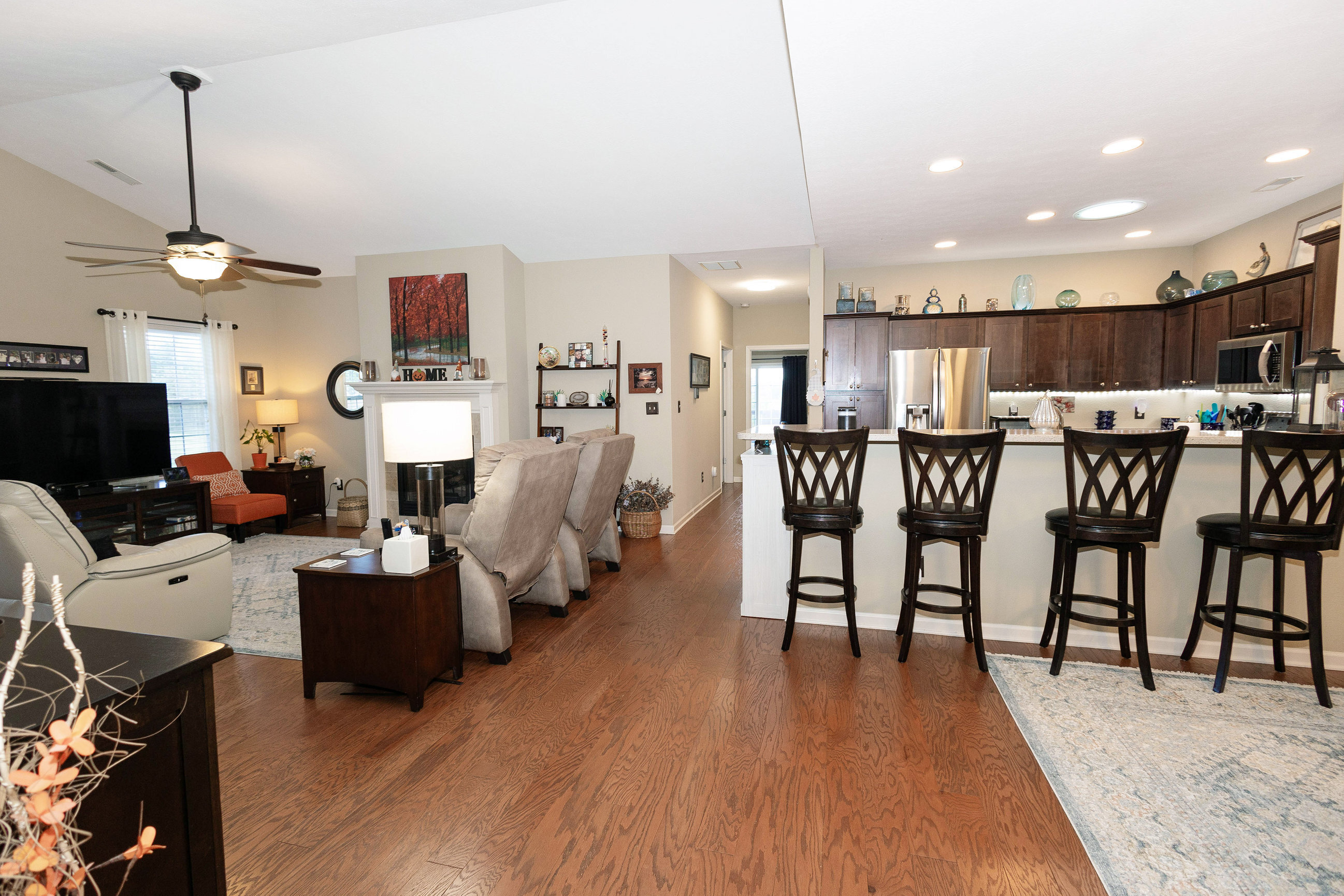 Enjoy living in one of Plainfield’s more desirable communities with easy access to Airport & Downtown. Saratoga Springs is a no maintenance condo community. 3BR, 2BA ranch style, former model complete with Corian countertops in Kitchen & Baths, hardwoods in Entry, Kitchen & Dining, ceramic tile in Baths, gas fireplace, stainless Kitchen appliances & Finished 2-Car Garage. Furnace new in 2019 – Carrier Infinity High Efficiency System. New water heater 2019, custom blinds throughout, all kitchen cabinets have pull out shelves, pull out trash can storage & huge pantry. Wall connection for TV above fireplace.