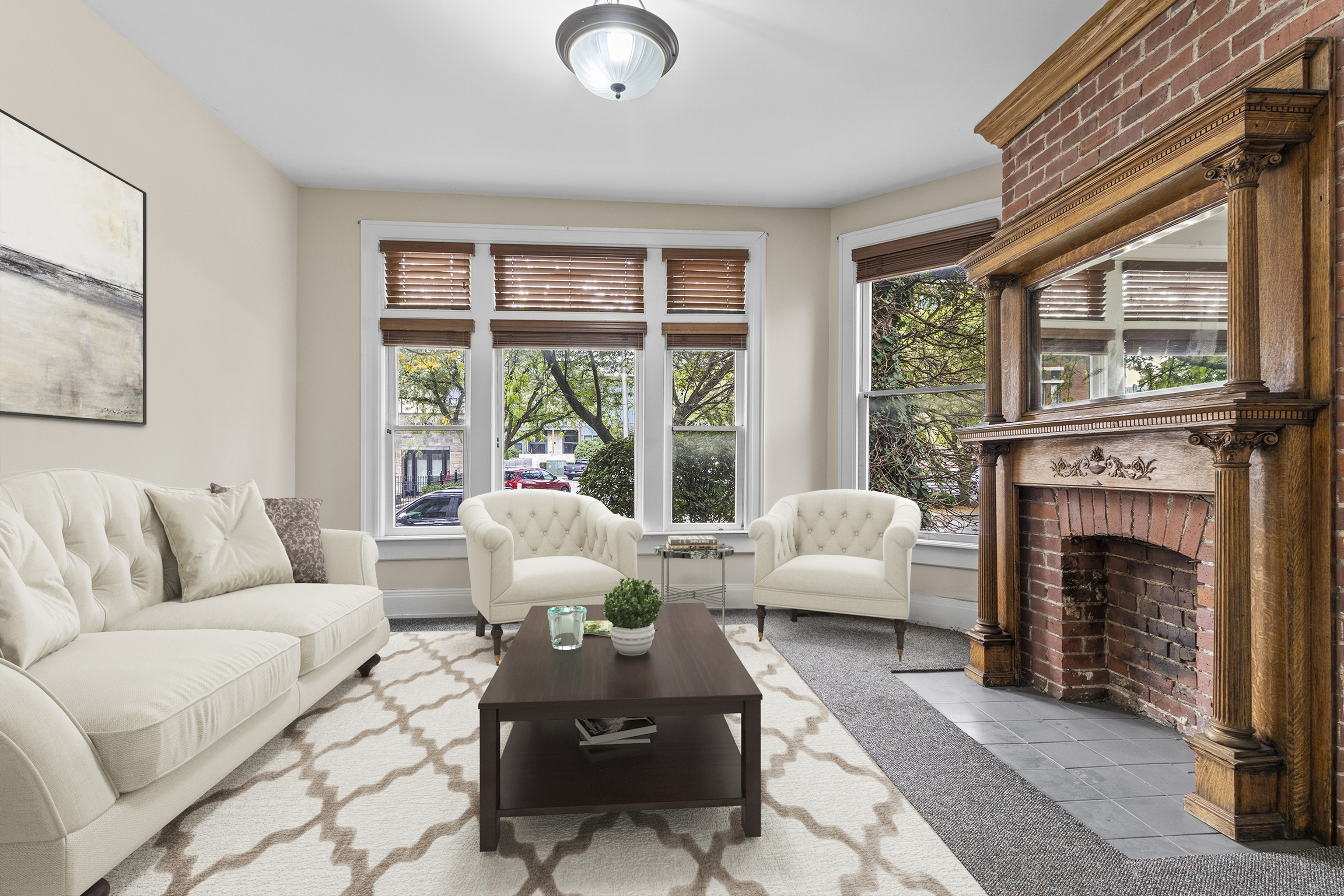 HUGE PRICE DECREASE, MOTIVATED SELLER – BRING AN OFFER! **$100k PRICE REDUCTION** – This beautiful home is full of charm and located in desirable Lockerbie Square! The inviting Victorian welcomes you with a brick walkway leading to covered, wrap-around porch. Spacious foyer with dramatic wood staircase, front living room features gorgeous brick fireplace w/ wood surround and open dining room w/ elegant, recessed cabinet w/ leaded glass. 2nd level offers huge master suite w/ brick fireplace, hardwood floors and custom built-ins, 2 additional bedrooms and beautifully updated full bath. 3rd level has been completely renovated with full kitchen/bath and has it’s own separate entry, perfect for an income producing unit. Stunning views of the downtown skyline, walk to your favorite Mass Ave restaurant or shop. Historic character throughout – a must see!