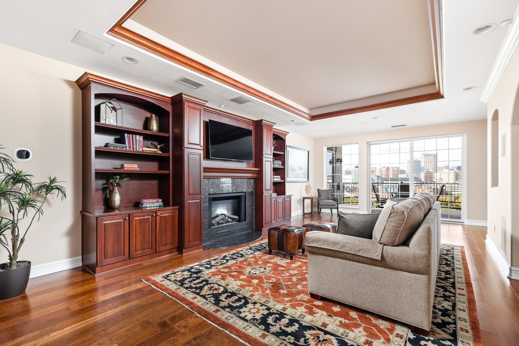 Introducing a luxe urban oasis in the heart of historic Fletcher Place. Prepare to be captivated by the breathtaking panoramic views of the city skyline. Whether it’s sunrise or sunset, this residence with its expansive balcony offers a front-row seat to the beauty of the cityscape. The kitchen is a chef’s delight, featuring new, top-of-the-line appliances. Enjoy the game/sports room complete with a stylish bar area, and for aficionados, a designated cigar area thanks to the room’s special venting. With four parking spots, you’ll enjoy the convenience and peace of mind that your vehicles are always accommodated. Walk/bike to sports, dining, and more from the Cultural Trail in front of the building. Great closet space and 20×8 storage room.