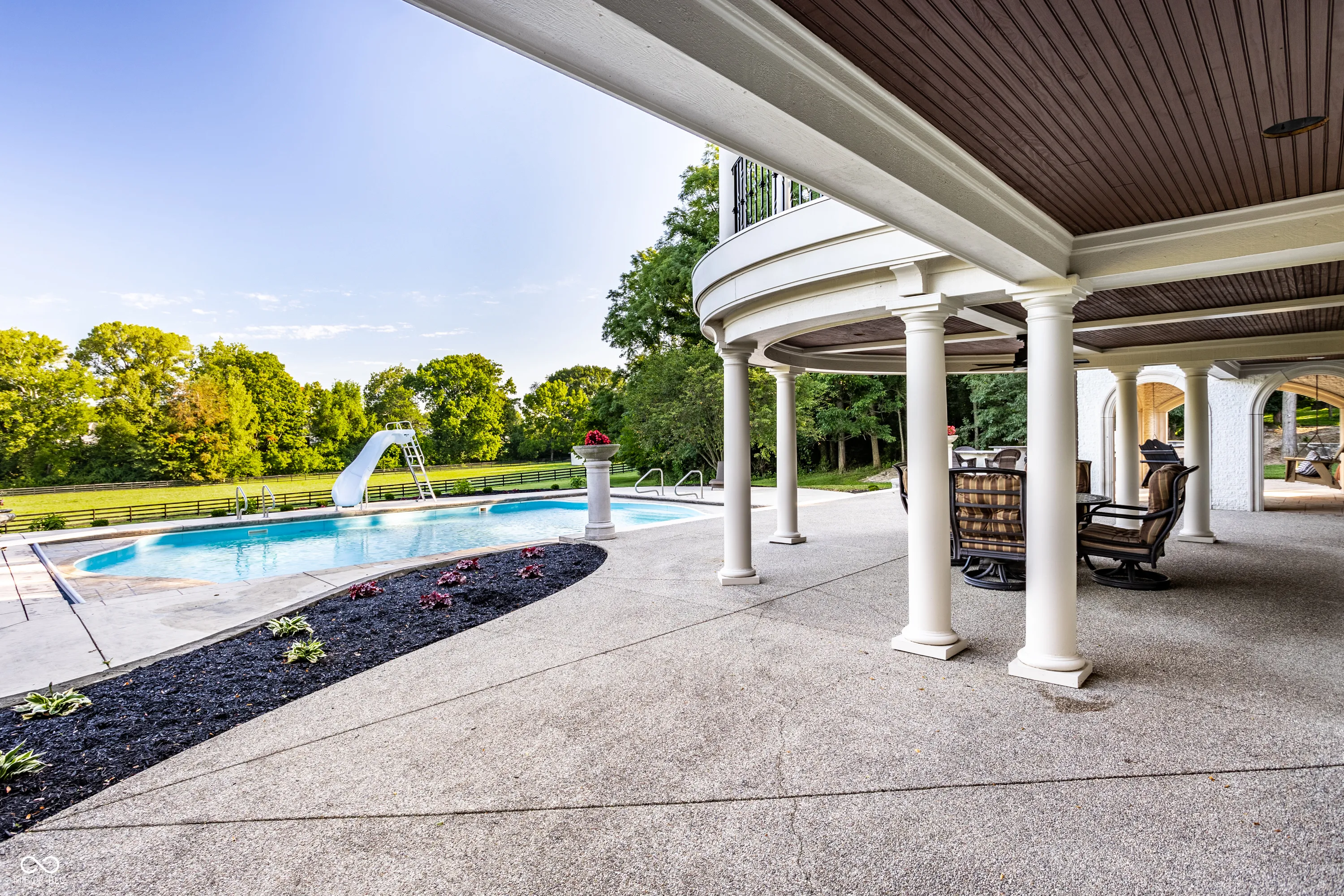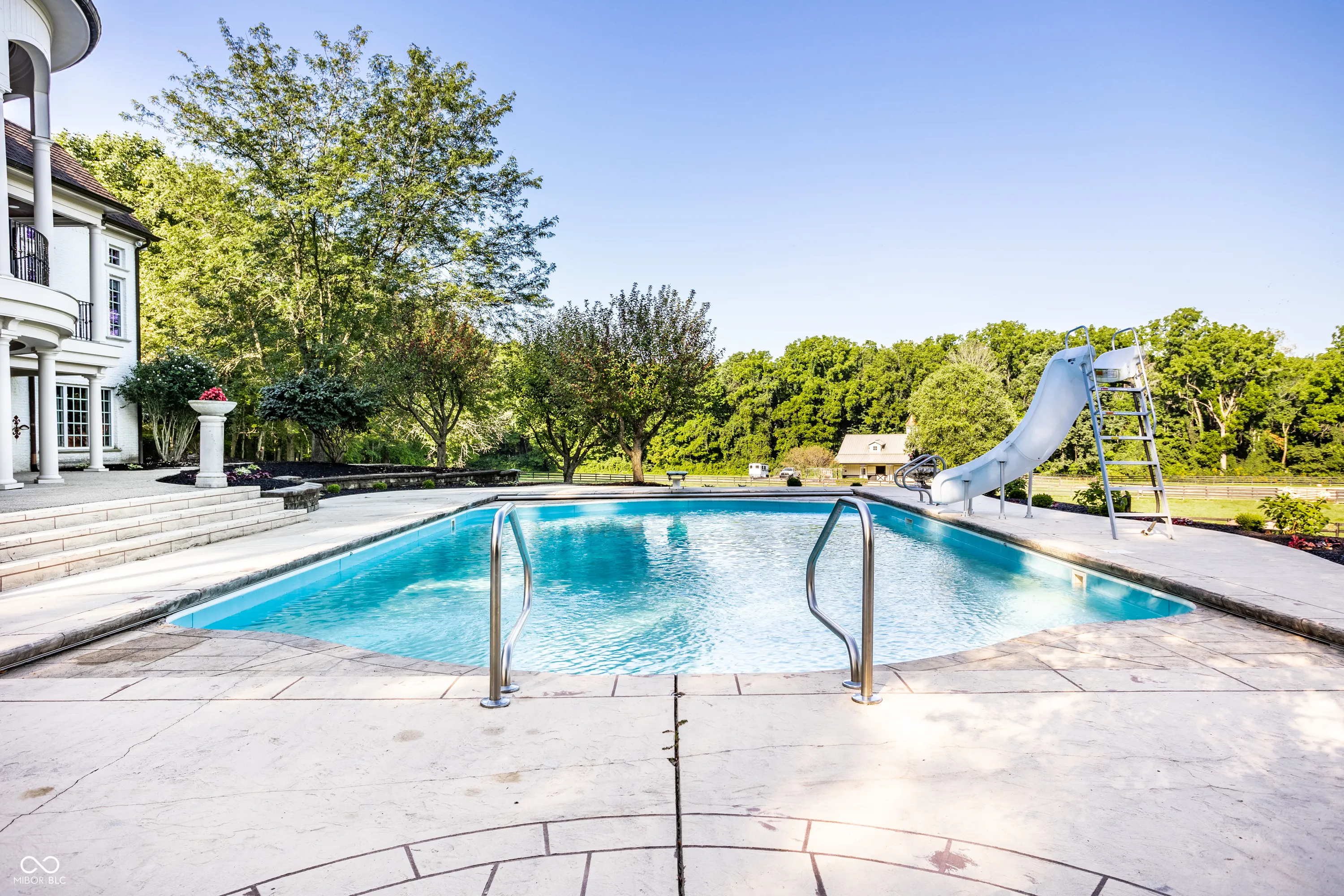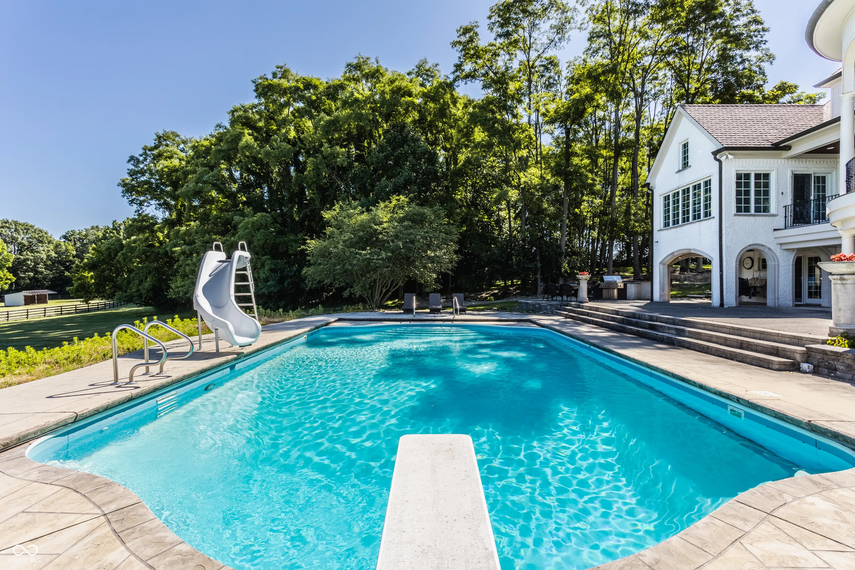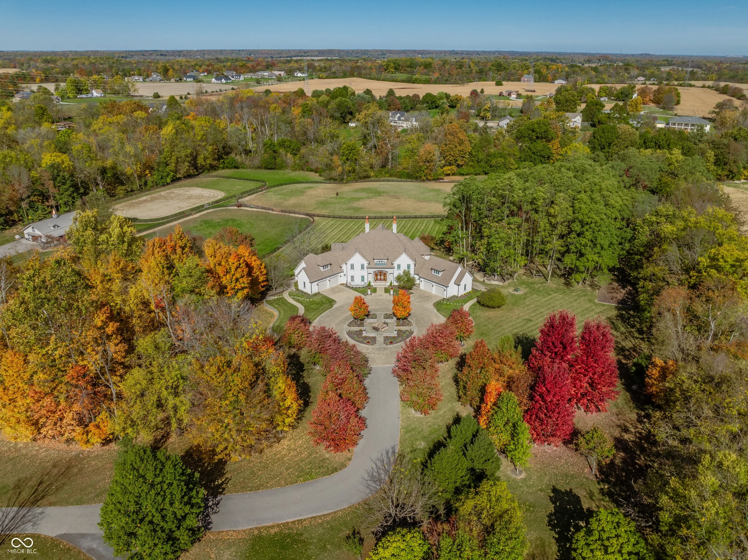 Experience serenity at this 15-acre equestrian estate 20 miles south of Downtown Indy in the quaint neighborhood of Banta Woods Estates in Bargersville. Built by Mike Duke, this home boasts impeccable craftsmanship & a thoughtful design. Exquisite dual staircases lead to the living and dining areas with a gourmet kitchen & chef appliances. The primary en suite bedroom offers his and her closets, a sitting area, and balcony. The separate-entrance office has built-ins with secret storage. The lower level has a full kitchen, theater, billiards, craft room and more. The balconies, covered patios, gunite pool, Viking gas grill and bar and dual waterfall stream make for optimal outdoor entertaining. The Morton barn has 4 stalls, a tack room, feed room, and wash stall. Enjoy 2 pastures, 1 riding arena with sand footing, and 1 paddock. The neighborhood has a shared pond for fishing/water activities. This property combines the ultimate in luxury living with your equestrian passion. Included in the acreage is a 3 acre, buildable lot for use or to sell off.