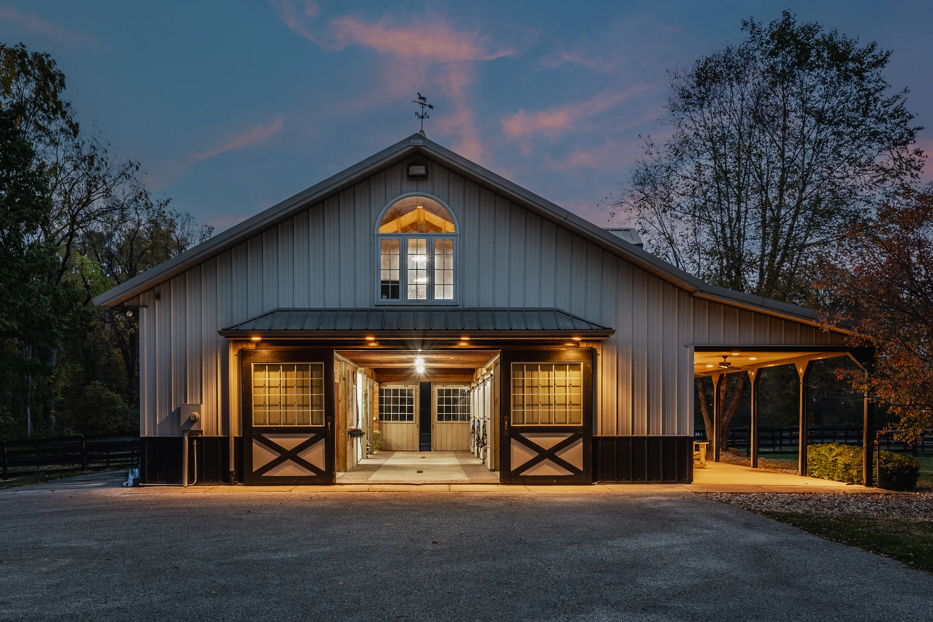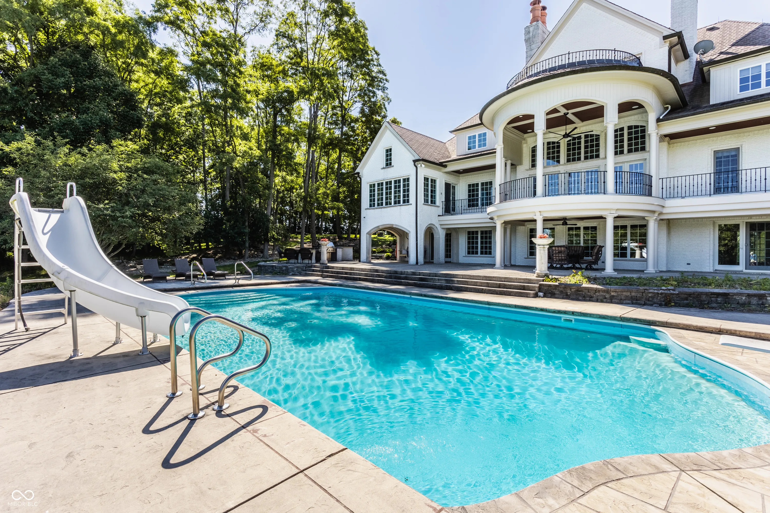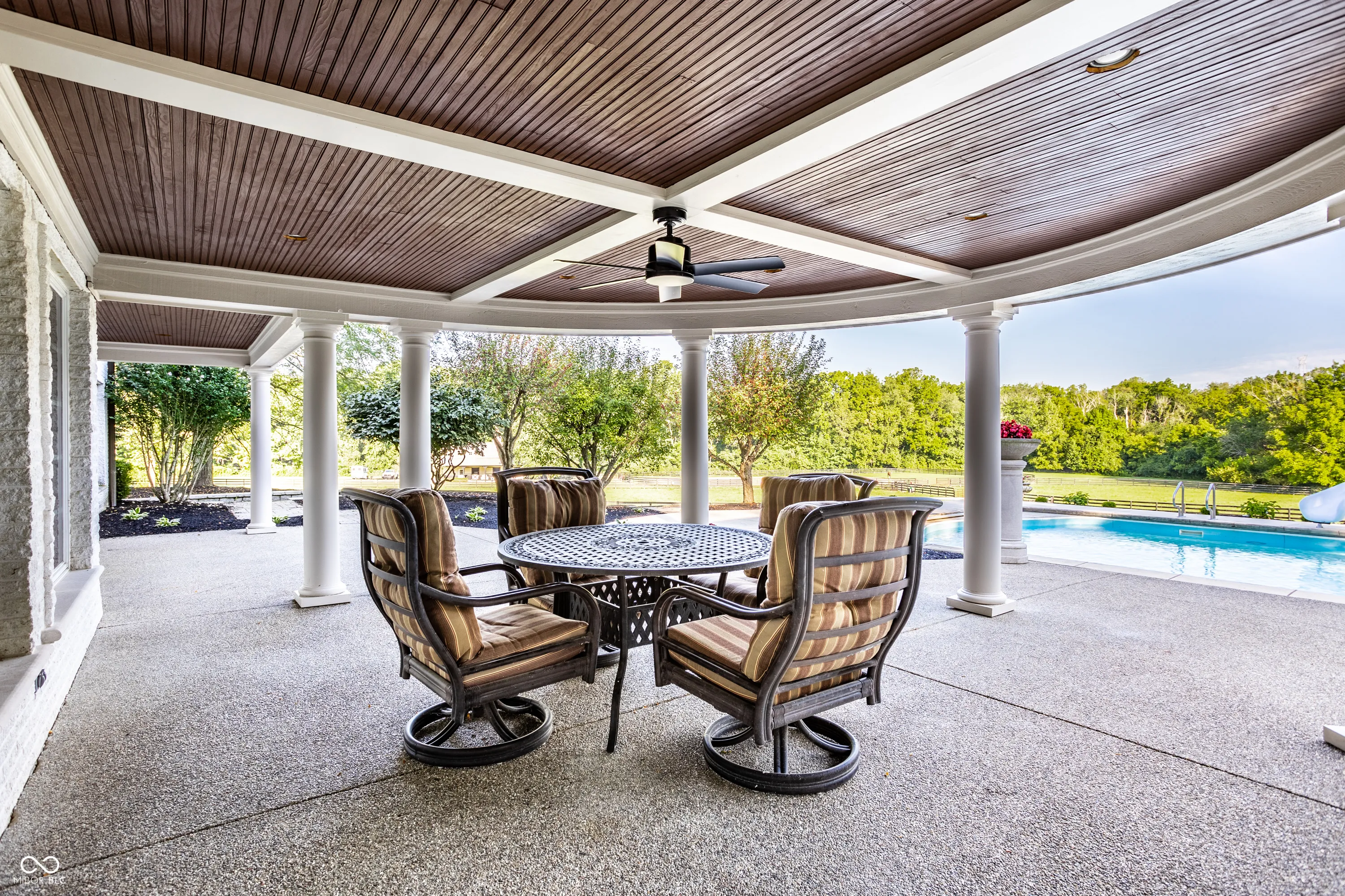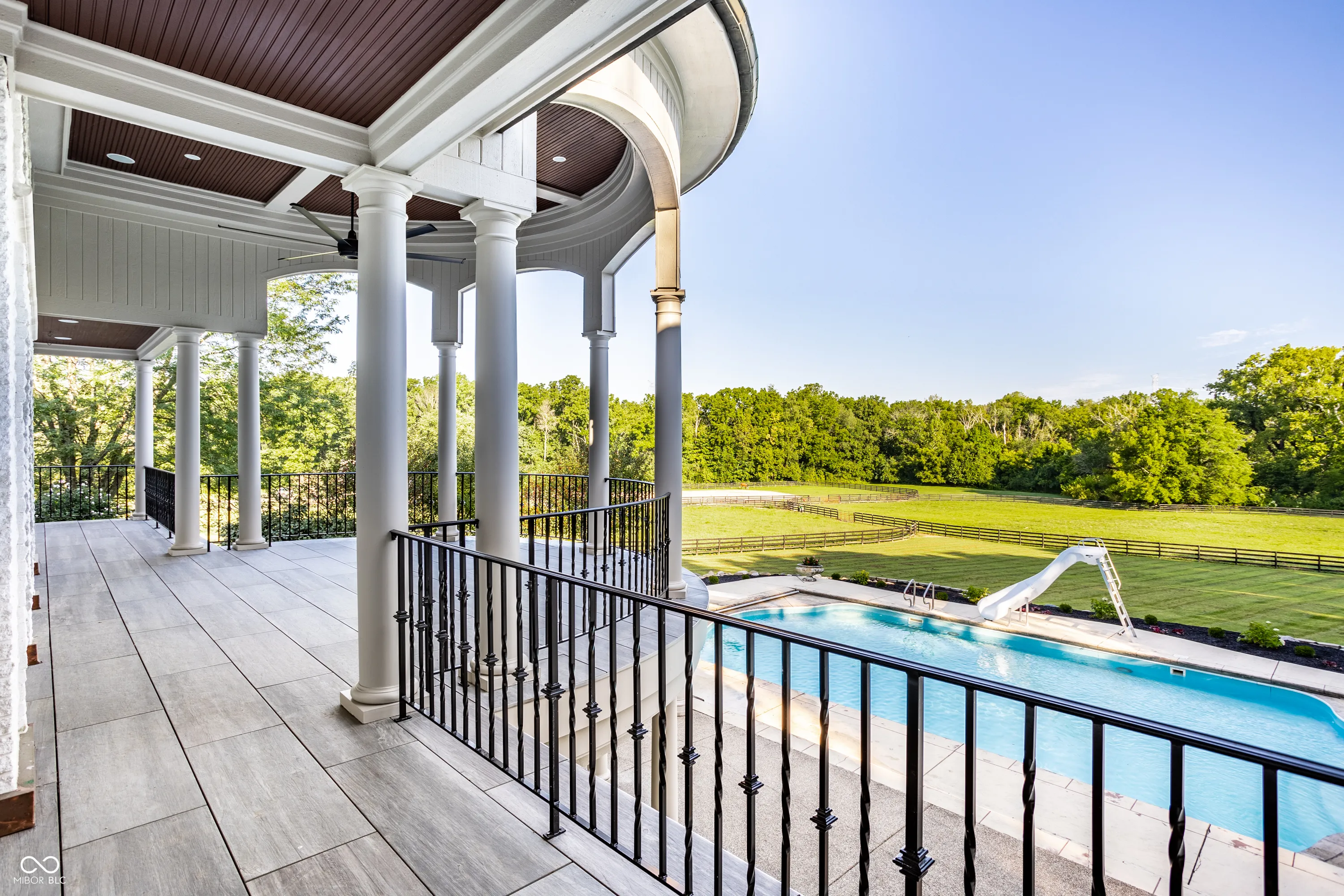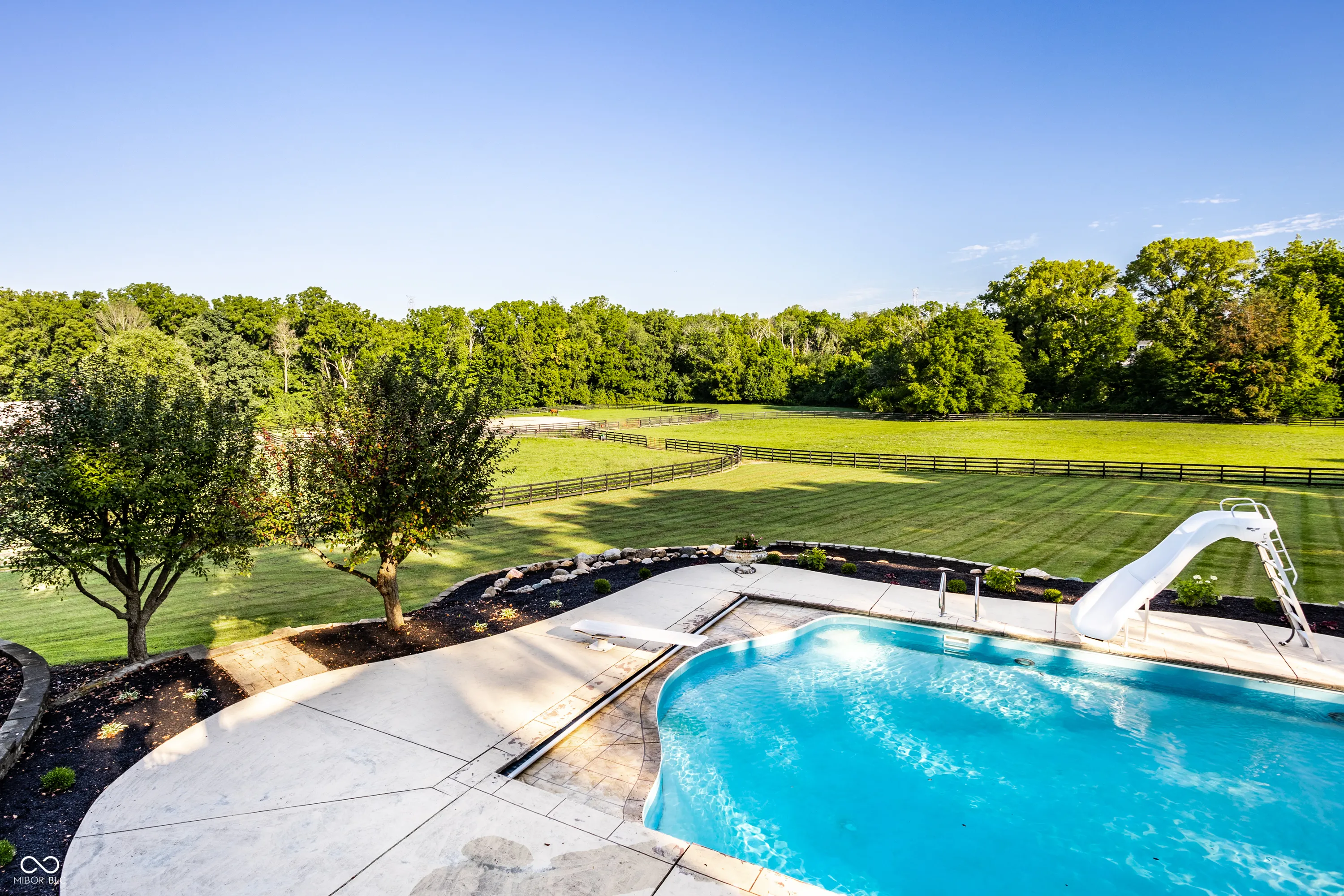 Experience serenity at this 15-acre equestrian estate 20 miles south of Downtown Indy in the quaint neighborhood of Banta Woods Estates in Bargersville. Built by Mike Duke, this home boasts impeccable craftsmanship & a thoughtful design. Exquisite dual staircases lead to the living and dining areas with a gourmet kitchen & chef appliances. The primary en suite bedroom offers his and her closets, a sitting area, and balcony. The separate-entrance office has built-ins with secret storage. The lower level has a full kitchen, theater, billiards, craft room and more. The balconies, covered patios, gunite pool, Viking gas grill and bar and dual waterfall stream make for optimal outdoor entertaining. The Morton barn has 4 stalls, a tack room, feed room, and wash stall. Enjoy 2 pastures, 1 riding arena with sand footing, and 1 paddock. The neighborhood has a shared pond for fishing/water activities. This property combines the ultimate in luxury living with your equestrian passion. Included in the acreage is a 3 acre, buildable lot for use or to sell off.