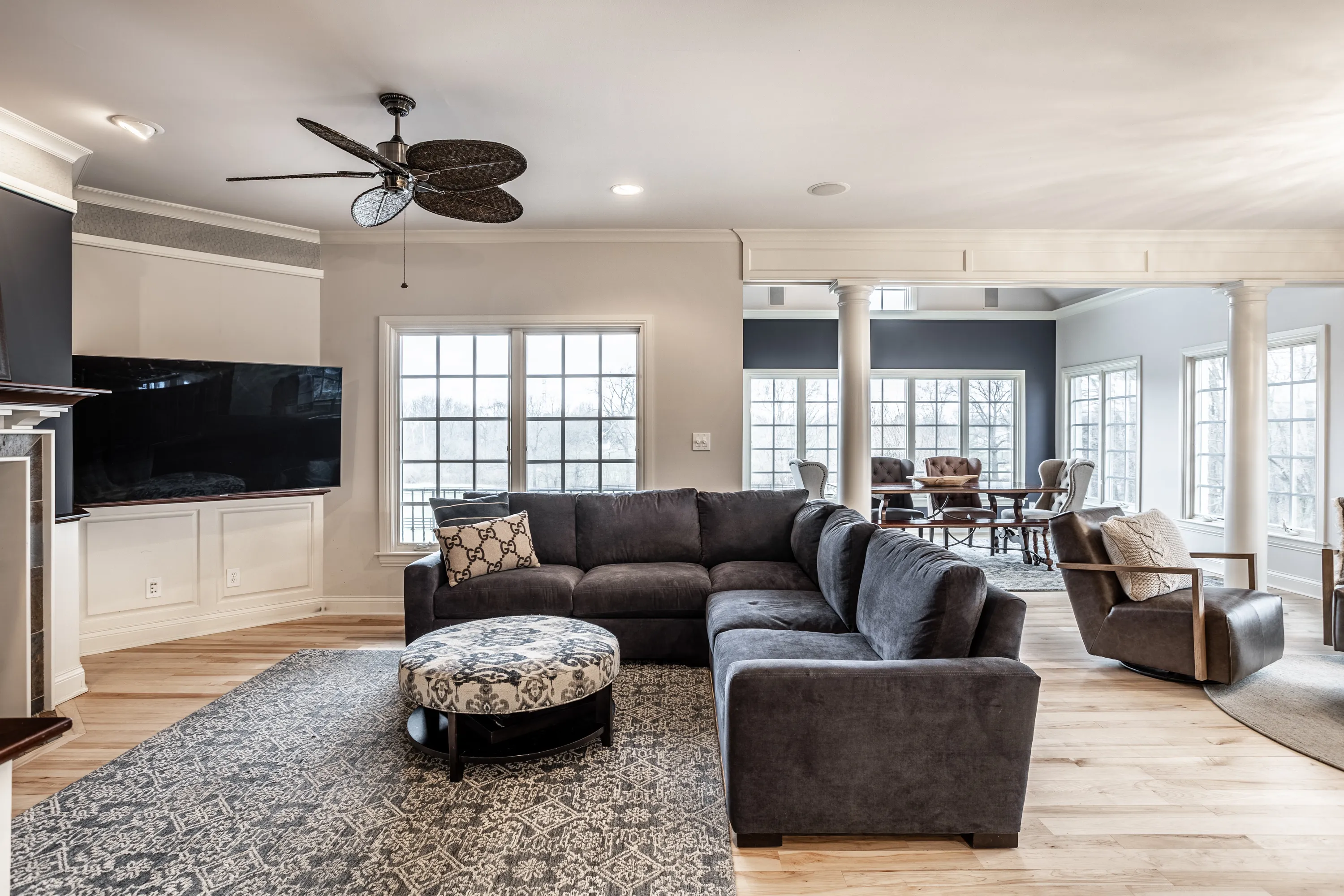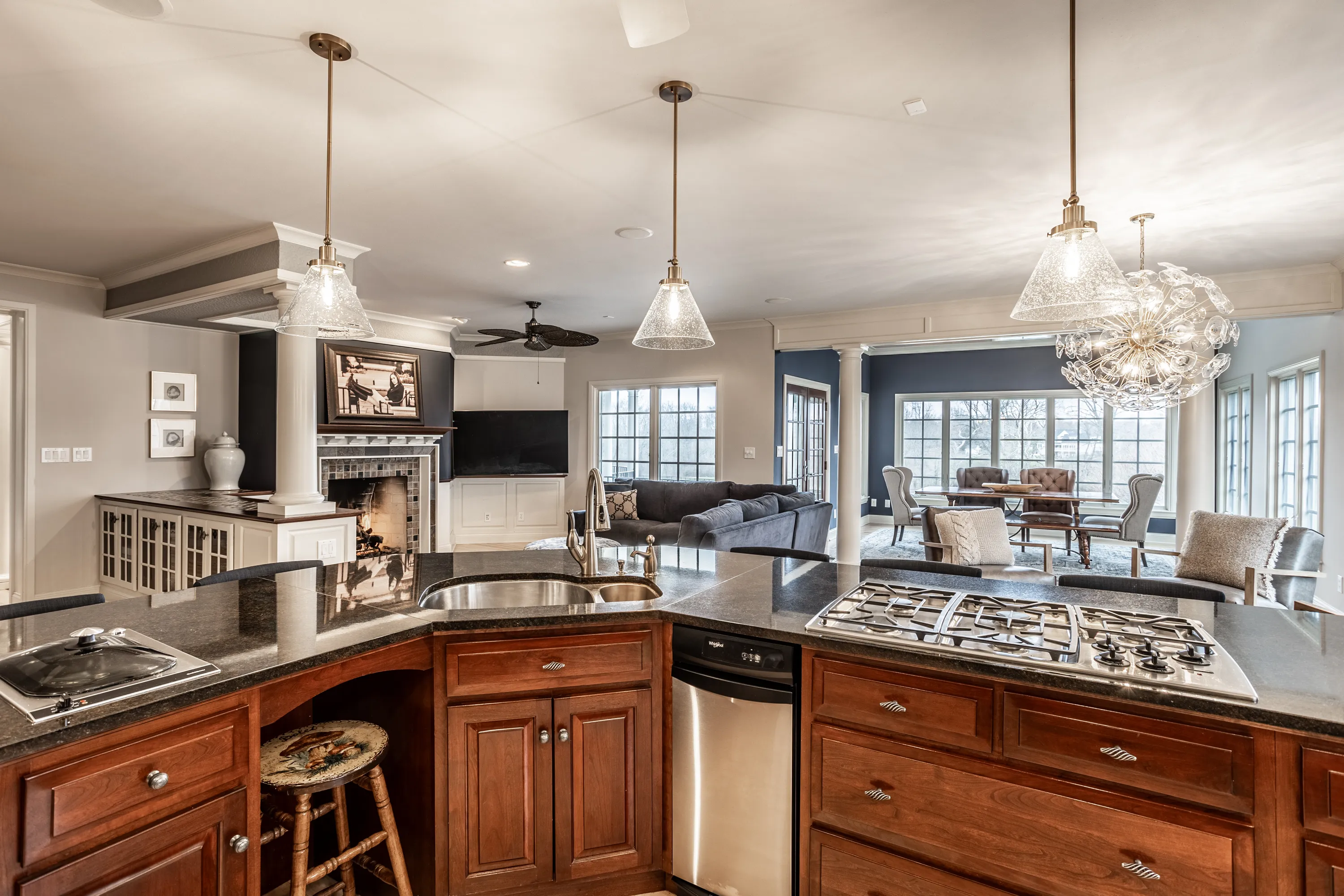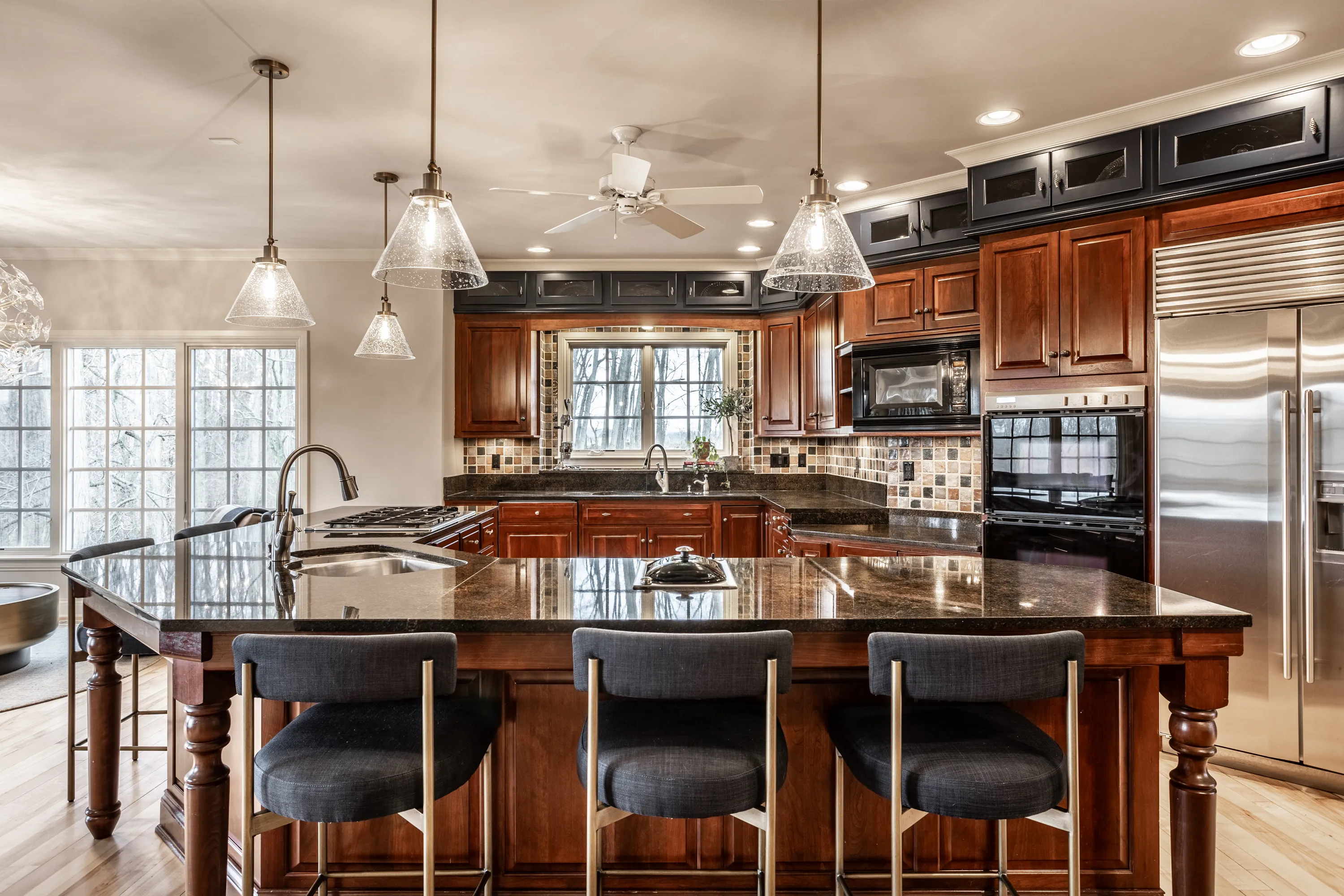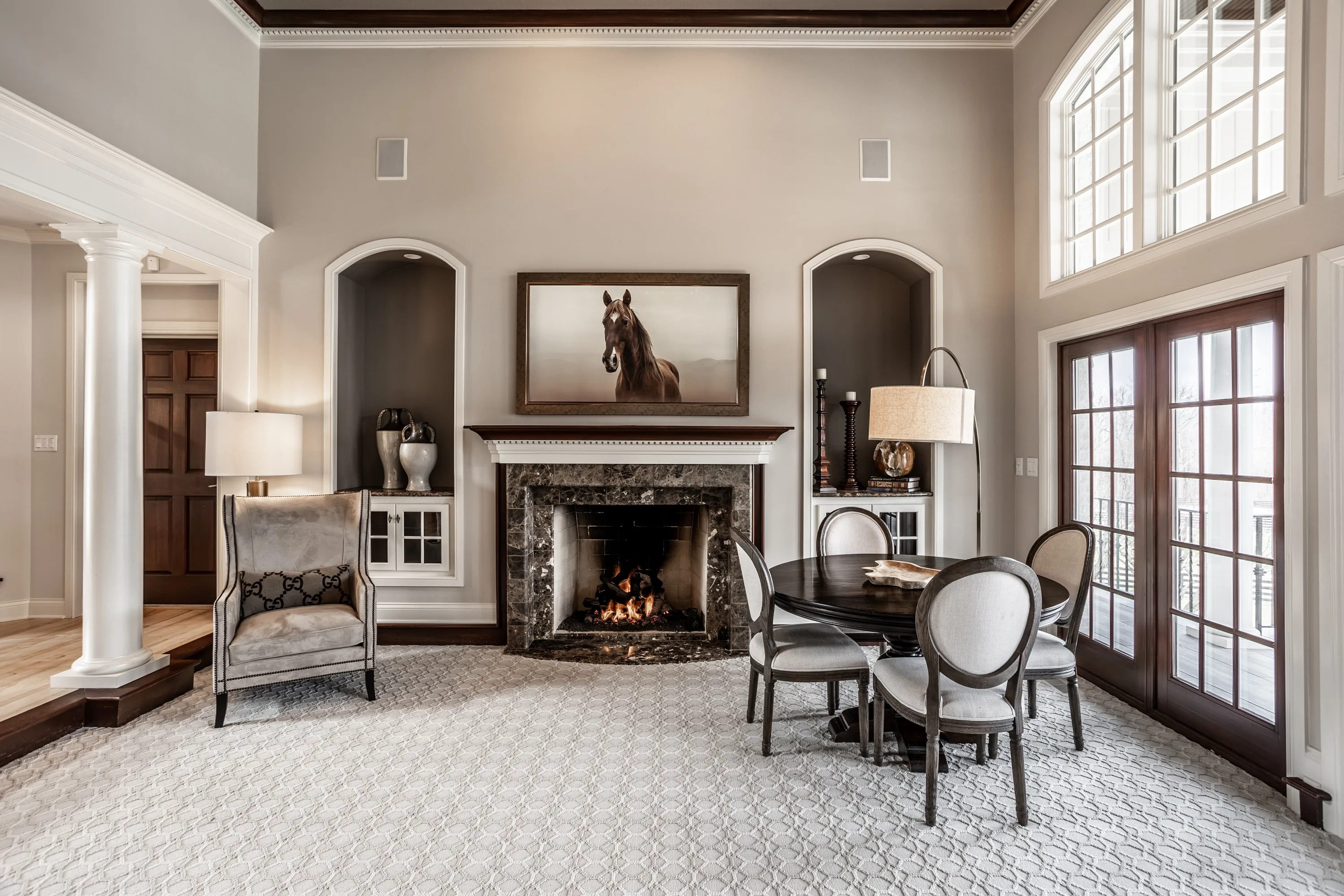 Experience serenity at this 15-acre equestrian estate 20 miles south of Downtown Indy in the quaint neighborhood of Banta Woods Estates in Bargersville. Built by Mike Duke, this home boasts impeccable craftsmanship & a thoughtful design. Exquisite dual staircases lead to the living and dining areas with a gourmet kitchen & chef appliances. The primary en suite bedroom offers his and her closets, a sitting area, and balcony. The separate-entrance office has built-ins with secret storage. The lower level has a full kitchen, theater, billiards, craft room and more. The balconies, covered patios, gunite pool, Viking gas grill and bar and dual waterfall stream make for optimal outdoor entertaining. The Morton barn has 4 stalls, a tack room, feed room, and wash stall. Enjoy 2 pastures, 1 riding arena with sand footing, and 1 paddock. The neighborhood has a shared pond for fishing/water activities. This property combines the ultimate in luxury living with your equestrian passion. Included in the acreage is a 3 acre, buildable lot for use or to sell off.