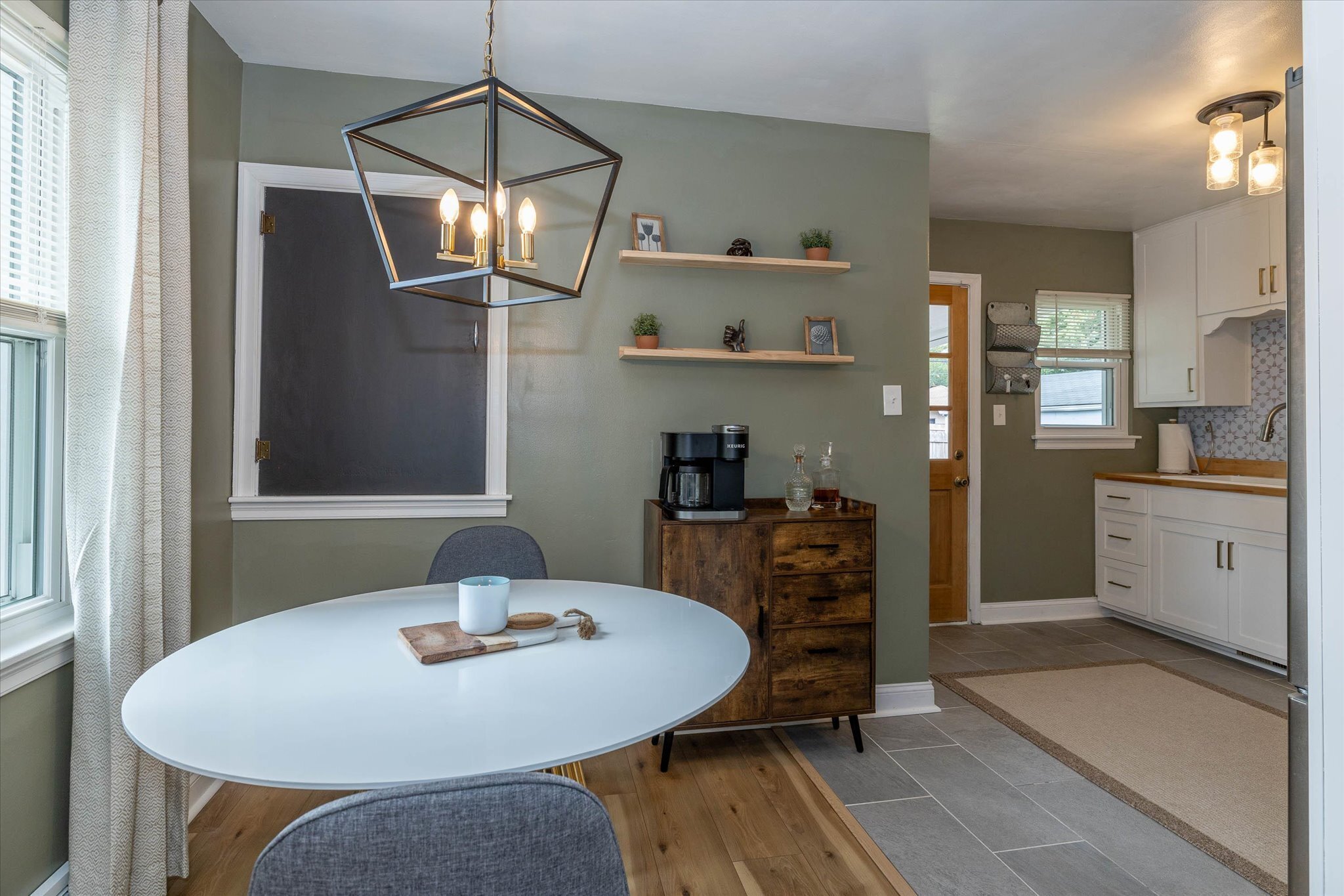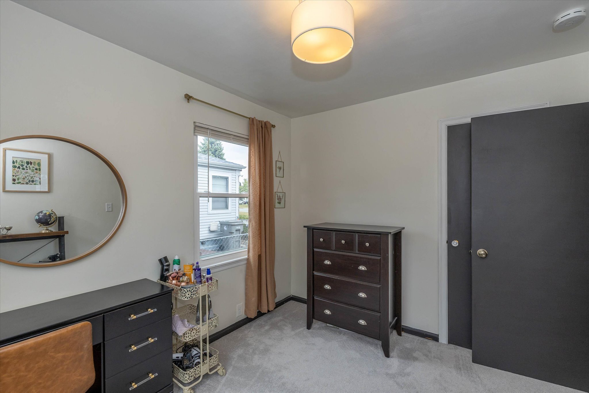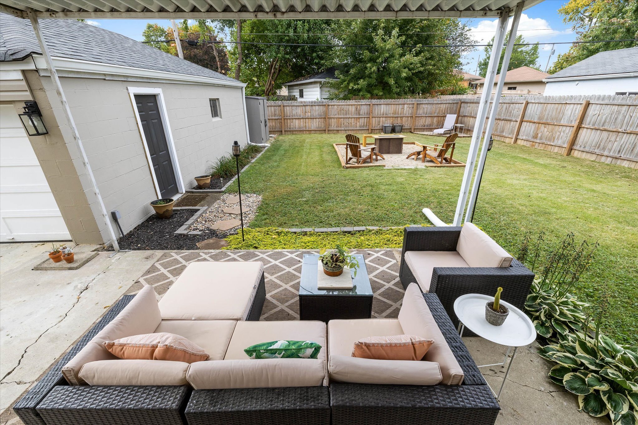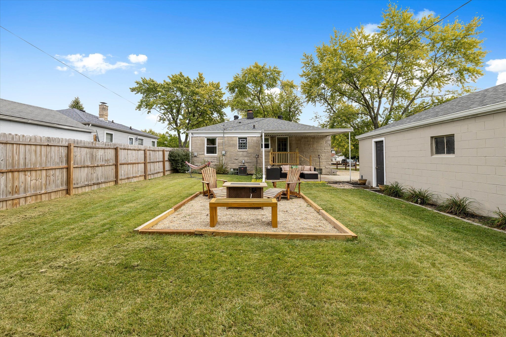 Rare opportunity just north of Irvington! This charming 2 bed 1 bath home has been renovated and exudes warmth with wood and thoughtfully curated design elements. The kitchen features-newer stainless steel gas stove oven, a low profile microwave, a double door refrigerator/freezer, butcher block countertops, white cabinetry, a built-in wine bottles storage, and retro geometric backsplash to complete a classy cottage kitchen. All new flooring and carpet throughout. Newer roof and gutters installed in 2017. The partially fenced backyard invites you to relax and unwind on the covered patio or around a cozy and warm fire pit. Full basement with laundry hookups, new patio wood railing, and a 2-car garage. Schedule a showing today!